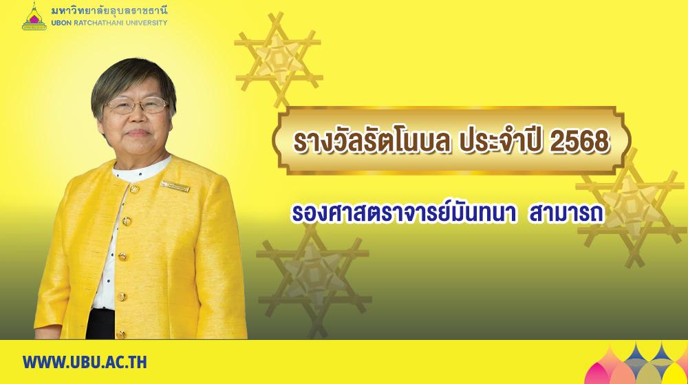มหาวิทยาลัยอุบลราชธานี มีความยินดีประกาศเกียรติคุณเพื่อเชิดชูเกียรติ รองศาสตราจารย์มันทนา สามารถ ที่ได้รับรางวัลรัตโนบล ประเภทบุคคลทั่วไป คณะบริหารศาสตร์ โดย สภามหาวิทยาลัยอุบลราชธานี ได้พิจารณาอนุมัติรางวัลรัตโนบล ประเภทบุคคลทั่วไป ประจำปี ๒๕๖๘ แก่บุคคลที่มีผลงานทางวิชาชีพที่มีคุณภาพอันเป็นที่ยอมรับของชุมชน สังคม ประเทศชาติอย่างต่อเนื่องสม่ำเสมอ มีคุณงามความดีที่ได้รับการยกย่องในระดับชาติหรือนานาชาติ อุทิศต้นเป็นประโยชน์ต่อสังคมหรือมหาวิทยาลัยอย่างต่อเนื่องสม่ำเสมอและมีความประพฤติปฏิบัติเป็นแบบอย่างที่ดีแก่บุคคลทั่วไป โดยจะเข้ารับพระราชทานรางวัลรัตโนบล ประเภทบุคคลทั่วไป ประจำปี ๒๕๖๘ ในวันพุธที่ ๒๔ ธันวาคม พ.ศ. ๒๕๖๘ ณ อาคารเฉลิมพระเกียรติ ๗ รอบ พระชนมพรรษา มหาวิทยาลัยอุบลราชธานี