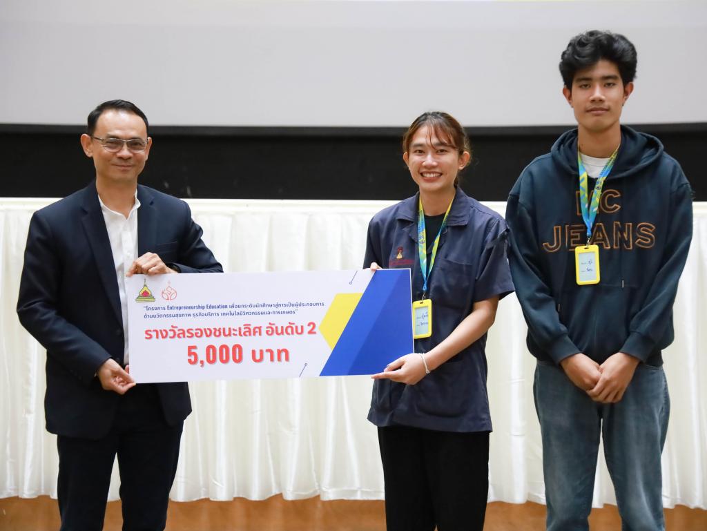 รางวัลรองชนะเลิศอันดับ 2:ทีม Pung Pung stop litter waste (คณะวิศวกรรมศาสตร์) รับเงินรางวัล 5,000 บาท