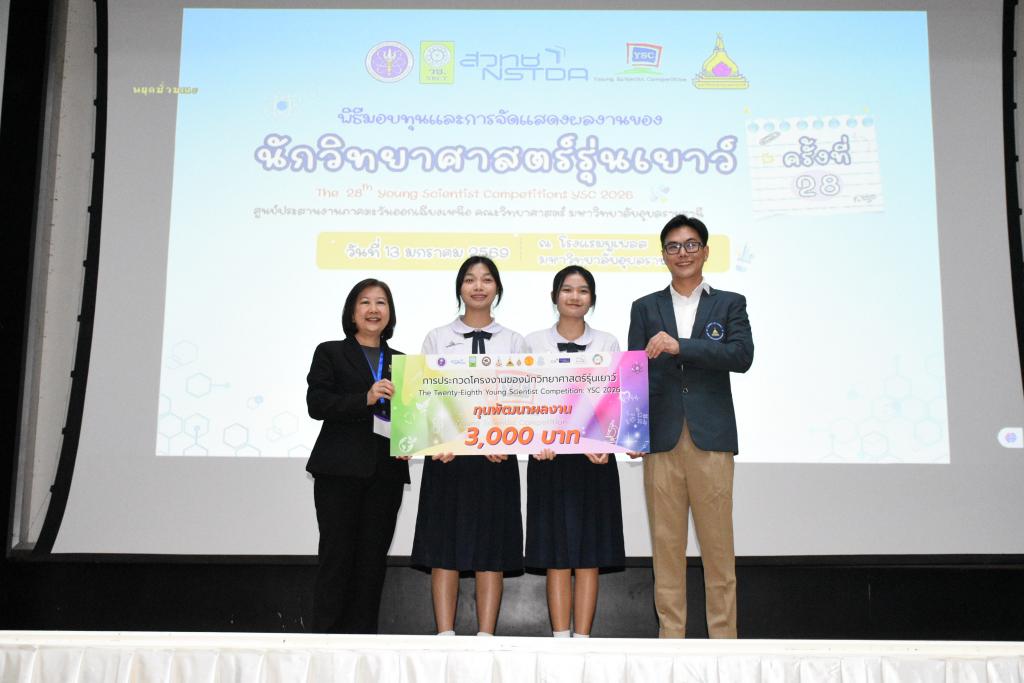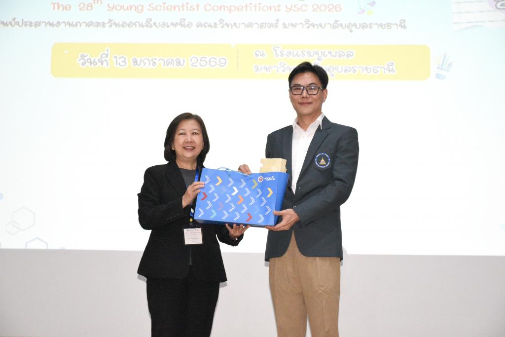 มหาวิทยาลัยอุบลราชธานี โดย คณะวิทยาศาสตร์ ในนามศูนย์ประสานงานระดับภูมิภาค (ภาคตะวันออกเฉียงเหนือ) จัดการประกวดโครงงานวิทยาศาสตร์ของนักวิทยาศาสตร์รุ่นเยาว์ ครั้งที่ 28Young Scientist Competition (YSC2026) ประจำปี 2569 จัดพิธีมอบทุนและการจัดแสดงผลงานของนักวิทยาศาสตร์รุ่นเยาว์ ครั้งที่ 28 (YSC2026) โดยมี ศาสตราจารย์ ดร.ปุริม จารุจำรัส รองคณบดีฝ่ายวิจัย นวัตกรรมและวิเทศสัมพันธ์ คณะวิทยาศาสตร์ เป็นประธานและมอบทุนโครงงานที่ได้รับทุนสนับสนุนรอบคัดเลือกทุนละ 3,000 บาท รวม 47 โครงงาน ผู้ช่วยศาสตราจารย์ ดร.สราวุธ ประเสริฐศรี ผู้ช่วยคณบดีฝ่ายบริการวิชาการ ในฐานะผู้ประสานงานโครงการการประกวดโครงงานวิทยาศาสตร์ของนักวิทยาศาสตร์รุ่นเยาว์ครั้งที่ 28 (YSC2026) ศูนย์ภาคตะวันออกเฉียงเหนือ คณะวิทยาศาสตร์ มหาวิทยาลัยอุบลราชธานี กล่าวรายงาน โอกาสนี้ นางอติพร สุวรรณ ผู้แทนจากสำนักงานพัฒนาวิทยาศาสตร์และเทคโนโลยีแห่งชาติ (สวทช.) กล่าวให้โอวาทและแสดงความยินดีแก่นักเรียนและอาจารย์ที่ปรึกษาโครงงานที่ได้รับทุนสนับสนุนในการจัดทำโครงงาน และนางสาวสุนทรีย์ กริชชัยศักดิ์ นักวิชาการ หัวหน้าโครงการ YSCให้เกียรติร่วมพิธีมอบทุนฯ เมื่อวันอังคารที่ 13 มกราคม 2569 ที่ผ่านมาณ โรงแรมยูเพลส มหาวิทยาลัยอุบลราชธานี