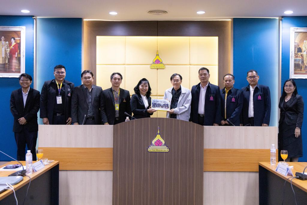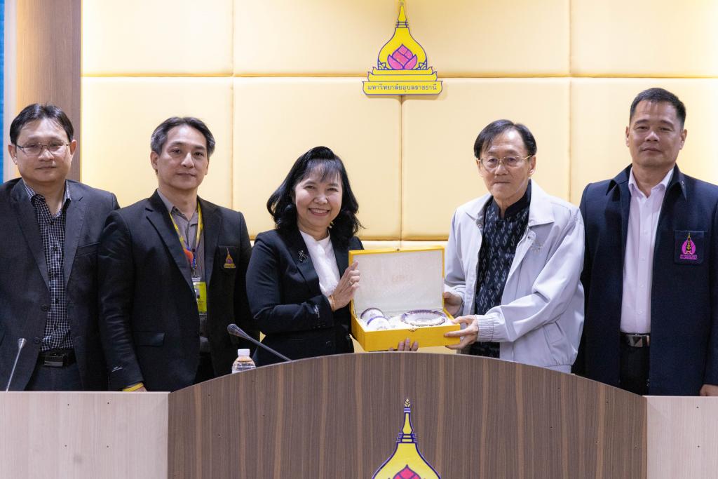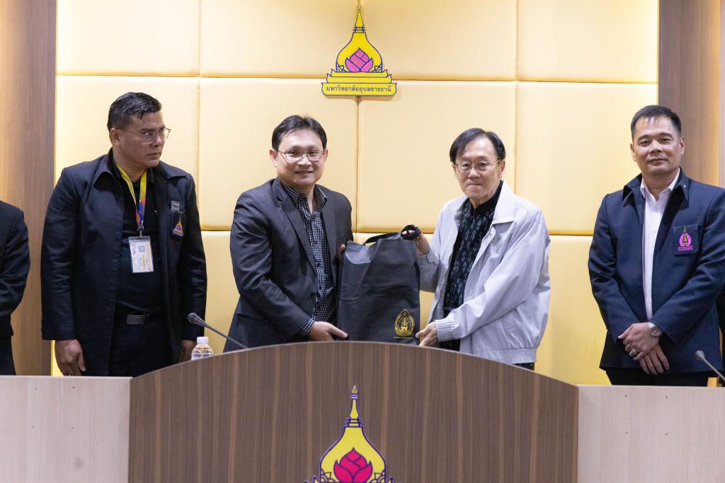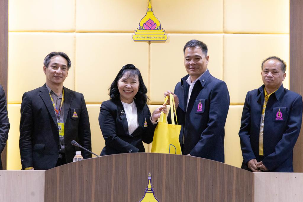 รองศาสตราจารย์ ดร.ชุตินันท์ ประสิทธิ์ภูริปรีชา อธิการบดี พร้อมคณะผู้บริหาร ประธานสภาอาจารย์ และบุคลากรมหาวิทยาลัยอุบลราชธานี ให้การต้อนรับคณะผู้บริหารและผู้แทนจากมหาวิทยาลัยนครพนม นำโดย ศาสตราจารย์ ดร.สุรสิทธิ์ วชิรขจร รองอธิการบดีฝ่ายบริหารทรัพยากรมนุษย์ อาจารย์ ดร.พีระพงษ์ ธีระเผ่าพงษ์ ประธานสภาคณาจารย์และข้าราชการ และผู้แทนกรรมการสภาคณาจารย์และข้าราชการมหาวิทยาลัยนครพนม ในโอกาสศึกษาดูงานและแลกเปลี่ยนเรียนรู้การเป็นมหาวิทยาลัยในกำกับของรัฐของมหาวิทยาลัยอุบลราชธานี สืบเนื่องจากมหาวิทยาลัยนครพนม มีนโยบายที่จะขับเคลื่อนองค์กรจากมหาวิทยาลัยที่เป็นส่วนราชการ ไปเป็นมหาวิทยาลัยในกำกับของรัฐต่อไป เมื่อวันพุธที่ 28 มกราคม 2569 ที่ผ่านมา ณ ห้องประชุมวารินชำราบ ชั้น 3 อาคารสำนักงานอธิการบดี 2