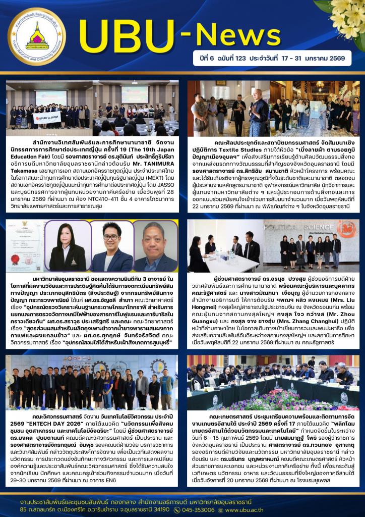UBU NEWS ปีที่ 6 ฉบับที่ 123 ประจำวันที่ 17 - 31 มกราคม 2569