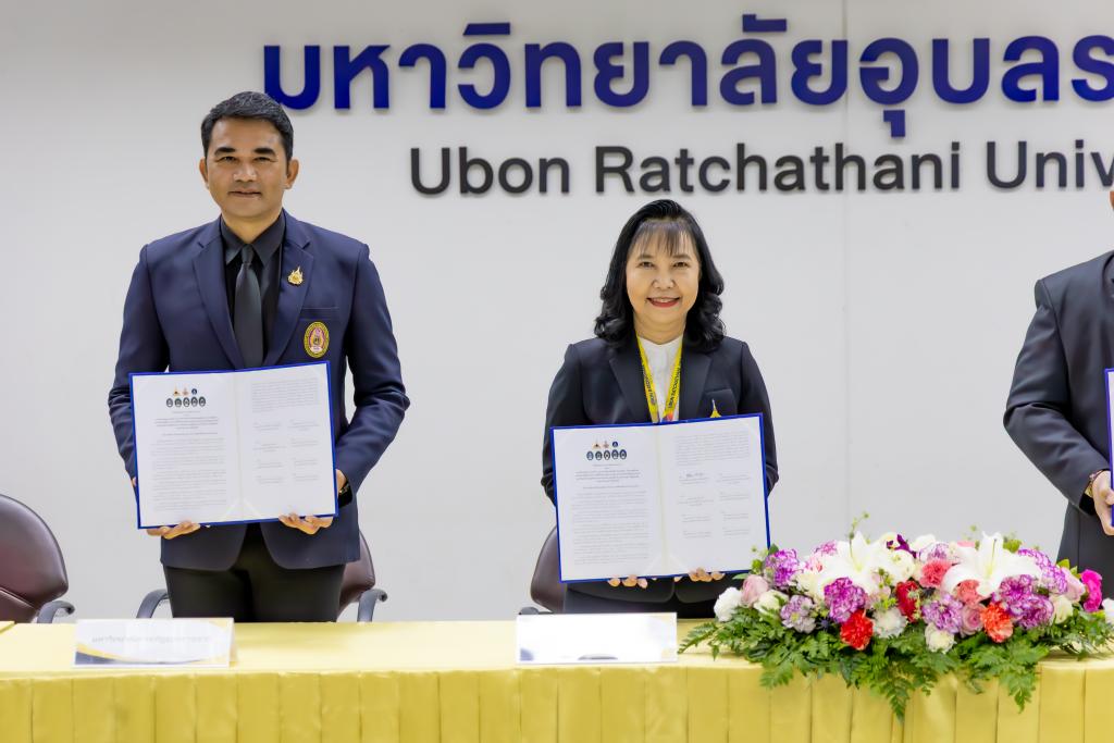 วันพุธที่ 4 กุมภาพันธ์ 2569 ณ ห้องประชุมพิบูลมังสาหาร ชั้น 2 อาคารสำนักงานอธิการบดี มหาวิทยาลัยอุบลราชธานี โดยมี รศ.ดร.ชุตินันท์ ประสิทธิ์ภูริปรีชา อธิการบดีมหาวิทยาลัยอุบลราชธานี นำ คณะผู้บริหาร บุคลากร ร่วมให้การต้อนรับ สถาบันเครือข่าย 7 สถาบัน และลงนามใน บันทึกข้อตกลงความร่วมมือทางวิชาการ เรื่อง ส่งเสริมการใช้ประโยชน์ในการดำเนินการต่อสัตว์เพื่องานทางวิทยาศาสตร์ โอกาส ศ.ดร.ทวนทอง จุฑาเกตุ รองอธิการบดีฝ่ายวิจัยและนวัตกรรม ได้กล่าวรายงานวัตถุประสงค์ของบันทึกข้อตกลงความร่วมมือทางวิชาการ ดังกล่าว ภายในงาน จัดให้มี การบรรยายพิเศษ เรื่อง "การดำเนินการต่อสัตว์เพื่องานทางวิทยาศาสตร์ให้สอดคล้องกับจรรยาบรรณการดำเนินการต่อสัตว์เพื่องานทางวิทยาศาสตร์ และพระราชบัญญัติสัตว์เพื่องานทางวิทยาศาสตร์ พ.ศ. 2558 โดยรองศาสตราจารย์ ดร. วิสุดา สุวิทยาวัฒน์ และ ดร.ปัทมารัตน์ กุญชร ณ อยุธยา สถาบันพัฒนาการดำเนินการต่อสัตว์เพื่องานทางวิทยาศาสตร์ (สพสว.) สังกัดสำนักงานการวิจัยแห่งชาติ (วช.) การเสวนา ตอบข้อคำถาม และแลกเปลี่ยนความคิดเห็นเกี่ยวกับเรื่อง "การดำเนินการต่อสัตว์เพื่องานทาง วิทยาศาสตรใหได้ตามมาตรฐาน: ปัญหา และแนวทางการแก้ไข"โดยรองศาสตราจารย์ ดร. วิสุดา สุวิทยาวัฒน์ และ ดร.ปัทมารัตน์ กุญชร ณ อยุธยา สถาบันพัฒนาการดำเนินการต่อสัตว์เพื่องานทางวิทยาศาสตร์ (สพสว.) สังกัดสำนักงานการวิจัยแห่งชาติ (วช.)