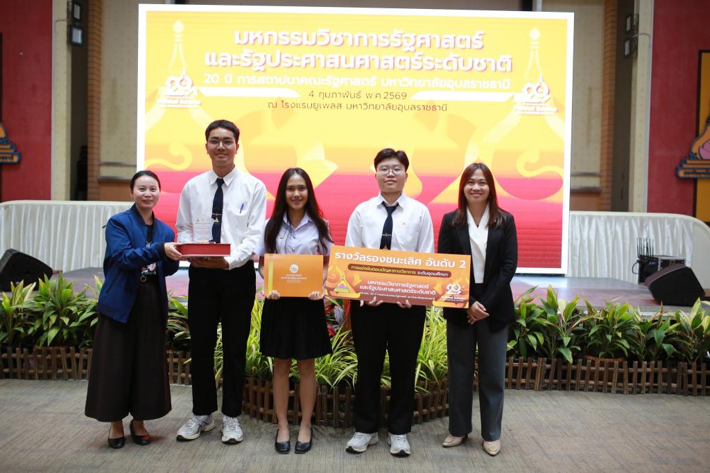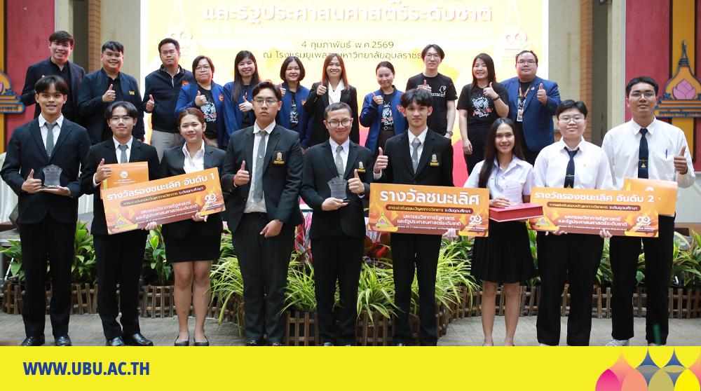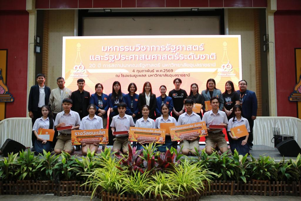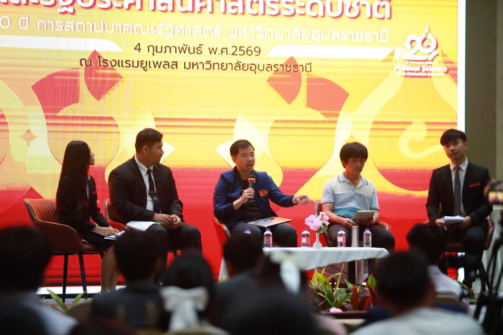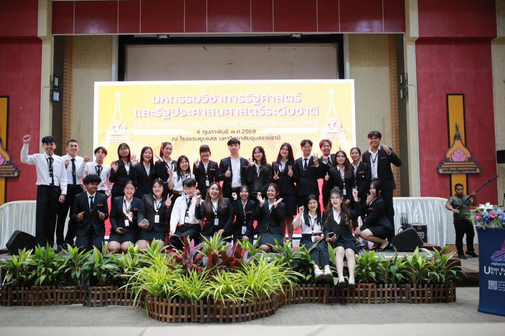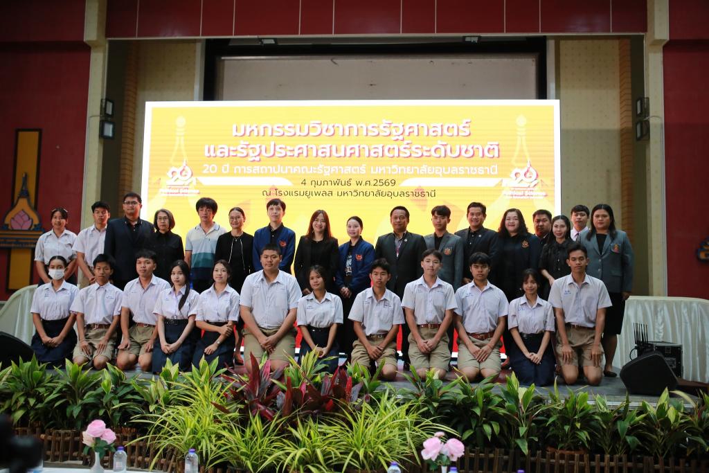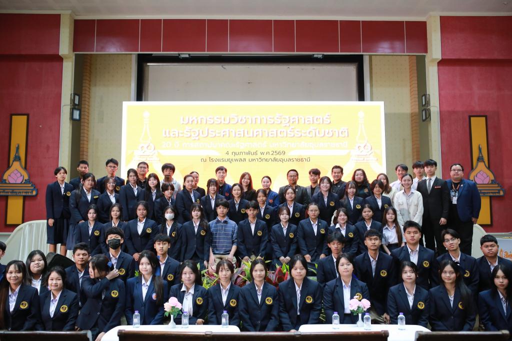 คณะรัฐศาสตร์ มหาวิทยาลัยอุบลราชธานี โดยสโมสรนักศึกษา จัดงาน "มหกรรมวิชาการรัฐศาสตร์และรัฐประศาสนศาสตร์"เพื่อเฉลิมฉลองในโอกาสครบรอบ 20 ปี แห่งการสถาปนาคณะฯ และมเป็นเวทีแลกเปลี่ยนความรู้และพัฒนาศักยภาพทางวิชาการให้แก่เยาวชนและนิสิตนักศึกษาในพื้นที่ภาคตะวันออกเฉียงเหนือ โดยมี ดร.ศิริพร จันทนสกุลวงศ์ คณบดีคณะรัฐศาสตร์ มหาวิทยาลัยอุบลราชธานี เป็นประธาน โดยมี การเสวนา กิจกรรม Open House การแข่งขันตอบปัญหารัฐศาสตร์ ระดับมัธยมศึกษาตอนปลาย และระดับอุดมศึกษา ซึ่งได้รับความสนใจจากนักเรียน นักศึกษา พื้นที่ภาคตะวันออกเฉียงเหนือเข้าร่วม ณ โรงแรมยูเพลส มหาวิทยาลัยอุบลราชธานี เมื่อวันที่ 4 กุมภาพันธ์ 2569 ที่ผ่านมา