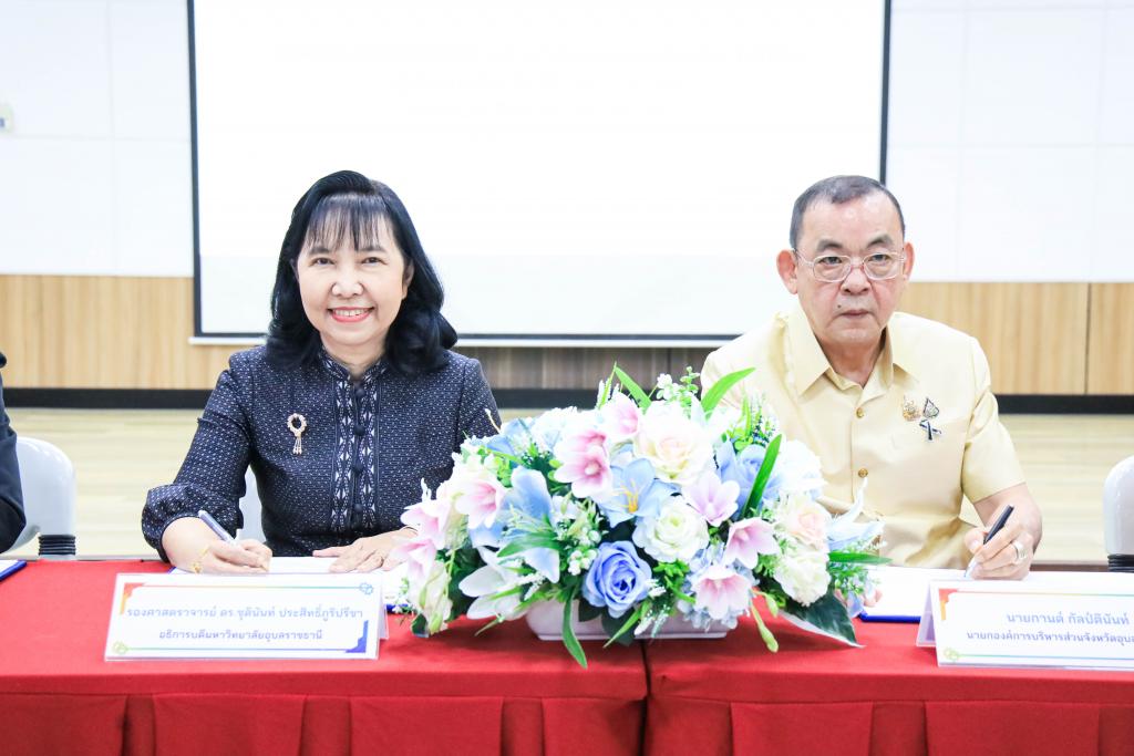รองศาสตราจารย์ ดร.ชุตินันท์ ประสิทธิ์ภูริปรีชา อธิการบดี กล่าวว่า มหาวิทยาลัยอุบลราชธานี มีความเชื่อมั่นว่าความร่วมมือครั้งนี้ จะเป็นรากฐานที่เข้มแข็งในการขยายผลการดำเนินงานร่วมกัน ผนึกกำลังระหว่างภาคการศึกษา หน่วยงานภาครัฐ ภาคเอกชน และภาคประชาสังคม เพื่อยกระดับเมืองเก่าวารินชำราบ ให้เป็นพื้นที่แห่งการเรียนรู้ที่มีชีวิตชีวาและยั่งยืน โดยใช้องค์ความรู้จากงานวิจัย และผลงานนวัตกรรม ซึ่งเป็นกลไกสำคัญในการขับเคลื่อนการพัฒนาควบคู่กับการอนุรักษ์และต่อยอดมรดกทางวัฒนธรรมและภูมิปัญญาท้องถิ่น ซึ่งมีการบูรณาการความร่วมมือจากทุกภาคส่วนในการพัฒนาเมืองเก่าวารินชำราบ ให้เป็นนิเวศแห่งการเรียนรู้ที่ยั่งยืน ผลักดันเมืองเก่าวารินชำราบ ให้ก้าวสู่การเป็นเมืองแห่งการเรียนรู้ตามแนวทางขององค์การยูเนสโก (UNESCO Learning City) อันจะเป็นความภาคภูมิใจร่วมกันของทุกภาคส่วน