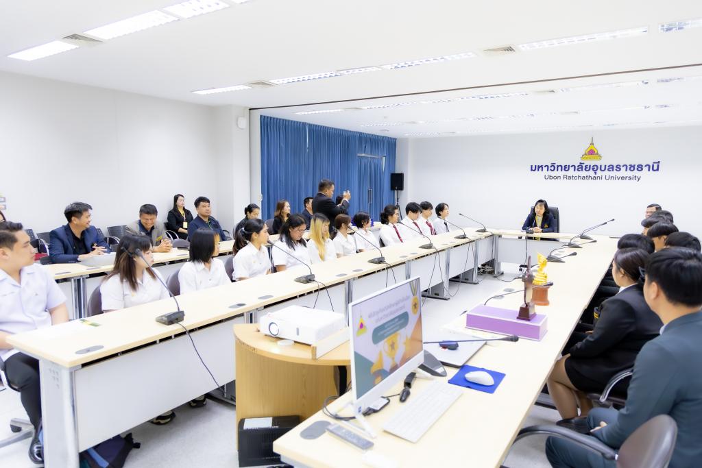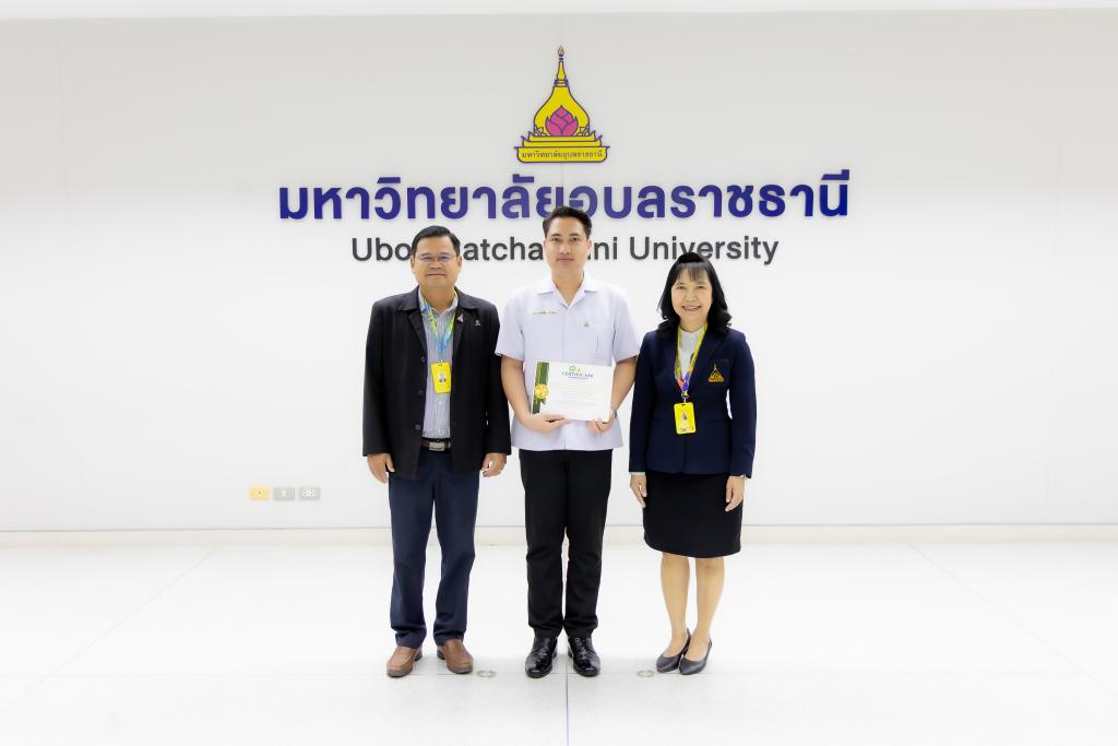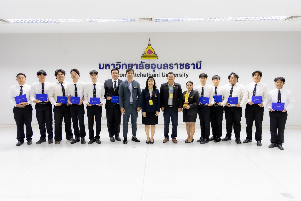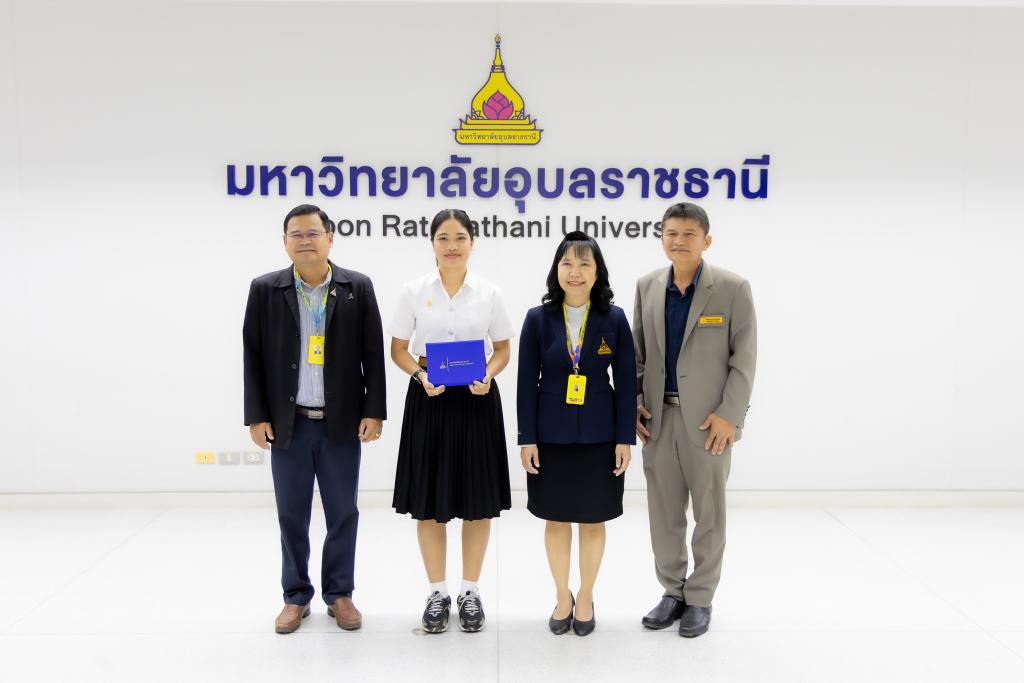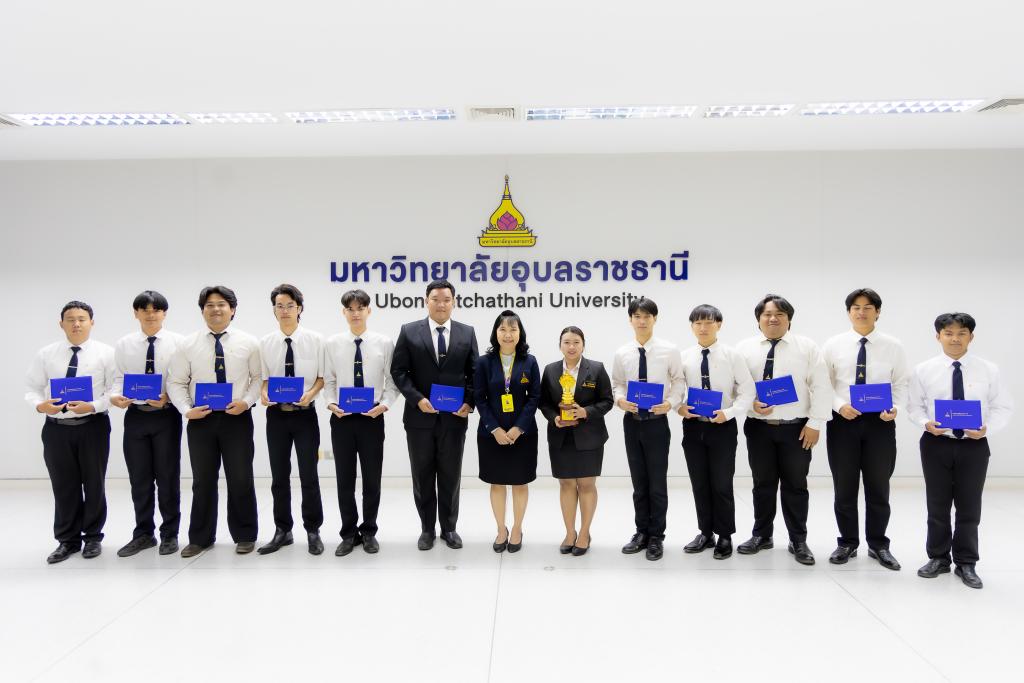 มหาวิทยาลัยอุบลราชธานี โดย สำนักงานพัฒนานักศึกษา จัดกิจกรรม เชิดชูเกียรตินักศึกษาผู้สร้างชื่อเสียงให้กับมหาวิทยาลัยอุบลราชธานี ประจำเดือน มีนาคม 2569 โดยมี รองศาสตราจารย์ ดร.ชุตินันท์ ประสิทธิ์ภูริปรีชา อธิการบดี เป็นประธาน พร้อมกล่าวชื่นชม แสดงความยินดี และขอบคุณนักศึกษา ที่ มุ่งมั่นตั้งใจในการศึกษาพัฒนาทักษะ เสียสละเวลาทุ่มเทเข้าร่วมการประกวดและแข่งขัน มีผลงานเป็นที่ประจักษ์ จนสามารถสร้างชื่อเสียงให้กับคณะ และมหาวิทยาลัยในครั้งนี้ โอกาสนี้ มหาวิทยาลัยอุบลราชธานี ได้มอบใบประกาศเกียรติคุณแก่นักศึกษา ซึ่งมี ผู้ช่วยศาสตราจารย์ ดร.ปรีชา บุญจูง รองอธิบดีฝ่ายพัฒนานักศึกษาและศิษย์เก่าสัมพันธ์ พร้อมด้วยคณะผู้บริหาร อาจารย์ที่ปรึกษา ร่วมเป็นเกียรติในงาน โดยมีนักศึกษาลงทะเบียนในระบบนำผลรางวัล เข้าร่วมกิจกรรม จำนวน 24 ผลงาน ณ ห้องพิบูลมังสาหาร สำนักงานอธิการบดี