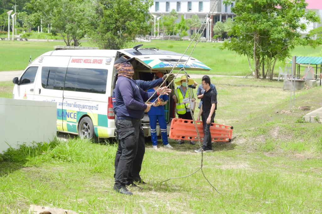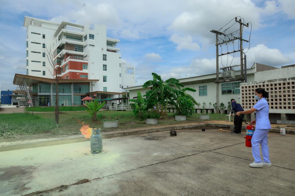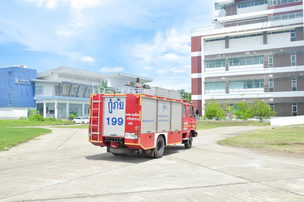 ทั้งนี้ โรงพยาบาลมหาวิทยาลัยอุบลราชธานีให้ความสำคัญเกี่ยวกับ อัคคีภัย หรือภัยที่เกิดจากเพลิงไหม้ เป็นสาธารณภัยประเภทหนึ่งที่มีโอกาสเกิดขึ้นได้ตลอดเวลา เพื่อลดความสูญเสียจากอัคคีภัยที่อาจเกิดขึ้นได้ในทุกพื้นที่ ดำเดินการตามกฎกระทรวงกระทรวงแรงงานและสวัสดิการสังคม เกี่ยวกับการบริหารจัดการด้านความปลอดภัย อาชีวอนามัยและสภาพแวดล้อมในการทำงาน เพื่อเป็นการพัฒนาทักษะความรู้ให้มีความเข้าใจเกี่ยวกับวิธีการดับเพลิง และอพยพหนีไฟสามารถระงับเหตุเพลิงไหม้ในเบื้องต้นได้อย่างมีประสิทธิภาพ โดยโรงพยาบาลได้จำลองสถานการณ์เพลิงไหม้ที่หอผู้ป่วยใน ชั้น 8 อาคารโรงพยาบาล และอพยพเคลื่อนย้ายผู้ป่วยในแนวดิ่ง(โรยตัว) จากชั้นดาดฟ้า ซึ่งได้รับความอนุเคราะห์วิทยากรจากสำนักงานป้องกันและบรรเทาสาธารณภัยเทศบาลวารินชำราบ และภาคีเครือข่ายที่เกี่ยวข้องเข้าร่วมซักซ้อม ได้แก่ สถานีตำรวจภูธรย่อยเทศบาลตำบลเมืองศรีไค งานป้องกันบรรเทาสาธารณภัยเทศบาลเมืองศรีไค สำนักงานรักษาความปลอดภัยและสวัสดิภาพบุคลากร หน่วยกู้ชีพ เเละสำนักพัฒนานักศึกษา มหาวิทยาลัยอุบลราชธานี