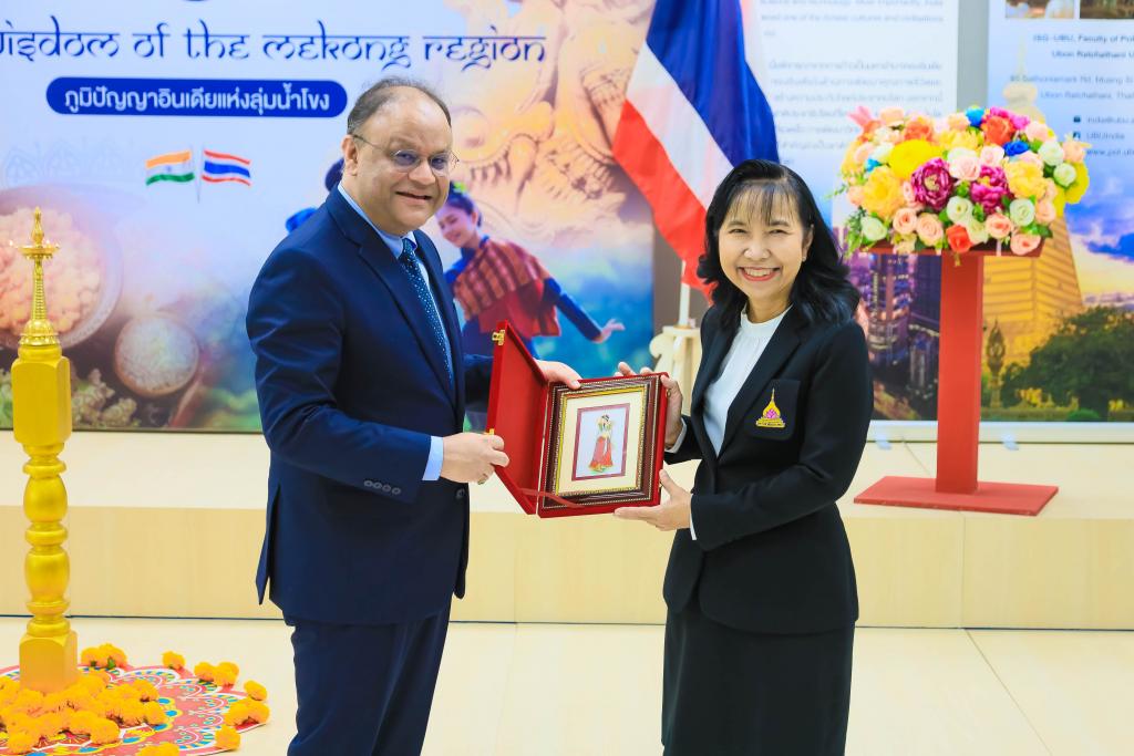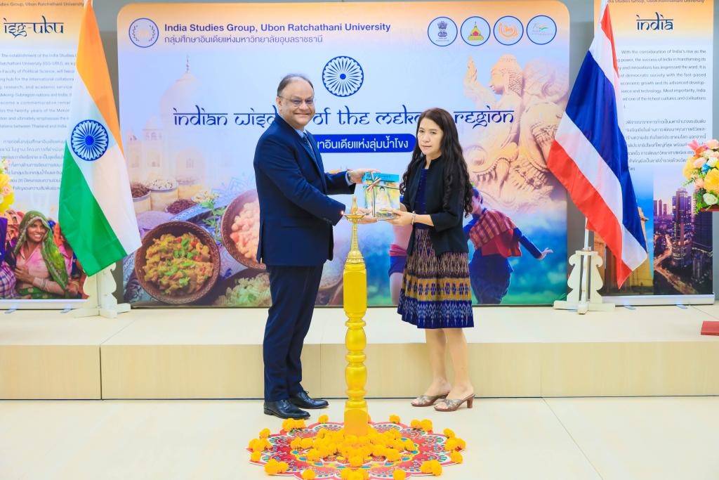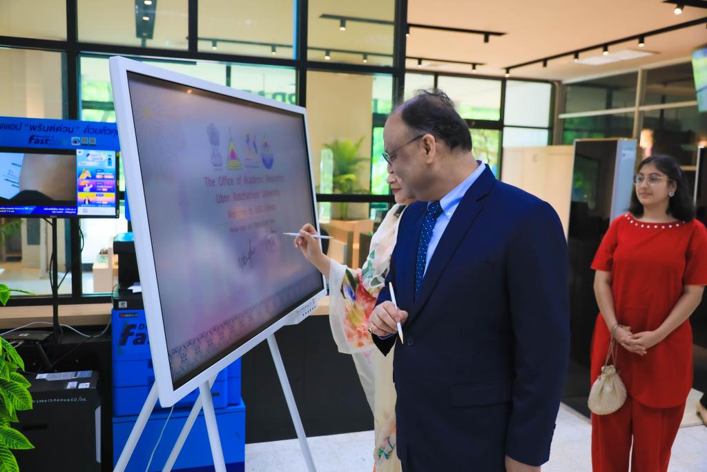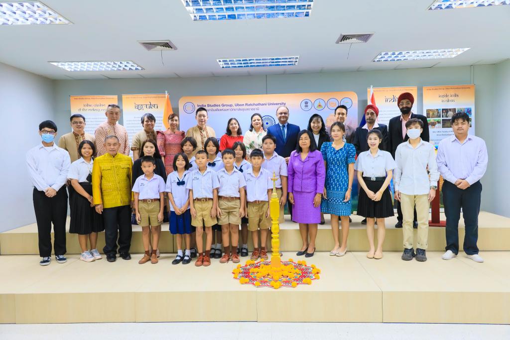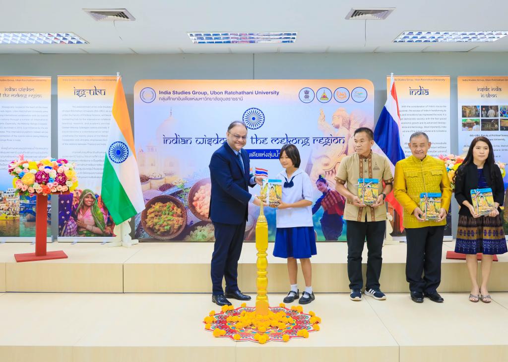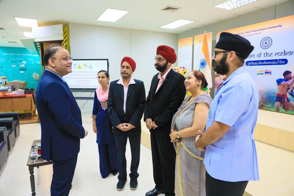 มหาวิทยาลัยอุบลราชธานี โดย ผศ.ดร.ชุตินันท์ ประสิทธิ์ภูริปรีชาอธิการบดีมหาวิทยาลัยอุบลราชธานี นำ คณะผู้บริหาร บุคลากร ให้การต้อนรับ ฯพณฯ นาเกช ซิงห์ เอกอัครราชทูตอินเดียประจำประเทศไทย ในโอกาส รับมอบสื่อการเรียนรู้ ให้กับมุมอินเดีย สำนักวิทยบริการ ตลอดจน โรงเรียนในชุมชนโดยรอบ มหาวิทยลัยอุบลราชธานี เมื่อวันที่ 31 กรกฎาคม 2566 ณ สำนักวิทยบริการ มหาวิทยาลัยอุบลราชธานี