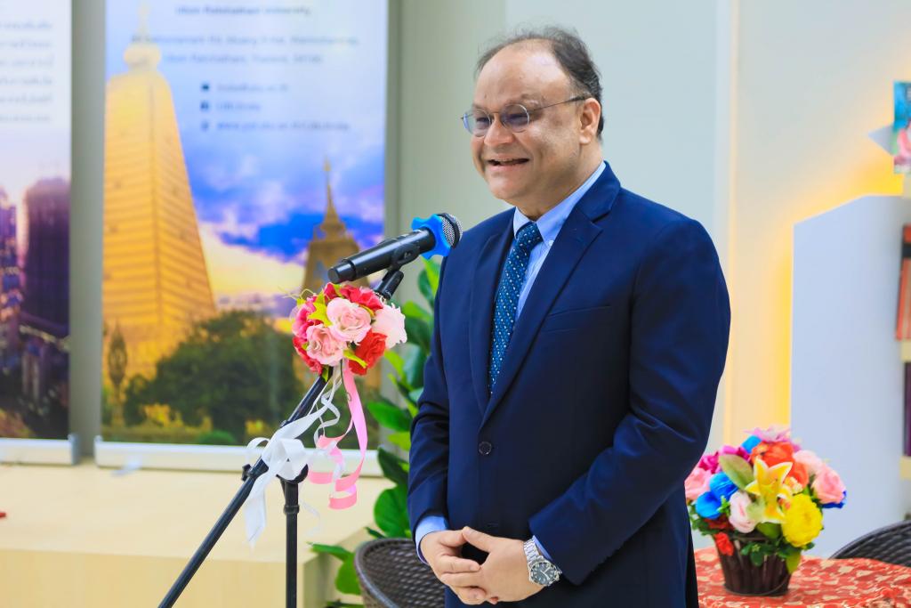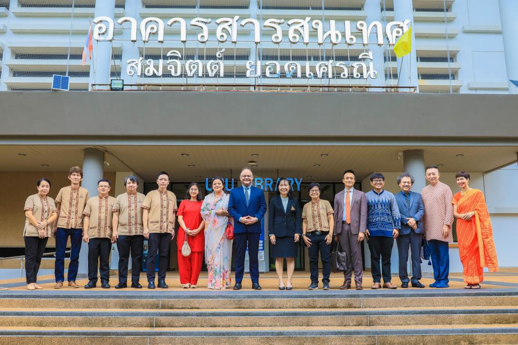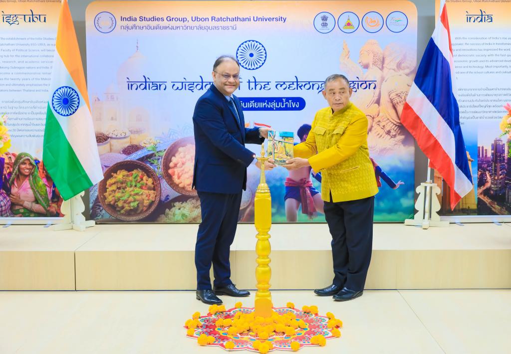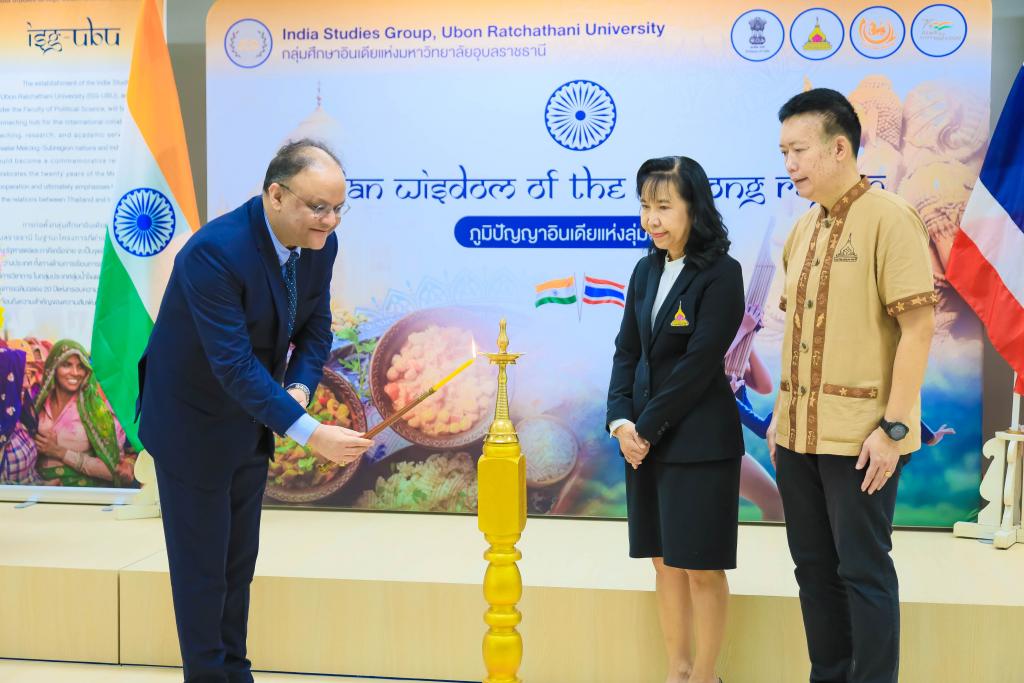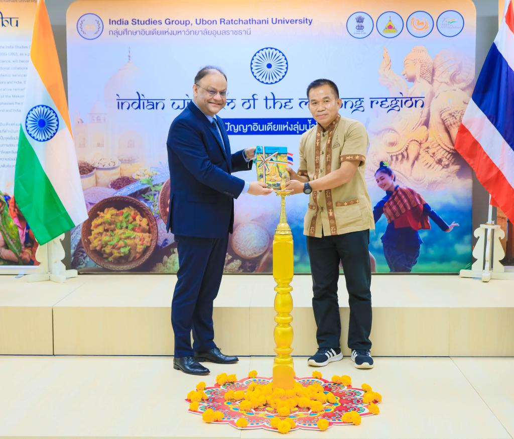 มหาวิทยาลัยอุบลราชธานี โดย ผศ.ดร.ชุตินันท์ ประสิทธิ์ภูริปรีชาอธิการบดีมหาวิทยาลัยอุบลราชธานี นำ คณะผู้บริหาร บุคลากร ให้การต้อนรับ ฯพณฯ นาเกช ซิงห์ เอกอัครราชทูตอินเดียประจำประเทศไทย ในโอกาส รับมอบสื่อการเรียนรู้ ให้กับมุมอินเดีย สำนักวิทยบริการ ตลอดจน โรงเรียนในชุมชนโดยรอบ มหาวิทยลัยอุบลราชธานี เมื่อวันที่ 31 กรกฎาคม 2566 ณ สำนักวิทยบริการ มหาวิทยาลัยอุบลราชธานี
