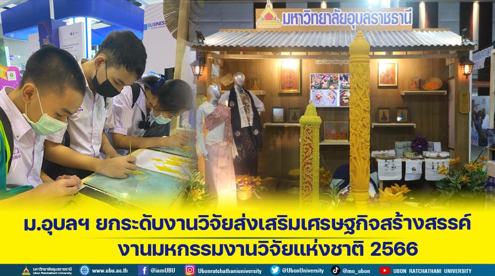 . มหาวิทยาลัยอุบลราชธานี นำผลงานกลุ่มงานวิจัยและนวัตกรรมเพื่อส่งเสริมเศรษฐกิจสร้างสรรค์ เข้าร่วมแสดงนิทรรศการผลงานวิจัยในงาน "มหกรรมงานวิจัยแห่งชาติ 2566" (Thailand Research Expo 2023)หัวข้อ “วิจัยไทยก้าวไกล ขับเคลื่อนเศรษฐกิจและสังคมอย่างยั่งยืน” โดย สำนักงานการวิจัยแห่งชาติ (วช.) ซึ่งเป็นเวทีระดับชาติที่นำเสนอความก้าวหน้าผลงานวิจัย เทคโนโลยี และนวัตกรรมที่มีคุณภาพ ระหว่างวันที่ 7 – 11 สิงหาคม 2566 ณ โรงแรมเซ็นทาราแกรนด์ และบางกอกคอนเวนชันเซ็นเตอร์ เซ็นทรัลเวิลด์ กรุงเทพฯ