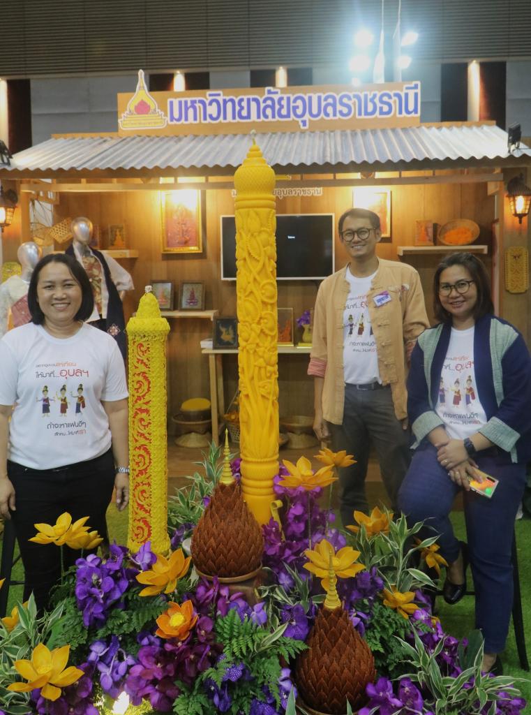 ผลงานที่ 2 การยกระดับคุณค่าและมูลค่าภูมิปัญญาท้องถิ่นการทำเทียนพรรษาจังหวัดอุบลราชธานีบนฐานเศรษฐกิจสร้างสรรค์เพื่อสร้างรายได้แก่ชุมชน ผู้ช่วยศาสตราจารย์สุวภัทร ศรีจองแสง หัวหน้าโครงการ