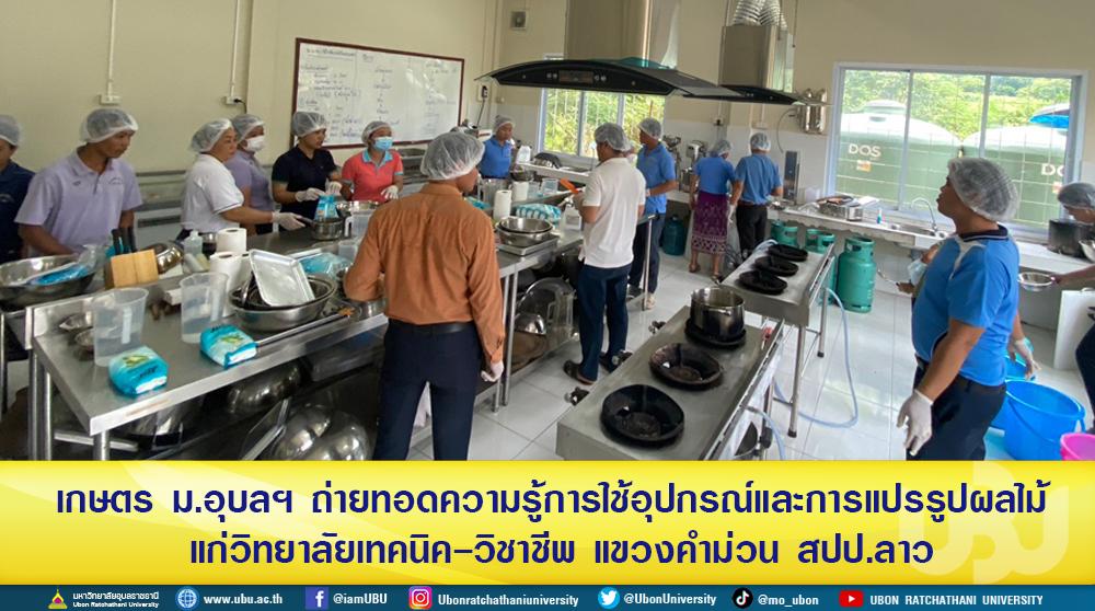 มหาวิทยาลัยอุบลราชธานี โดยคณะเกษตรศาสตร์ จัดโครงการฝึกอบรมเชิงปฏิบัติการ หลักสูตรการใช้อุปกรณ์แปรรูปอาหารและการแปรรูปผลไม้ ให้แก่ อาจารย์และบุคลากร ศูนย์เรียนรู้เพื่อการพัฒนาเกษตรแบบยั่งยืนตามแนวทางปรัชญาเศรษฐกิจพอเพียงที่วิทยาลัยเทคนิค-วิชาชีพ แขวงคำม่วน สาธารณรัฐประชาธิปไตยประชาชนลาว(สปป.ลาว) โดยการสนับสนุนงบประมาณจากกรมความร่วมมือระหว่างประเทศ กระทรวงต่างประเทศ ซึ่งมีอาจารย์คณะเกษตรศาสตร์ สาขาอุตสาหกรรมเกษตร ประกอบด้วย ผู้ช่วยศาสตราจารย์ ดร.เอกสิทธิ์ อ่อนสะอาด ผู้ช่วยศาสตราจารย์ ดร.วิริยา อ่อนสะอาด ผศ.ดร.ชุติมา ทองแก้ว และดร.วชิรพรรณ บุญญาพุทธิพงศ์เป็นวิทยากร ระหว่างวันที่ 29 สิงหาคม-2กันยายน 2566 ที่ผ่านมา