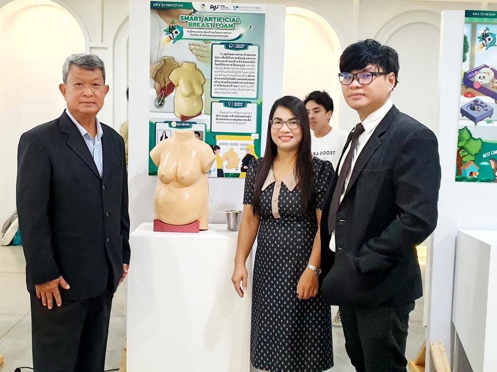 2. ทีม Smart Artificial breast Foamผลิตภัณฑ์ “หุ่นเต้านมเทียมจากโฟมยางพาราอัจฉริยะสำหรับฝึกนวดกระตุ้นเต้านมของแม่คลอดบุตร” พัฒนาโดย ผู้ช่วยศาสตราจารย์ ดร.ปราณี นุ้ยหนู สาขาเทคโนโลยียางและพอลิเมอร์ ภาควิชาเคมี คณะวิทยาศาสตร์ มหาวิทยาลัยอุบลราชธานี ร่วมกับ นายกรวิช แก้วดี และ นายอนุพงษ์ รัฐิรมย์ บริษัทรับบิทเทค