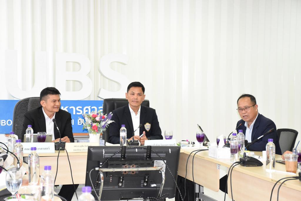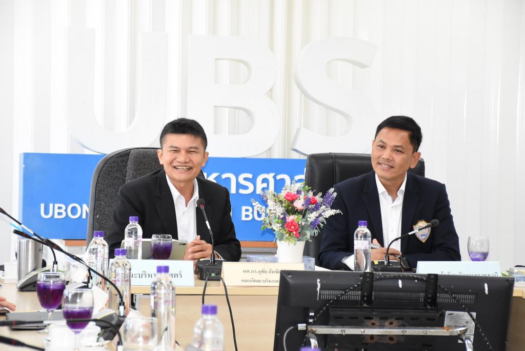 คณะบริหารศาสตร์ มหาวิทยาลัยอุบลราชธานี นำทีมโดย ผู้ช่วยศาสตราจารย์ ดร.อุทัย อันพิมพ์ คณบดีคณะบริหารศาสตร์ พร้อมคณะผู้บริหารและกรรมการประจำคณะบริหารศาสตร์ ให้การต้อนรับ นายมงคล จุลทัศน์ ประธานหอการค้าจังหวัดอุบลราชธานี พร้อมคณะผู้แทนหอการค้าจังหวัดอุบลราชธานี ในการประชุมหารือแนวทางการสร้างความร่วมมือระหว่างหน่วยงาน ด้านการจัดการศึกษา การออกแบบกระบวนการเรียนการสอน รวมไปถึงความร่วมมือด้านการแลกเปลี่ยนหรือบริการวิชาการ การวิจัยร่วมกัน ซึ่งเป็นการประสานความร่วมมือเพื่อเพิ่มคุณภาพของบัณฑิต การบริการวิชาการและงานวิจัยที่สอดคล้องกับความต้องการและความจำเป็นของสถานประกอบการอย่างแท้จริง เมื่อวันพุธที่ 11 ตุลาคม 2566 ณ ห้องประชุม UBS 3 คณะบริหารศาสตร์