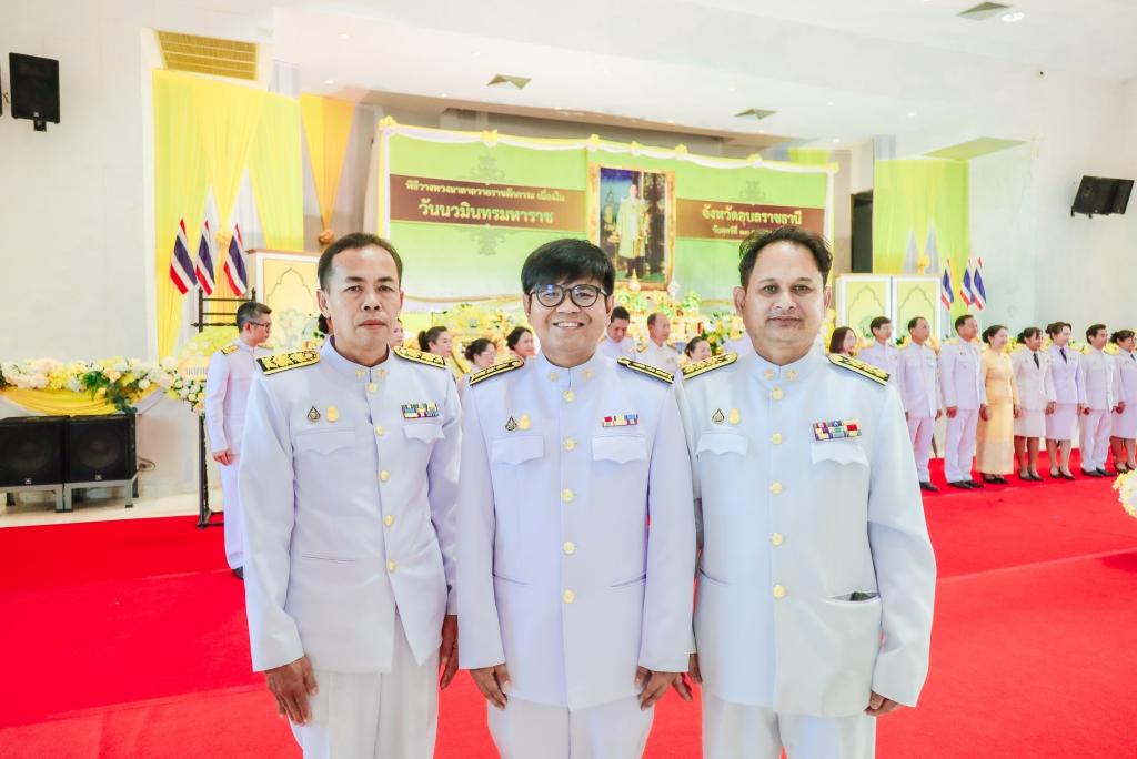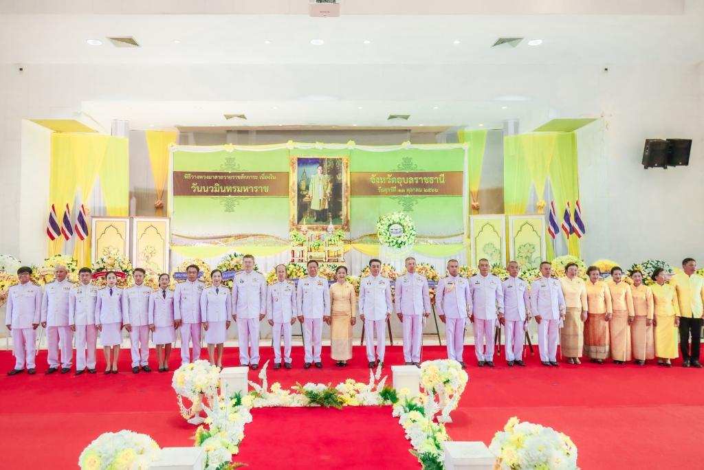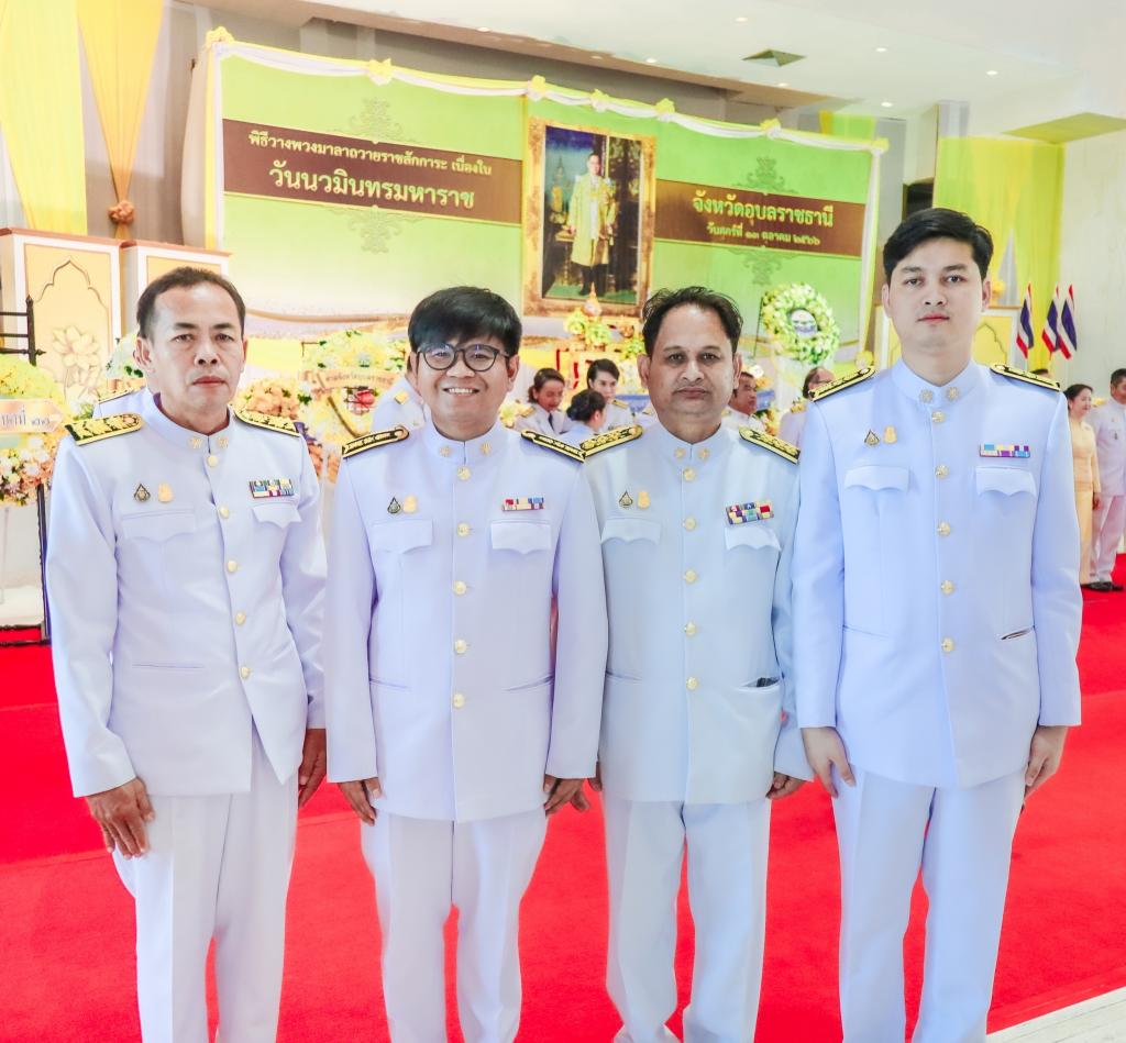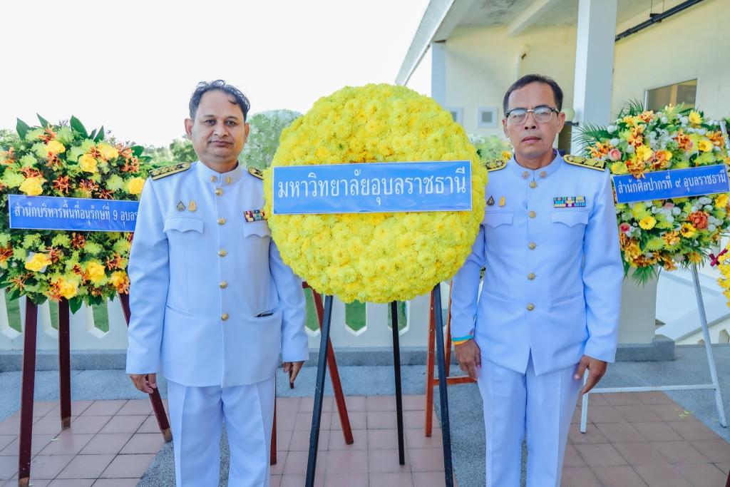 จากนั้น เวลา 08.00 น. ได้จัดให้มีพิธีวางพวงมาลา เนื่องในวันนวมินทรมหาราช ณ หอประชุมจังหวัดอุบลราชธานี มหาวิทยาลัยอุบลราชธานีโดยมี ผศ.ดร.ปิยณัฐ สร้อยคำ ผู้ช่วยอธิการบดีฝ่ายสื่อสารองค์กรและพันธกิจสัมพันธ์ นำบุคลากร วางพวงมาลาเบื้องหน้าพระบรมฉายาลักษณ์ พระบาทสมเด็จพระบรมชนกาธิเบศร มหาภูมิพลอดุลยเดชมหาราช บรมนาถบพิตร ซึ่งทั้ง 2 กิจกรรมนั้น ได้รับเกียรติจาก นายศุภศิษย์ กอเจริญยศ ผู้ว่าราชการจังหวัดอุบลราชธานี เป็นประธานในพิธี