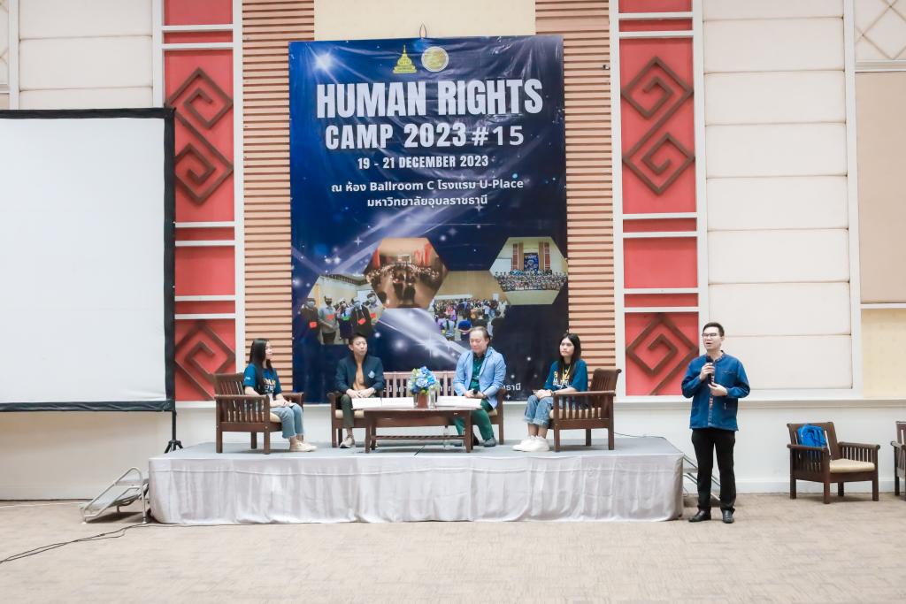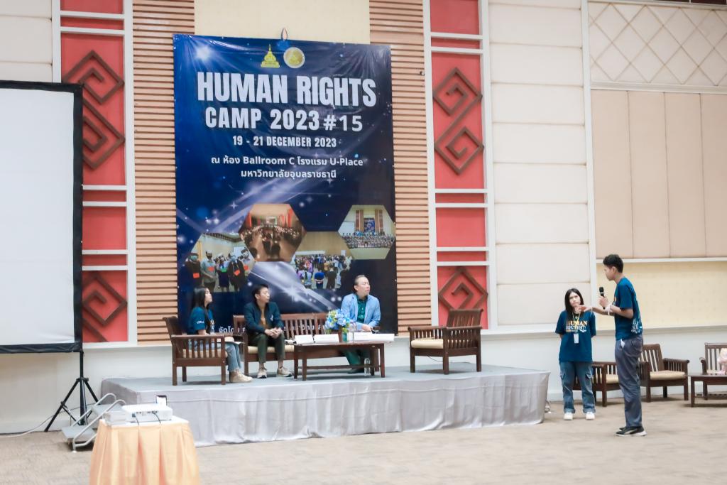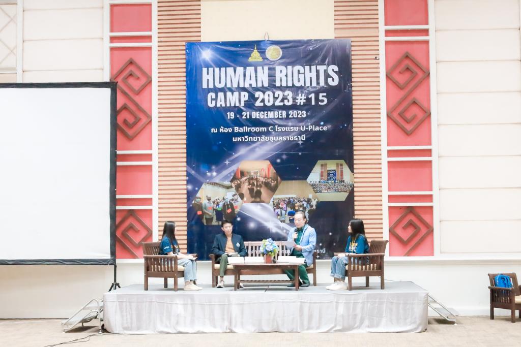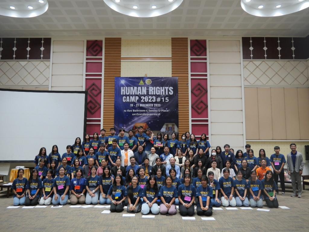 มหาวิทยาลัยอุบลราชธานี โดย ศูนย์เผยแพร่และช่วยเหลือประชาชนทางกฎหมาย คณะนิติศาสตร์ จัดกิจกรรมค่าย เยาวชนพิทักษ์สิทธิมนุษยชน ครั้งที่ 15 The Human Rights Camp 15 ประจำปี 2566 สร้างความรู้ความเข้าใจให้แก่เยาวชนในเรื่องสิทธมนุษยชน นำมาใช้ในชีวิตประจำวัน สามารถนำไปใช้เเก้ไขปัญหาของสังคมไทยในอนาคต โดยมี ดร.นิติลักษณ์ แก้วจันดี คณบดีคณะนิติศาสตร์ เป็นประธานในพิธีเปิด เเละ นายเกรียงไกร คำระหงษ์ ประธานนักศึกษาฝึกงานศูนย์เผยแพร่และช่วยเหลือประชาชนทางกฎหมาย คณะนิติศาสตร์ กล่าวรายงาน ซึ่งมีนักเรียนในเขตภาคตะวันออกเฉียงเหนือจาก 25 โรงเรียน เข้าร่วมจำนวน 60 คน ณ โรงแรมยูแพลส มหาวิทยาลัยอุบลราชธานี เมื่อวันที่ 19 - 21 ธันวาคม 2566 ที่ผ่านมา