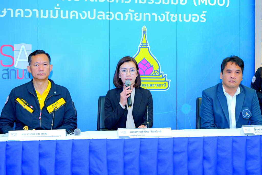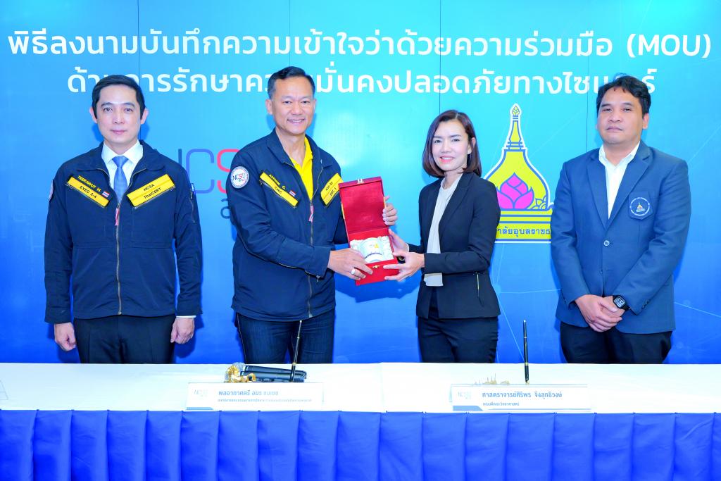 มหาวิทยาลัยอุบลราชธานี โดยคณะวิทยาศาสตร์ ลงนามบันทึกความเข้าใจร่วมกับ สำนักงานคณะกรรมการการรักษาความมั่นคงปลอดภัยไซเบอร์แห่งชาติ (สกมช.) โดยมี ศาสตราจารย์ ดร.ศิริพร จึงสุทธิวงษ์ คณบดีคณะวิทยาศาสตร์ และ พลอากาศตรี อมร ชมเชย เลขาธิการคณะกรรมการการรักษาความมั่นคงปลอดภัยไซเบอร์แห่งชาติ เป็นผู้ลงนามในบันทึกความเข้าใจ ว่าด้วยความร่วมมือด้านการส่งเสริมการพัฒนาทักษะการรักษาความมั่นคงปลอดภัยทางไซเบอร์ เพื่อสร้างความตระหนักรู้การรักษาความมั่นคงปลอดภัยไซเบอร์ และพัฒนาองค์ความรู้เกี่ยวกับการรักษาความมั่นคงปลอดภัยไซเบอร์ รวมทั้ง ยกระดับสถาบันการศึกษาในระดับพื้นที่สู่การเป็นศูนย์กลางการแลกเปลี่ยน เรียนรู้ ติดตาม วิเคราะห์ และประมวลผลข้อมูลเกี่ยวกับภัยคุกคามทางไซเบอร์ และการแจ้งเตือนเกี่ยวกับภัยคุกคามทางไซเบอร์ ณ ชั้น 7ห้อง Confidential สำนักงานคณะกรรมการการรักษาความมั่นคงปลอดภัยไซเบอร์แห่งชาติ (สกมช.) เมื่อวันจันทร์ที่ 4 มีนาคม 2567 ที่ผ่านมา
