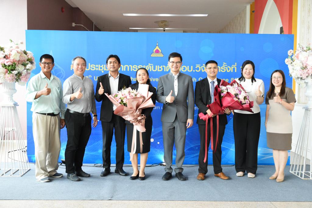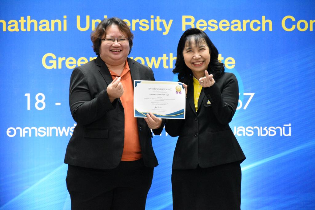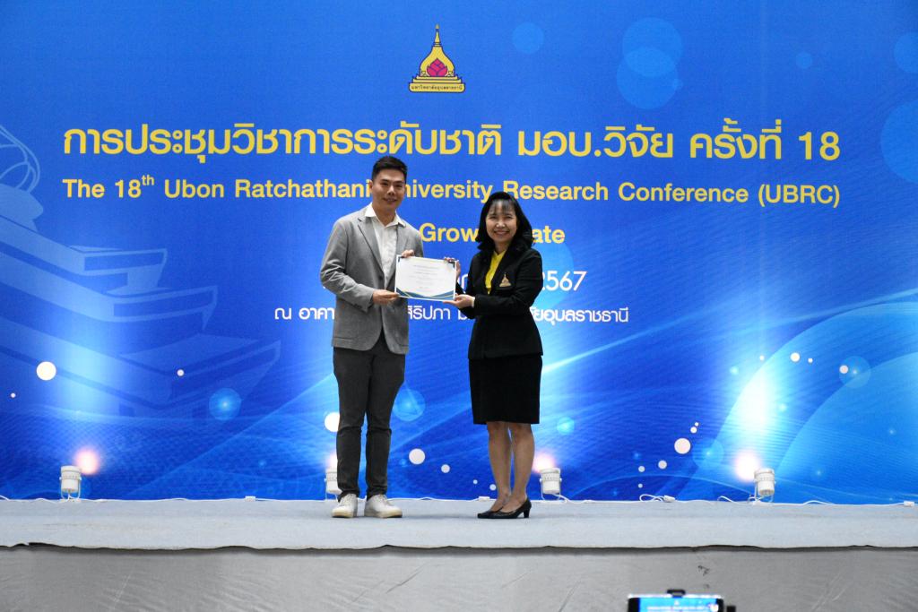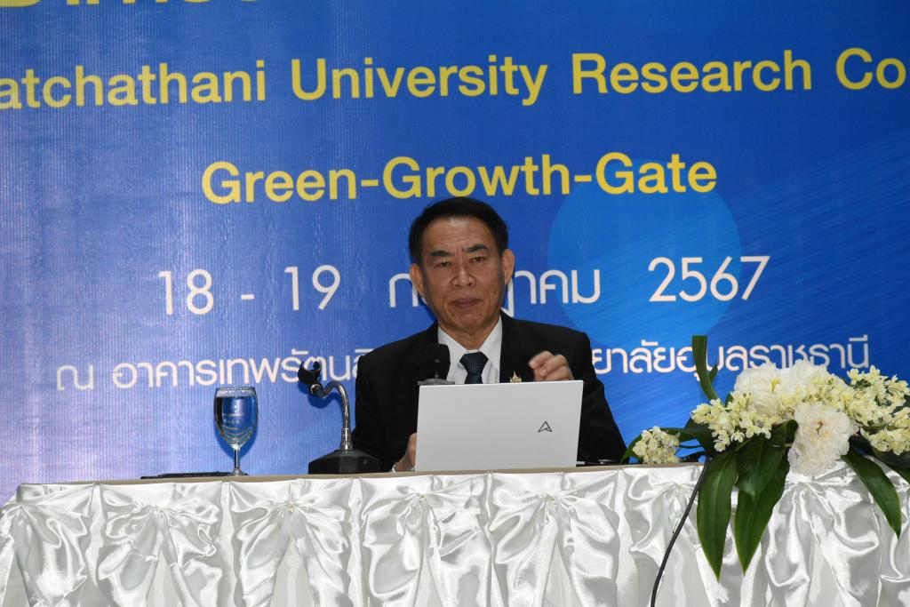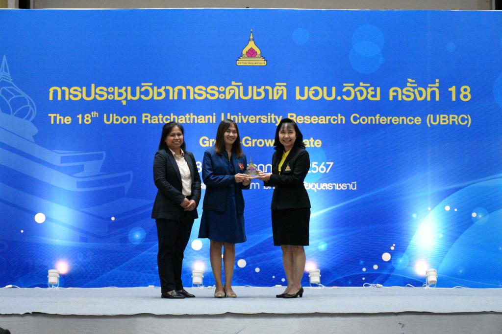 ศาสตราจารย์ ดร.ทวนทอง จุฑาเกตุ รองอธิการบดีฝ่ายวิจัยและนวัตกรรม กล่าวว่า สำหรับการประชุมวิชาการระดับชาติ มอบ.วิจัย ครั้งที่ 18 ภายใต้หัวข้อ “Green-Growth-Gate” เพื่อให้สอดคล้องกับยุทธศาสตร์ อววน. และแผนปฏิบัติการขับเคลื่อนและส่งเสริมการใช้ประโยชน์ด้าน ววน. ระดับภูมิภาค (2567-2570) และแผนยุทธศาสตร์มหาวิทยาลัยอุบลราชธานี โดยการนำเสนอผลงานวิจัยและนวัตกรรมที่จะเป็นทิศทางเพื่อการขับเคลื่อนการพัฒนาประเทศในประเด็นต่อไปนี้ Green – ฐานการผลิตและบริการที่เป็นมิตรกับสิ่งแวดล้อม, Growth – การวิจัยและพัฒนาเพื่อสร้างความเข้มแข็งในการแข่งขันและยกระดับคุณภาพชีวิต และGate – ยกระดับการผลิตและบริการสู่มาตรฐานสากลเพื่อขับเคลื่อนเศรษฐกิจของประเทศ ทั้งนี้ เพื่อเป็นเวทีในการนำเสนอผลงานการวิจัยในระดับอุดมศึกษาของคณาจารย์ นักวิจัย และนักศึกษาในสถาบันอุดมศึกษาต่าง ๆ เพื่อส่งเสริมและสร้างการเรียนรู้ สร้างเครือข่าย และยกระดับงานทางวิชาการมาอย่างต่อเนื่องทุกปี ซึ่งในปีนี้มีผู้เข้าร่วมงานพร้อมผลงานวิจัยที่ผ่านการพิจารณาเข้าร่วมนำเสนอ รวมทั้งสิ้น 54 ผลงาน แบ่งเป็นการนำเสนอแบบบรรยายจำนวน 36 ผลงาน และการนำเสนอแบบโปสเตอร์จำนวน 18 ผลงาน และยังกำหนดให้มีการลงนามความร่วมมือ (MOU) ระหว่างสำนักงานพัฒนาการวิจัยการเกษตร (องค์การมหาชน) กับมหาวิทยาลัยอุบลราชธานี เพื่อส่งเสริม สนับสนุนทุนเพื่อการพัฒนาการวิจัยการเกษตรและบุคลากรด้านการเกษตร การจัดกิจกรรมให้คำปรึกษาคลินิกวิจัยโดยทีมวิทยากรผู้ทรงคุณวุฒิจากสำนักงานพัฒนาการวิจัยการเกษตร (องค์การมหาชน) การจัดนิทรรศการผลงานวิจัยของศูนย์วิจัย กลุ่มวิจัยในมหาวิทยาลัยอุบลราชธานี และการมอบรางวัลให้แก่นักวิจัยของมหาวิทยาลัย โดยมีการมอบรางวัลเชิดชูเกียรตินักวิจัย 10 ท่าน รางวัลนักวิจัยที่มีผลงานดีเด่นและผลงานวิจัยที่ได้รับรางวัล จำนวน 3 รางวัล ได้แก่ รางวัลนักวิจัยระดับ Tier 1 และ Q1 ผู้สร้างสรรค์ผลงานวิจัยตีพิมพ์ในวารสารวิชาการ รางวัลผลงานวิจัยสิ่งประดิษฐ์/นวัตกรรม และรางวัลผลงานวิจัยเพื่อชุมชนท้องถิ่น