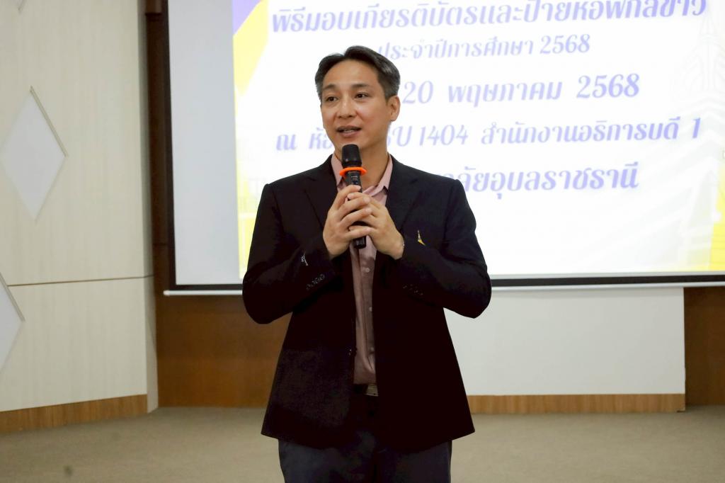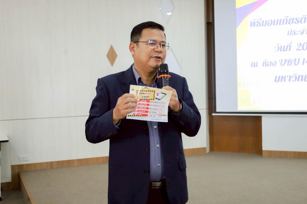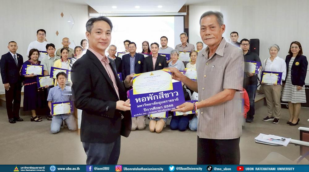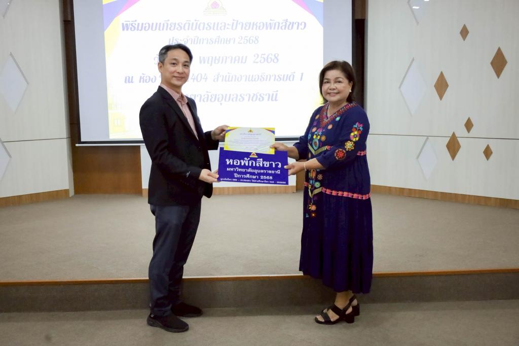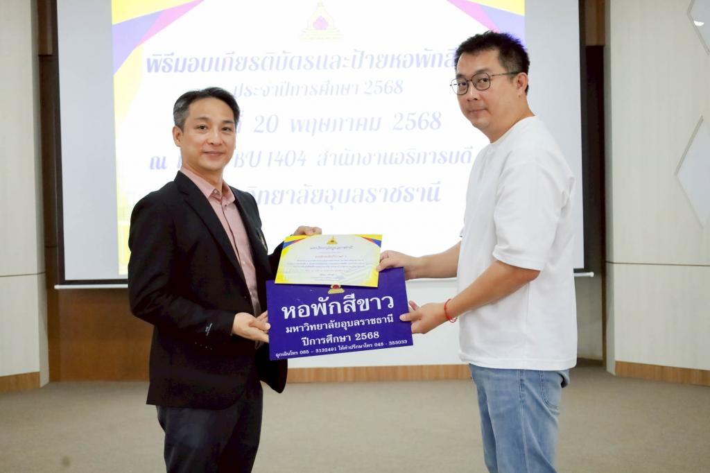 มหาวิทยาลัยอุบลราชธานี โดยงานวินัยและสวัสดิภาพนักศึกษา สำนักงานพัฒนานักศึกษา จัดพิธีมอบเกียรติบัตรและป้ายหอพักสีขาว (เครือข่ายหอพักปลอดภัย ไร้อบายมุขและยาเสพติด) ประจำปีการศึกษา 2568 ให้แก่ หอพักเอกชนโดยรอบมหาวิทยาลัยที่เข้าร่วม จำนวน 46 แห่ง ที่ร่วมโครงการ โดยมี ผู้ช่วยศาสตราจารย์ ดร.ปรีชา บญจูง รองอธิการบดีฝ่ายพัฒนานักศึกษาและศิษย์เก่าสัมพันธ์ เป็นประธานคณะกรรมการดำเนินงานโครงการฯ ตรวจประเมิน ตามข้อกำหนดมาตรฐานของมหาวิทยาลัย รับเกียรติจาก ผู้ช่วยศาสตราจารย์ ดร.เกรียงศักดิ์ แก้วกุลชัย รองอธิการบดีฝ่ายบริหาร เป็นประธานมอบ ณ ห้องประชุม ชั้น 4 อาคารสำนักงานอธิการบดี 1 ในเมื่อวันที่ 20 พฤษภาคม 2568 ที่ผ่านมา