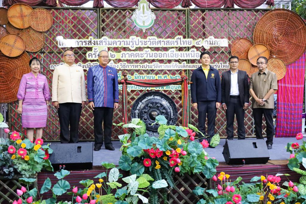 สำนักงานราชบัณฑิตยสภา ร่วมกับ มหาวิทยาลัยอุบลราชธานี จัดโครงการส่งเสริมความรู้ประวัติศาสตร์ไทย 4 ภูมิภาค ประจำปีงบประมาณ 2568 เรื่องวิธีการทางประวัติศาสตร์กับเด็กและเยาวชนรุ่นใหม่ ครั้งที่ 2 ภาคตะวันออกเฉียงเหนือ โดยมี นายชูศักดิ์ ศิรินิล รัฐมนตรีประจำสำนักนายกรัฐมนตรี ประธานกล่าวเปิดโครงการ โอกาสนี้ รองศาสตราจารย์ ดร.ชุตินันท์ ประสิทธิ์ภูริปรีชา อธิการบดี มหาวิทยาลัยอุบลราชธานี พร้อมด้วย ว่าที่พันตรี อดิศักดิ์ น้อยสุวรรณ ผู้ว่าราชการจังหวัดอุบลราชธานี กล่าวต้อนรับ ซึ่งมีครูโรงเรียนในพื้นที่ภาคตะวันออกเฉียงเหนือเข้าร่วมโครงการ ณ วัดพระธาตุหนองบัว จังหวัดอุบลราชธานี เมื่อวันที่ 26 มิถุนายน 2568 ที่ผ่านมา