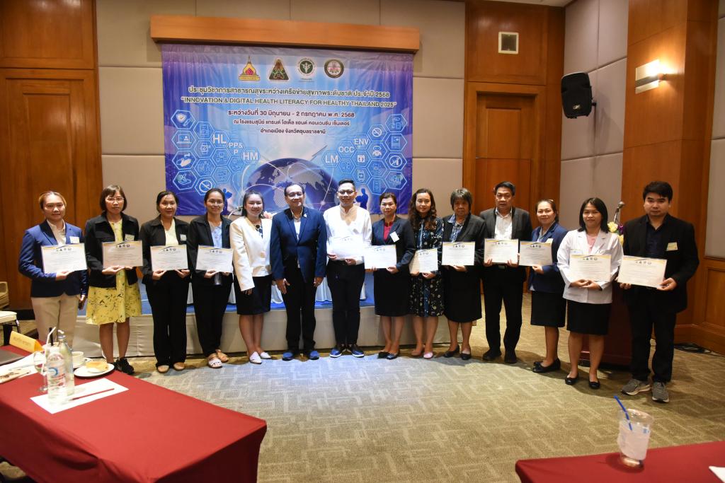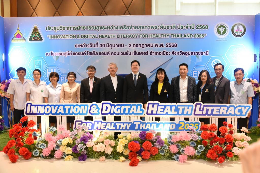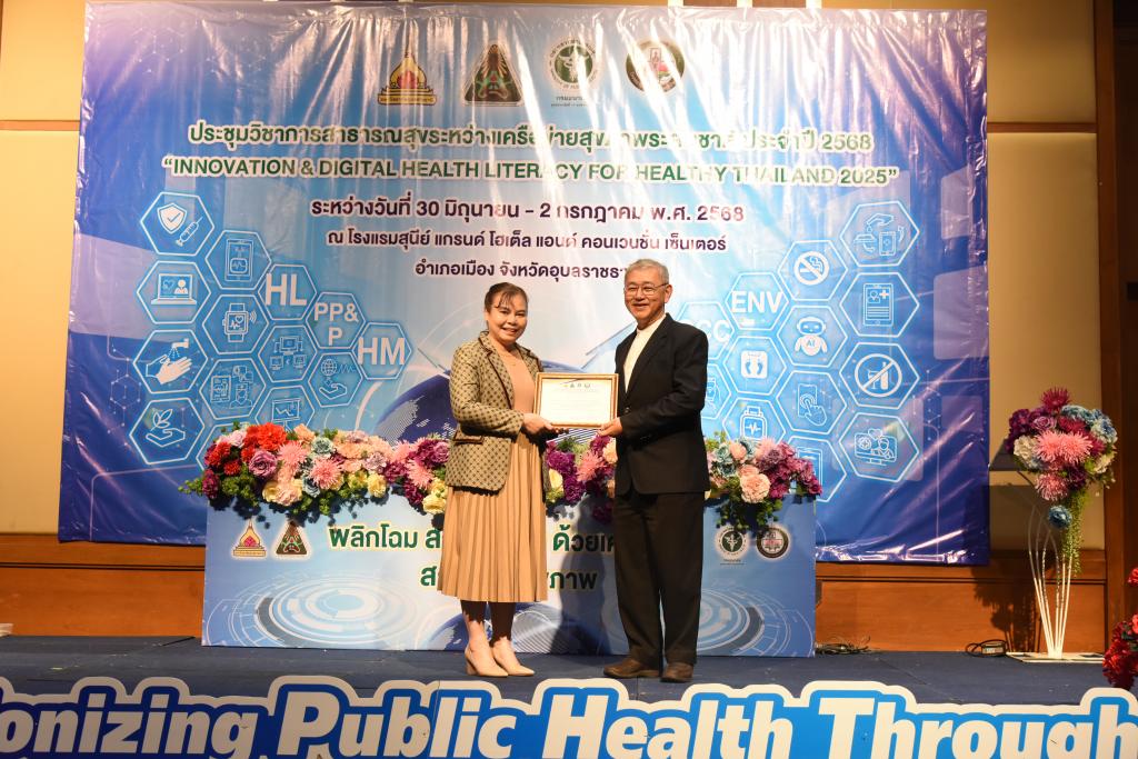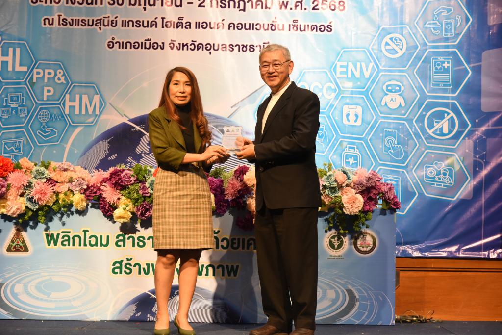เครือข่ายด้านสุขภาพเขตสุขภาพที่ 10 โดย ศูนย์อนามัยที่ 10 อุบลราชธานี ร่วมกับ วิทยาลัยแพทยศาสตร์และการสาธารณสุข มหาวิทยาลัยอุบลราชธานี และโรงพยาบาลสรรพสิทธิประสงค์ จัดการประชุมวิชาการสาธารณสุขระหว่างเครือข่ายสุขภาพระดับชาติ ประจำปี 2568 "Innovation & Digital Health Literacy for Healthy Thailand 2025"Health Literacy for Healthy Thailand" รับเกียรติจาก รองศาสตราจารย์ ดร.ชุตินันท์ ประสิทธิ์ภูริปรีชา อธิการบดี มหาวิทยาลัยอุบลราชธานี กล่าวต้อนรับ โดยมี ดร.นายแพทย์ปองพล วรปาณิรองอธิบดีกรมอนามัย เป็นประธานพิธีเปิด และ นายแพทย์สุทัศน์ ไชยยศ ผู้อำนวยการศูนย์อนามัยที่ 10 อุบลราชธานี กล่าวรายงาน ซึ่งมีการบรรยาพิเศษ การเสวนาและอภิปรายวิชาการ กิจกรรม Share & Learn การเสนอผลงานประเภท Oral Presentation จำนวน 25เรื่อง ประเภท Poster Presentation จำนวน 27 เรื่อง ได้รับความสนใจจากเครือข่ายด้านสุขภาพทั่วประเทศ จำนวน 300 คน เข้าร่วมงาน และ ศาสตราจารย์ นายแพทย์สงวนสิน รัตนเลิศ คณบดีวิทยาลัยแพทยศาสตร์และการสาธารณสุข มหาวิทยาลัยอุบลราชธานี มอบโล่รางวัลและใบประกาศ ณ โรงแรมสุนีย์ แกรนด์ จังหวัดอุบลราชธานี เมื่อวันที่ 30มิถุนายน - 2กรกฎาคม 2568 ที่ผ่านมา
