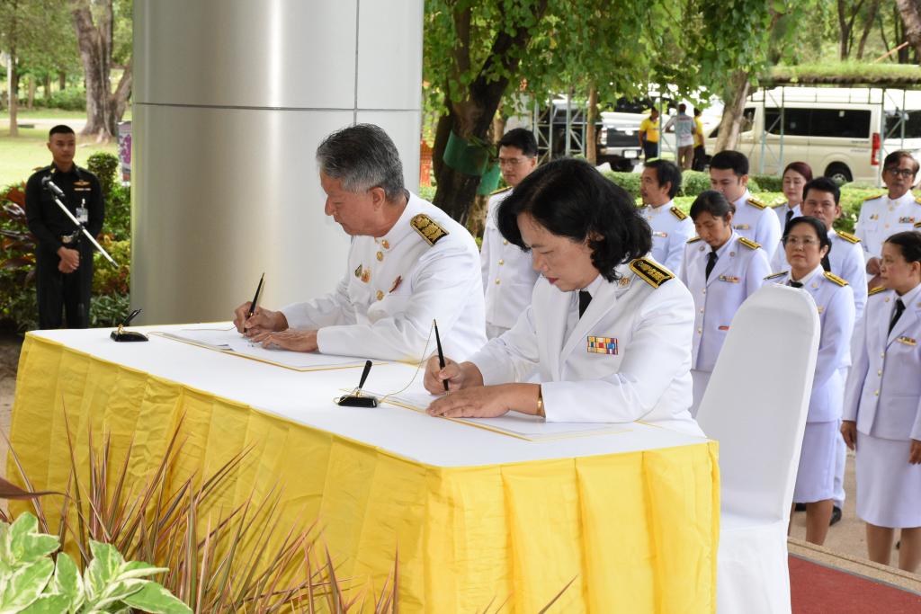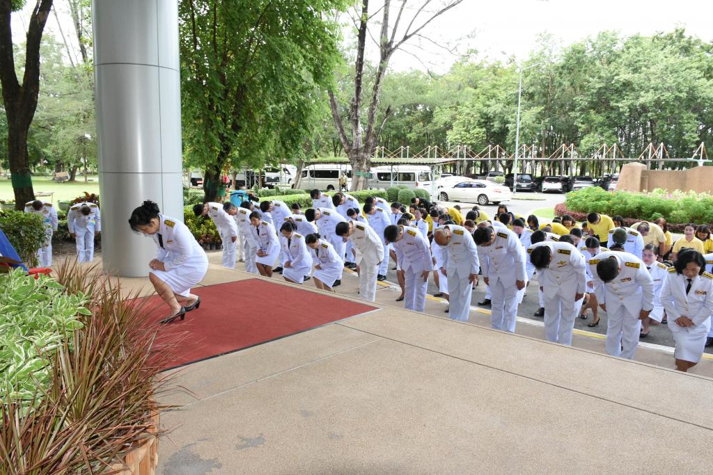 จากนั้น รองศาสตราจารย์ ดร.ชุตินันท์ ประสิทธิ์ภูริปรีชา อธิการบดีมหาวิทยาลัยอุบลราชธานี เป็นผู้นำคณะผู้บริหาร อาจารย์ และบุคลากรมหาวิทยาลัยอุบลราชธานี กล่าวคำถวายสัตย์ปฏิญาณ เพื่อเป็นข้าราชการที่ดีและพลังของแผ่นดิน สนองพระมหากรุณาธิคุณ โดยพร้อมเพรียงกัน ความว่า... “ข้าพระพุทธเจ้า ขอพระราชทานพระบรมราชานุญาต นําบรรดาข้าราชการ พนักงาน และบุคลากร กล่าวถวายสัตย์ปฏิญาณ เพื่อเป็นข้าราชการที่ดีและพลังของแผ่นดิน สนองพระมหากรุณาธิคุณ ดังต่อไปนี้ ข้าพระพุทธเจ้า.............ขอถวายสัตย์ปฏิญาณว่า จะประพฤติปฏิบัติตนเป็นข้าราชการที่ดี และพลังของแผ่นดิน มีความซื่อสัตย์สุจริต เจริญรอยตามเบื้องพระยุคลบาท มุ่งมั่นแน่วแน่แก้ไขปัญหาของประเทศชาติและประชาชน สร้างสรรค์คุณประโยชน์แก่แผ่นดิน และดำเนินชีวิตโดยยึดมั่นในหลักธรรมคำสอนแห่งศาสนา ตามแนวทางในพระบรมราโชวาทตลอดไป” ด้วยเกล้าด้วยกระหม่อม ขอเดชะ
