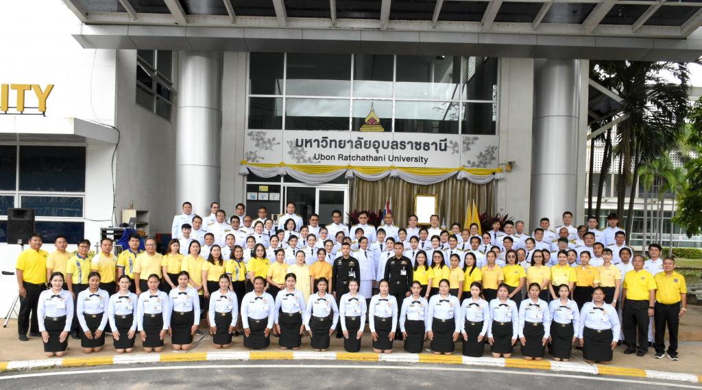 มหาวิทยาลัยอุบลราชธานี จัดพิธีถวายสัตย์ปฏิญาณเพื่อเป็นข้าราชการที่ดีและพลังของแผ่นดิน เนื่องในโอกาสวันเฉลิมพระชนมพรรษา 28 กรกฎาคม 2568 และลงนามถวายพระพรชัยโดยมี รองศาสตราจารย์ ดร.ชุตินันท์ ประสิทธิ์ภูริปรีชา อธิการบดีมหาวิทยาลัยอุบลราชธานี เป็นประธาน นำคณะผู้บริหาร ข้าราชการ พนักงาน และนักศึกษามหาวิทยาลัยอุบลราชธานี ถวายความเคารพ เปิดกรวยดอกไม้ธูปเทียนแพ และถวายราชสักการะเบื้องหน้าพระบรมฉายาลักษณ์พระบาทสมเด็จพระเจ้าอยู่หัว รัชกาลที่ 10 จากนั้น อ่านคำกราบบังคมทูลถวายพระพรชัยมงคล ความว่า... “ขอเดชะ ฝ่าละอองธุลีพระบาทปกเกล้าปกกระหม่อม ข้าพระพุทธเจ้า รองศาสตราจารย์ชุตินันท์ ประสิทธิ์ภูริปรีชา ในนามของข้าราชการ พนักงาน และบุคลากร ในสังกัดมหาวิทยาลัยอุบลราชธานี ที่มาร่วมชุมนุมพร้อมเพรียงกัน อยู่ ณ ที่นี้ ล้วนมีความปลาบปลื้มปีติเป็นอย่างยิ่ง ที่ได้มาร่วมกันแสดงความจงรักภักดี พร้อมทั้งถวายสัตย์ปฏิญาณเพื่อเป็นข้าราชการที่ดีและเป็นพลังของแผ่นดิน เนื่องในโอกาสวันเฉลิมพระชนมพรรษาพระบาทสมเด็จพระเจ้าอยู่หัว 28 กรกฎาคม 2568 นี้