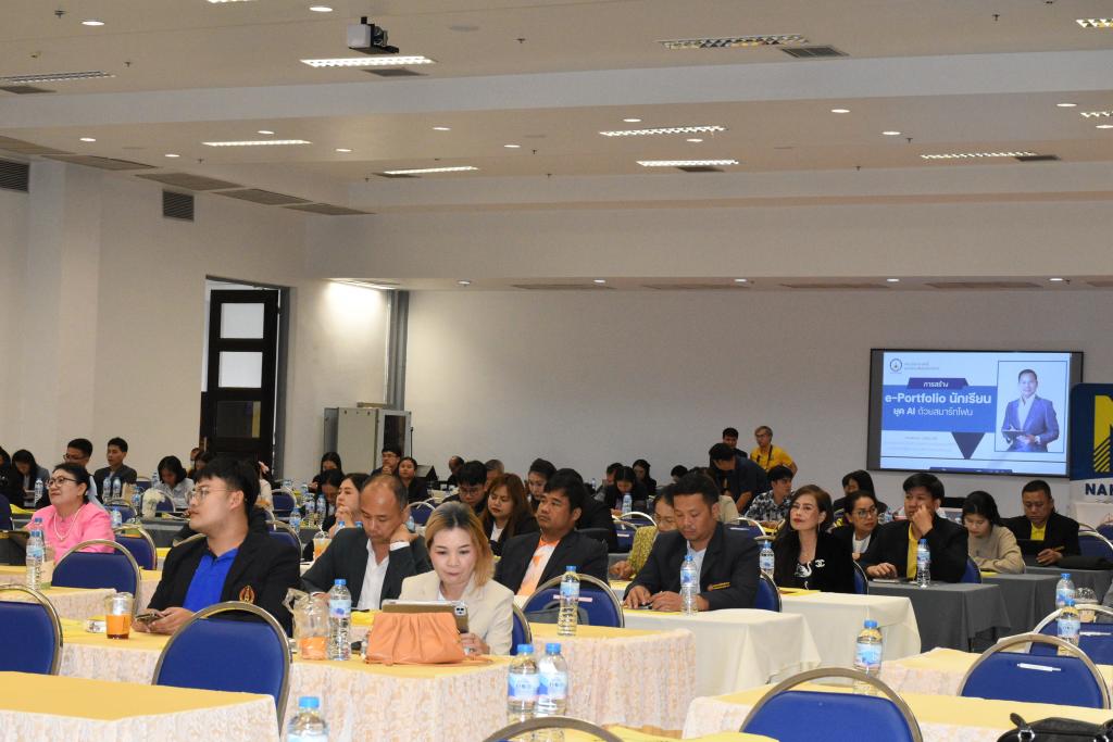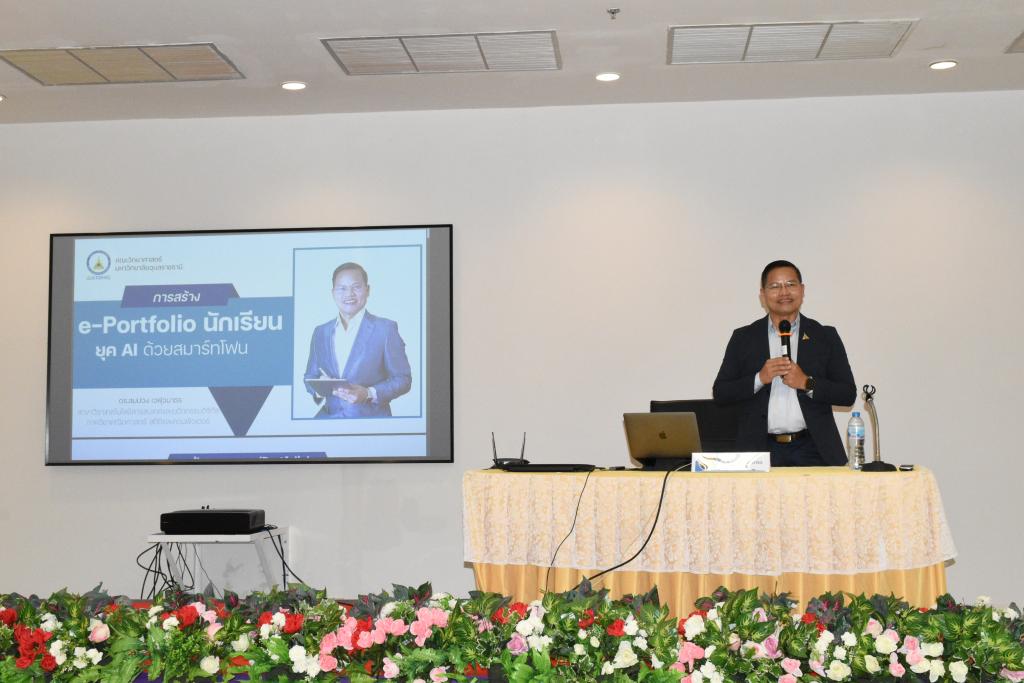 ดร.สมปอง เวฬุวนาธร อาจารย์ประจำสาขาวิชาเทคโนโลยีสารสนเทศและนวัตกรรมดิจิทัล คณะวิทยาศาสตร์มหาวิทยาลัยอุบลราชธานี กล่าวว่า คณะวิทยาศาสตร์ มหาวิทยาลัยอุบลราชธานี มีความยินดีเป็นอย่างยิ่งที่กองบริหารวิชาการ มหาวิทยาลัยนครพนมที่ให้เกียรติเชิญเป็นวิทยากรอบรมเชิงปฏิบัติการครั้งนี้ และ ได้เล็งเห็นความสำคัญของการสร้างความร่วมมือกับโรงเรียนมัธยมศึกษา โดยเฉพาะอย่างยิ่งบทบาทของคุณครูแนะแนวที่มีส่วนสำคัญในการแนะนำเส้นทางการศึกษาที่เหมาะสมกับศักยภาพของนักเรียนและกำหนดจัดโครงการ “การพัฒนาเครือข่ายทางการศึกษาระหว่างมหาวิทยาลัยนครพนมและครูแนะแนว ภาคตะวันออกเฉียงเหนือ” โดยเฉพาะในหัวข้อ “การสร้าง e-Portfolio นักเรียนยุค AI ด้วยสมาร์ทโฟน” ให้แก่ครูแนะแนวจากโรงเรียนมัธยมศึกษาในภาคตะวันออกเฉียงเหนือ คณะผู้บริหาร คณาจารย์ และเจ้าหน้าที่มหาวิทยาลัยนครพนมให้มีความรู้ความเข้าใจและรับทราบถึงความสำคัญองค์ประกอบของแฟ้มสะสมผลงาน (Portfolio) เพื่อใช้รวบรวมเอกสาร ข้อมูล ผลงาน และกิจกรรมต่าง ๆ ของนักเรียนในรูปแบบอิเล็กทรอนิกส์ (e-Portfolio) ซึ่งจะช่วยให้การจัดเก็บและนำเสนอข้อมูลสะดวก รวดเร็ว มีประสิทธิภาพ และสามารถแชร์ผ่านอินเทอร์เน็ตได้ เหมาะสมกับบริบทของนักเรียนในยุคดิจิทัล โดยการประยุกต์ใช้เทคโนโลยีคอมพิวเตอร์และการสื่อสาร เช่น สมาร์ทโฟน อินเทอร์เน็ต และแอปพลิเคชันต่าง ๆ ถือเป็นเครื่องมือสำคัญในการสร้าง e-Portfolio นอกจากนี้ ยังแนะนำการใช้เทคโนโลยีปัญญาประดิษฐ์ (AI) เข้ามาช่วยสนับสนุนการเขียนเนื้อหาและออกแบบแฟ้มสะสมผลงานให้มีความสวยงาม เป็นระบบ และสอดคล้องกับแนวทางการเขียนเชิงสร้างสรรค์ โดยการเปิดโอกาสให้นักเรียนได้รู้จักการวางแผนและเป้าหมายในอนาคตผ่านแฟ้มสะสมผลงาน เพื่อใช้เป็นเครื่องมือสำคัญในการสมัครเข้าศึกษาต่อในระดับอุดมศึกษาโดยเฉพาะในรอบ TCAS ซึ่งเป็นรอบที่ให้ความสำคัญกับศักยภาพและผลงานของนักเรียนในแต่ละด้าน ทั้งนี้ หวังว่าผู้เข้ารับการอบรมทุกท่านจะสามารถนำความรู้ที่ได้รับไปปรับและประยุกต์ใช้ในการผลิตสื่อการเรียนการสอนและการปฏิบัติงานต่อไป