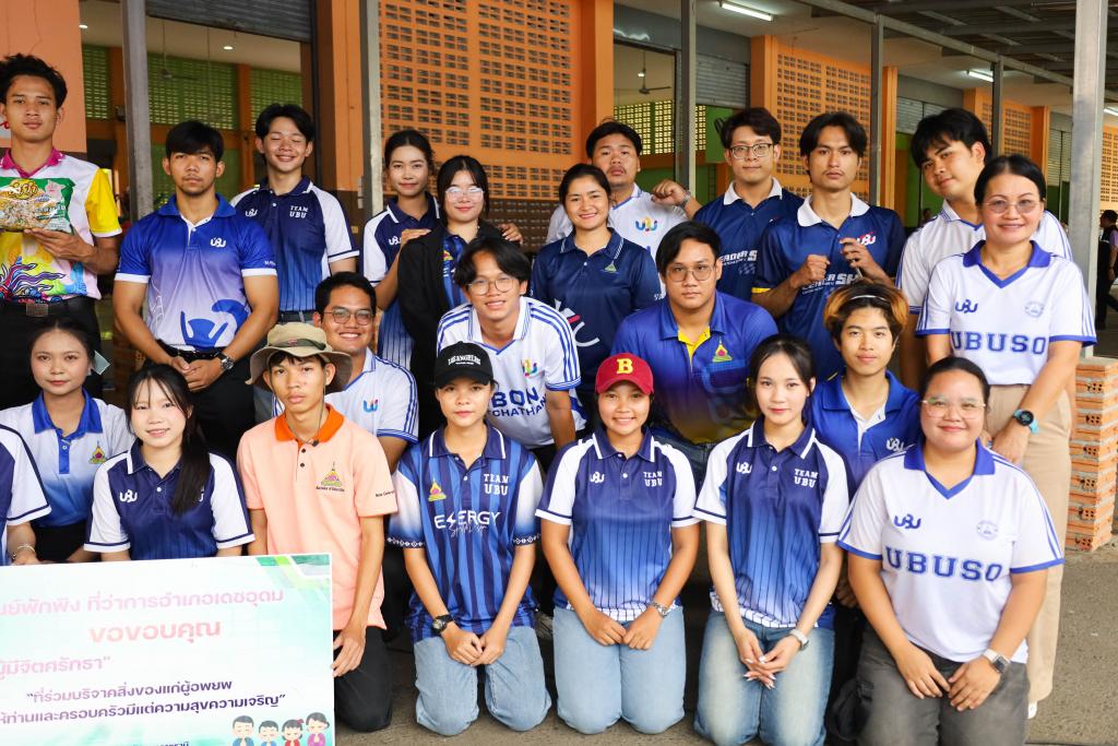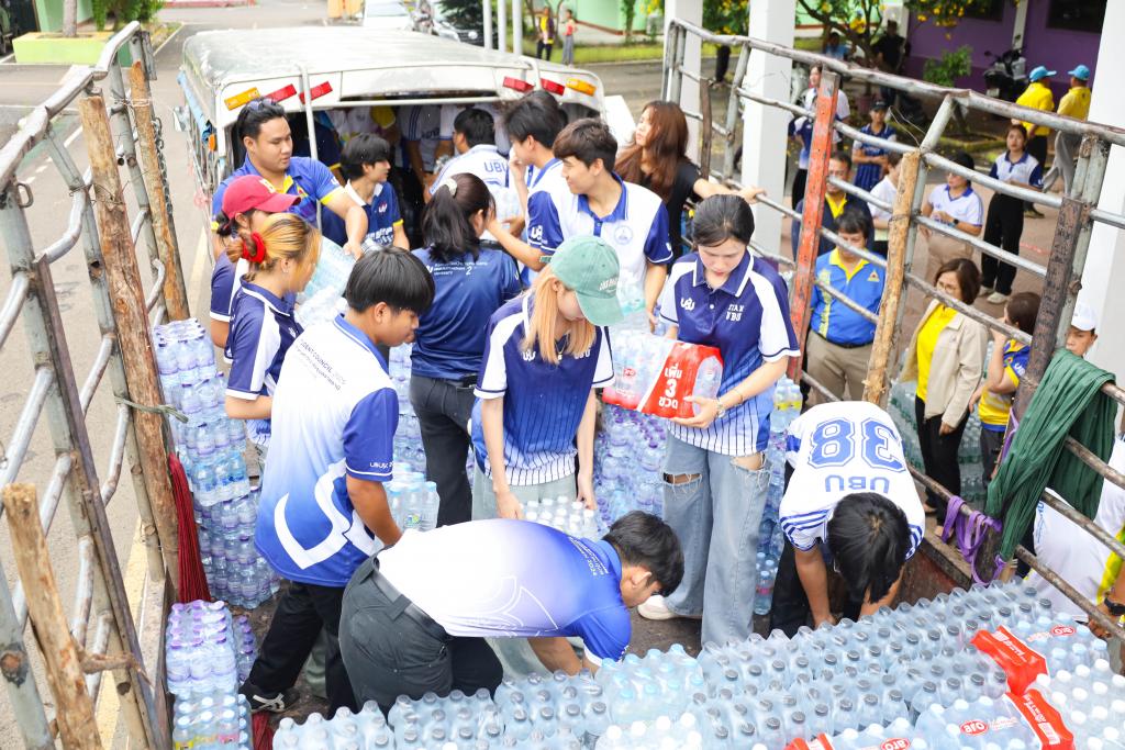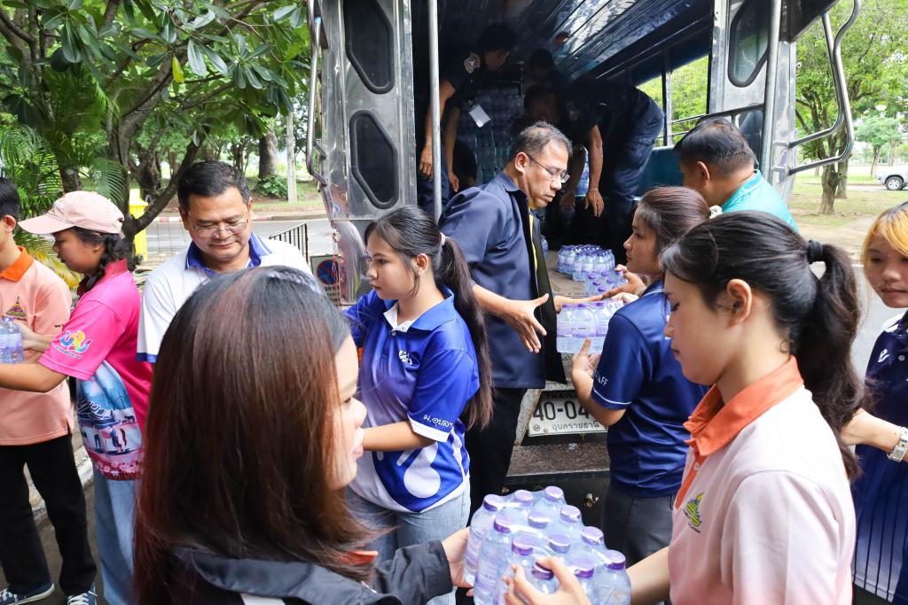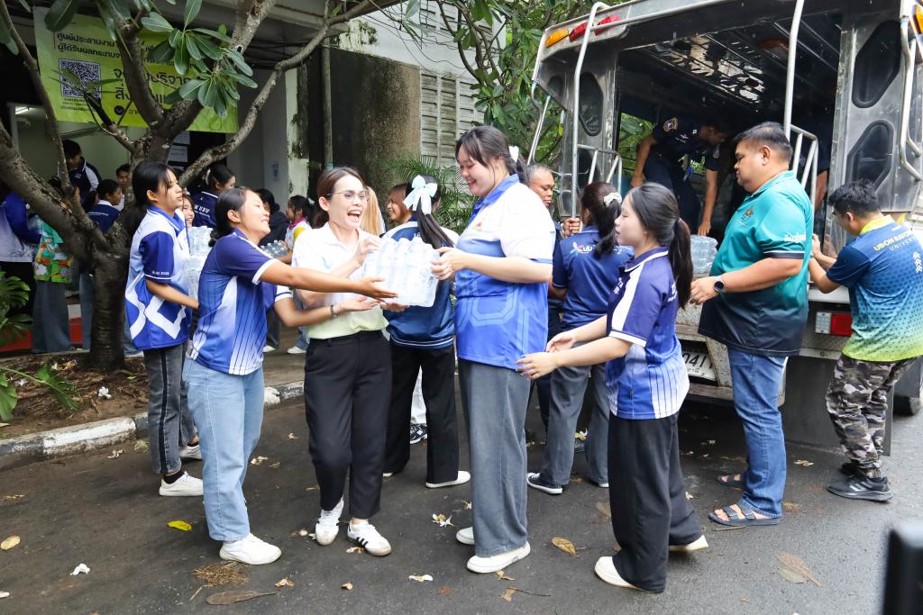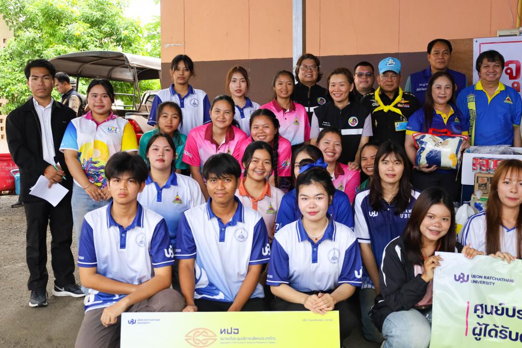 ศูนย์ประสานงาน ม.อุบลฯ เพื่อส่งต่อความช่วยเหลือผู้ได้รับผลกระทบจากเหตุการณ์ชายแดนไทย-กัมพูชา (UBU Coordination Center : UBU COC) โดย ผู้ช่วยศาสตราจารย์ ดร.ปรีชา บุญจูง รองอธิการบดีฝ่ายพัฒนานักศึกษาและศิษย์เก่าสัมพันธ์ พร้อมด้วย ศาสตราจารย์ ดร.ทวนทอง จุฑาเกตุ รองอธิการบดีฝ่ายวิจัยและนวัตกรรม ดร.อนุสรณ์ บรรเทิง ผู้ช่วยอธิการบดีฝ่ายสารสนเทศทางการศึกษาและ ผู้ช่วยศาสตราจารย์เกษร ศาสตราธรรม ผู้ช่วยอธิการบดีฝ่ายวิชาการ นำบุคลากร และนักศึกษา จำนวน 60 คน ลงพื้นที่ส่งมอบสิ่งของบริจาคเครื่องอุปโภค บริโภค เพื่อนำส่งต่อให้กับศูนย์อพยพในพื้นที่ในจุดต่างๆ โดยมี ว่าที่ร้อยตรีกรกฎ ประเสริฐวงษ์ รองผู้ว่าราชการจังหวัดอุบลราชธานี ร่วมรับมอบ ณ ศูนย์รับบริจาคอำเภอเดชอุดม ที่ว่าการอำเภอเดชอุดม จ.อุบลราชธานี