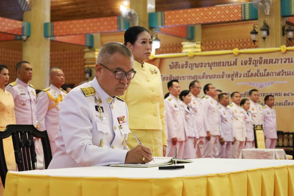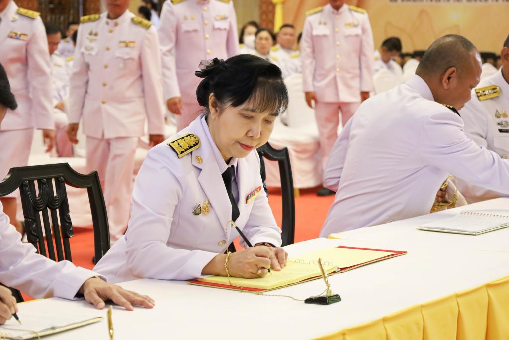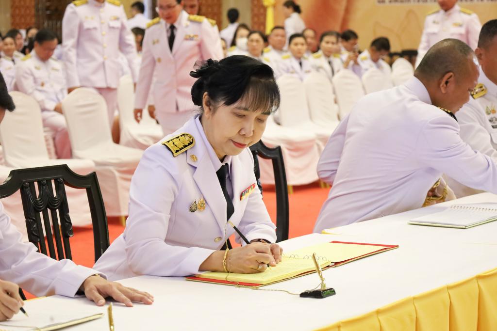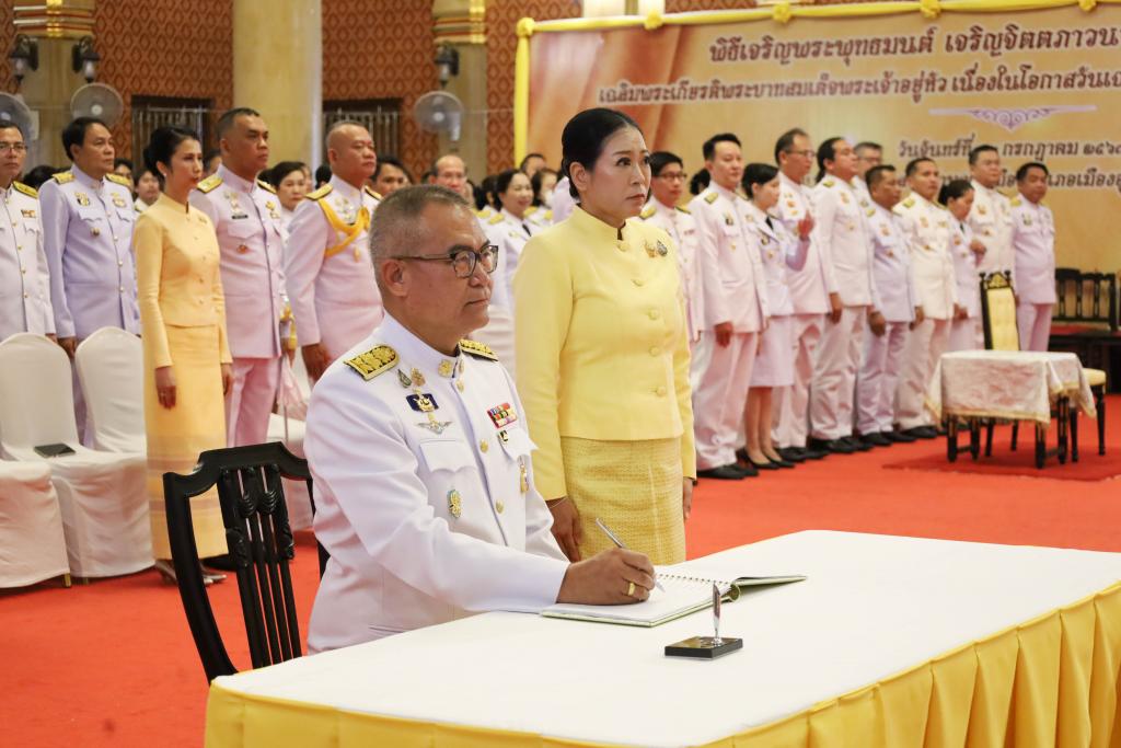 พร้อมกันนี้ ว่าที่พันตรี อดิศักดิ์ น้อยสุวรรณ ผู้ว่าราชการจังหวัดอุบลราชธานี นำหัวหน้าส่วนราชการ กล่าวถวายสัตย์ปฏิญาณเพื่อเป็นข้าราชการที่ดีและพลังของแผ่นดิน และพิธีลงนามถวายพระพรชัยมงคล ณ เบื้องหน้าพระฉายาลักษณ์ พระบาทสมเด็จพระเจ้าอยู่หัว ให้ทรงพระเกษมสำราญ พระชนมายุยิ่งยืนนาน พระเกียรติคุณแผ่ไพศาลไปทั่วทิศานุทิศ สถิตเป็นมิ่งขวัญร่มเกล้าของปวงชนชาวไทย