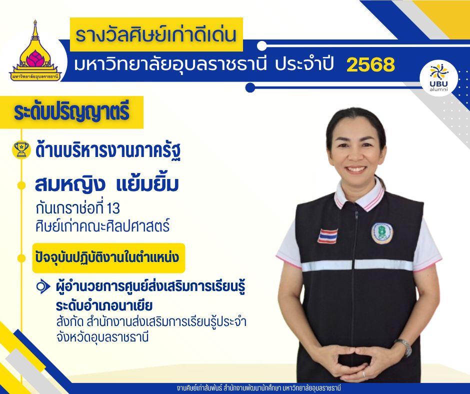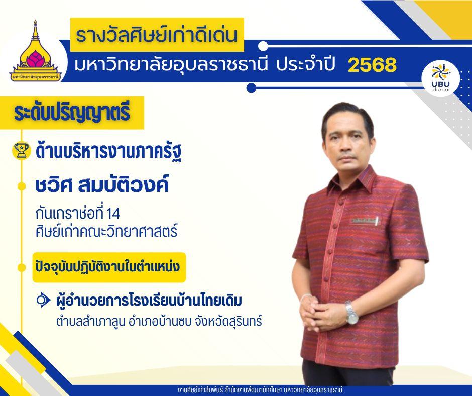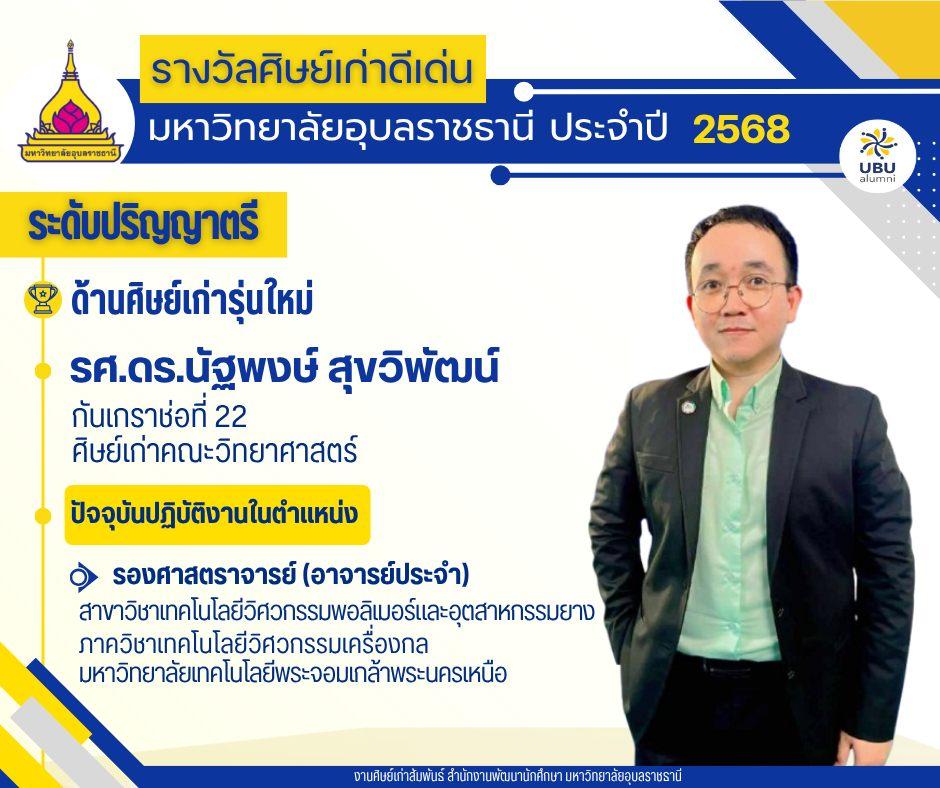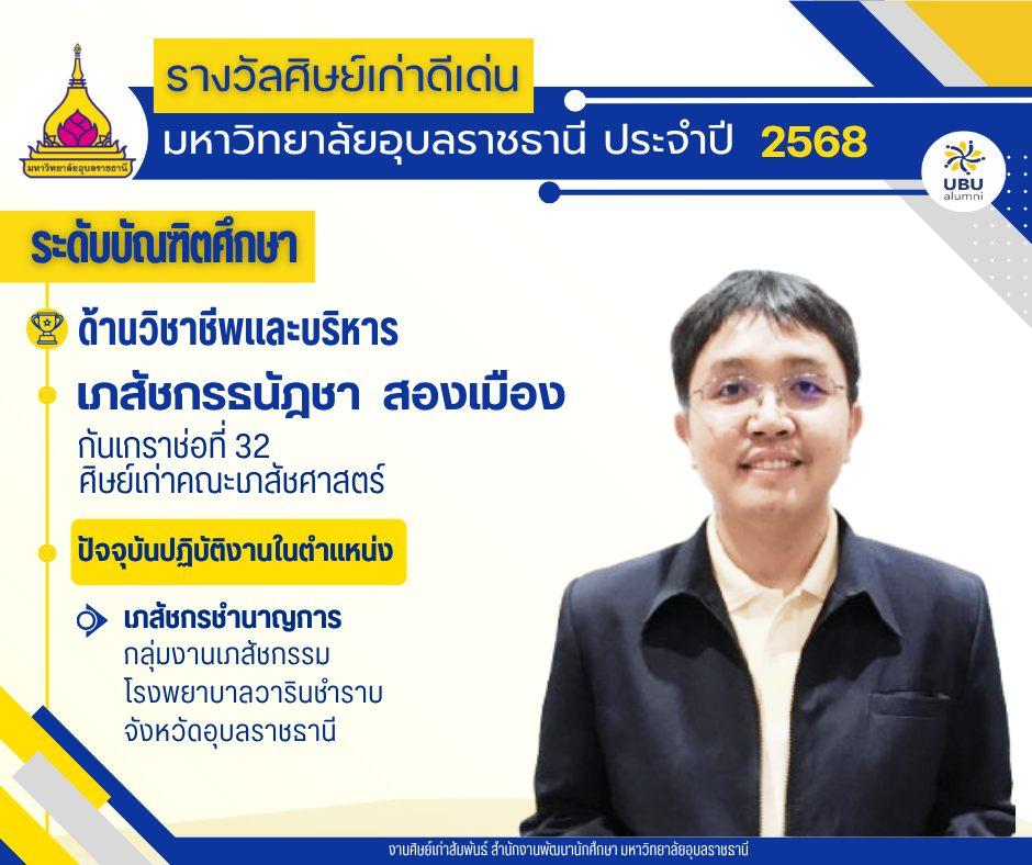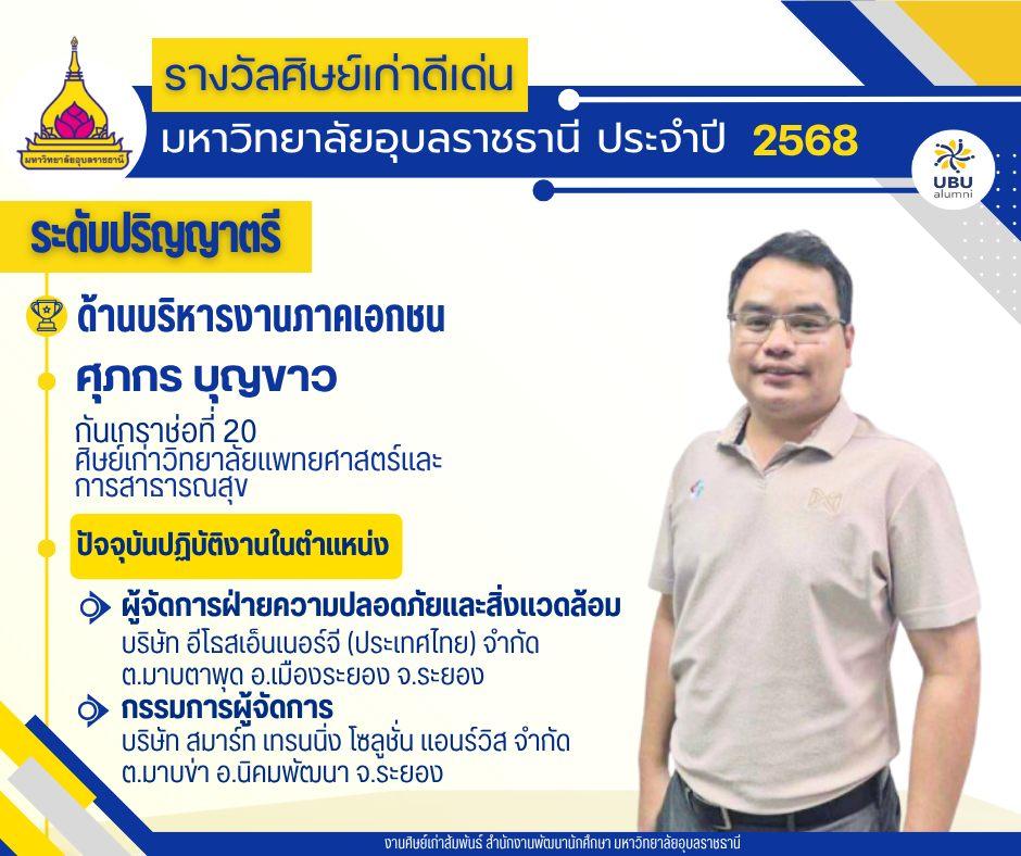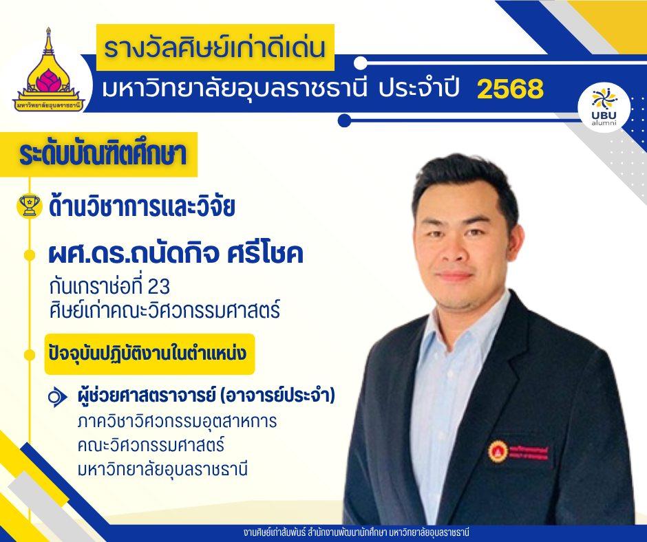 มหาวิทยาลัยอุบลราชธานี ขอแสดงความยินดีกับศิษย์เก่าดีเด่น มหาวิทยาลัยอุบลราชธานี ประจำปี 2568แบ่งตามระดับ และด้านต่างๆ ดังนี้