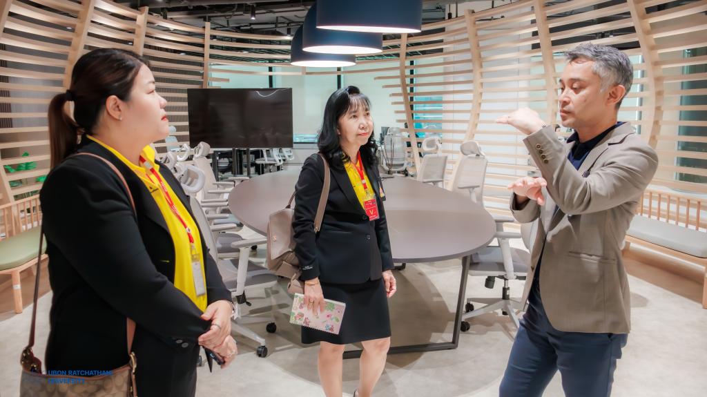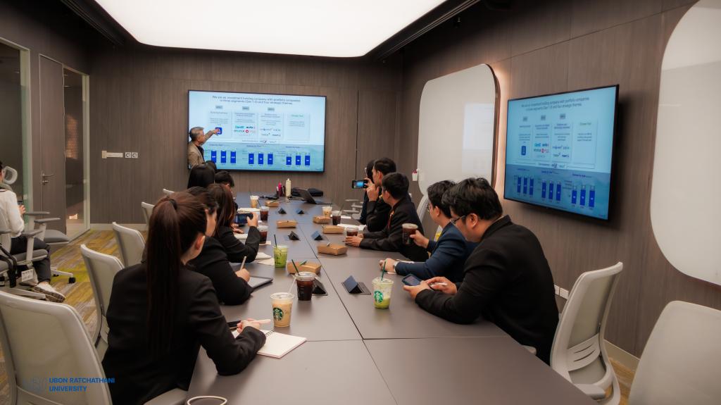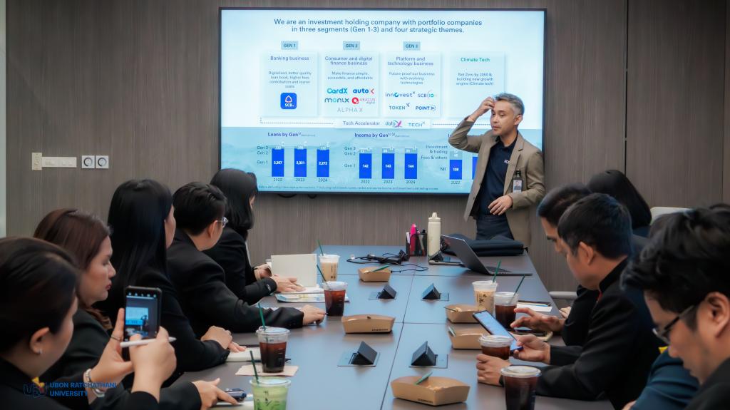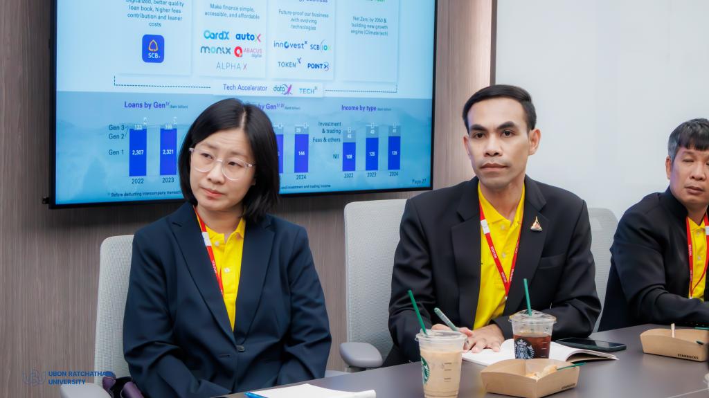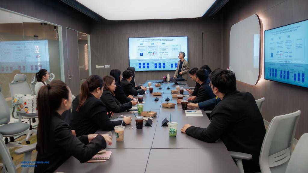 โอกาสนี้ ผู้ช่วยศาสตราจารย์ ดร.ปิยณัฐ สร้อยคำ ผู้ช่วยอธิการบดีฝ่ายการตลาดและสื่อสารองค์กร พร้อมคณะกรรมการการตลาด ได้นำเสนอและร่วมแลกเปลี่ยนแนวทางการสร้างรายได้จากองค์ความรู้ นวัตกรรม และบริการของมหาวิทยาลัยอุบลราชธานี พร้อมขอรับคำแนะนำในการวางแผนการตลาดและวางกลยุทธ์ในโลกธุรกิจที่เปลี่ยนแปลงอย่างรวดเร็ว อนี่งการเยือนบริษัท เอสซีบี เอกซ์ จำกัด (มหาชน) – SCBX ยังเป็นการแสวงหารูปแบบองค์กรและแนวทางการบริหารจัดการที่มีความสามารถในการแข่งขันและตอบสนองต่อการเปลี่ยนแปลงของโลกเศรษฐกิจในอนาคตอีกด้วย