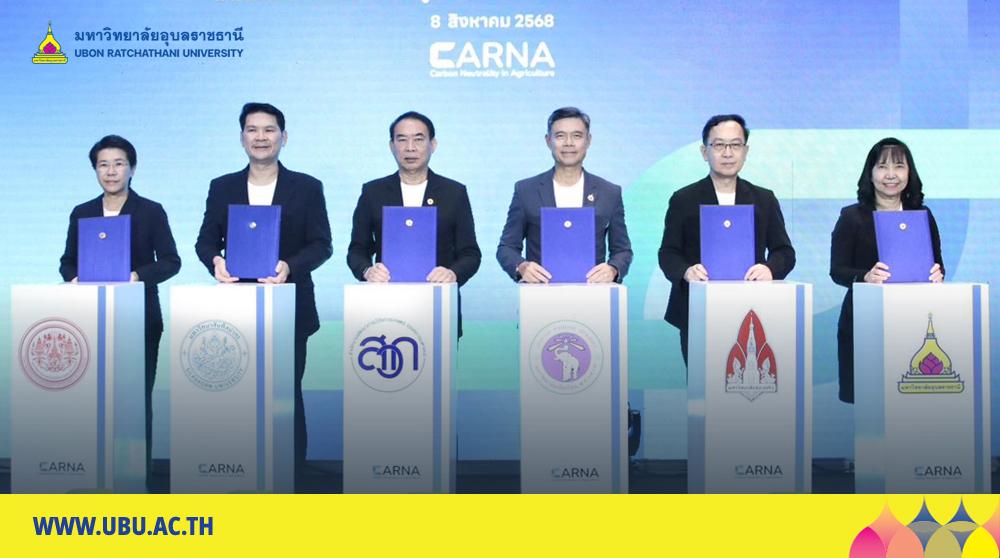 มหาวิทยาลัยอุบลราชธานี โดย รองศาสตราจารย์ ดร.ชุตินันท์ ประสิทธิ์ภูริปรีชา อธิการบดี ร่วมลงนามบันทึกความเข้าใจ (MOU) การวิจัยและพัฒนาแนวทางสู่ความเป็นกลางทางคาร์บอนในภาคการเกษตร ร่วมกับ สำนักงานพัฒนาการวิจัยการเกษตร (องค์การมหาชน) ARDA โดยมี ดร.วิชาญ อิงศรีสว่าง ผู้อำนวยการ ARDA และผู้บริหารมหาวิทยาลัยชั้นนำ ได้แก่ มหาวิทยาลัยเชียงใหม่ มหาวิทยาลัยขอนแก่น มหาวิทยาลัยเทคโนโลยีพระจอมเกล้าธนบุรี มหาวิทยาลัยศิลปากร ร่วมลงนาม โดยมีเป้าหมาย วิจัยและพัฒนาเทคโนโลยีและแนวปฏิบัติ เพื่อลดการปล่อยก๊าซเรือนกระจกในกระบวนการผลิตสินค้าเกษตร เพิ่มรายได้แก่เกษตรกรและผู้ประกอบการ และสร้างความยั่งยืนด้านสิ่งแวดล้อม โอกาสนี้ ศาสตราจารย์ ดร.ทวนทอง จุฑาเกตุ รองอธิการบดีฝ่ายวิจัยและนวัตกรรม ร่วมเป็นสักขีพยานในการลงนามครั้งนี้ ณ ห้องประชุมรัตนโกสินทร์ โรงแรมเดอะ สุโกศล เมื่อวันที่ 8 สิงหาคม 2568 ที่ผ่านมา