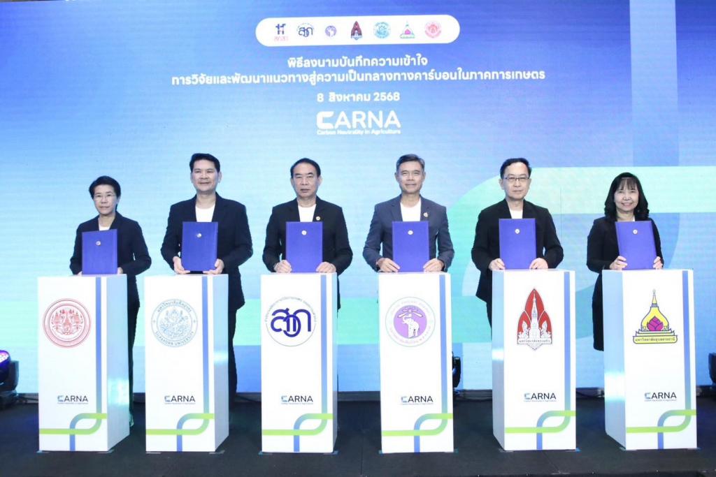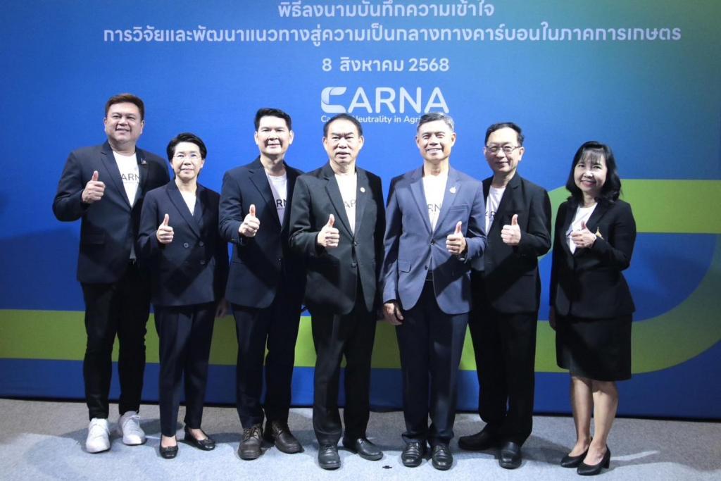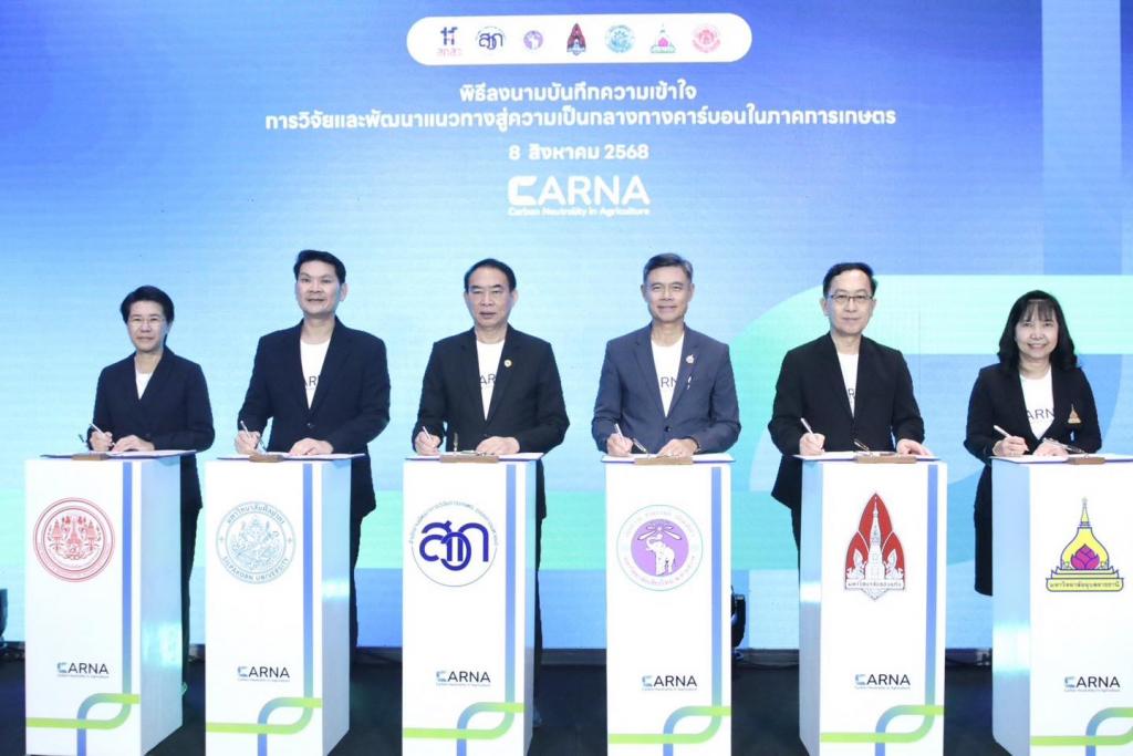 การลงนามครั้งนี้ เพื่อร่วมกันวิจัยและพัฒนาแนวทางสู่ความเป็นกลางทางคาร์บอน (Carbon Neutrality) ในภาคเกษตร ผ่านการพัฒนาเทคโนโลยีและแนวปฏิบัติที่ช่วยลดการปล่อยก๊าซเรือนกระจกในกระบวนการผลิตสินค้าเกษตร เพื่อเพิ่มรายได้ให้เกษตรกรและผู้ประกอบการ พร้อมสร้างความยั่งยืนด้านสิ่งแวดล้อม ซึ่งคาดว่าจะผลักดันการดำเนินงานให้เกิดผลลัพธ์รูปธรรม อาทิ การจัดทำฐานข้อมูลคาร์บอนฟุตพรินต์สินค้าเกษตร 8 ชนิด ครอบคลุมการวิจัยและพัฒนา พืชและสัตว์เศรษฐกิจสำคัญ ของไทย ได้แก่ ข้าว, ข้าวโพดเลี้ยงสัตว์, สับปะรด, อ้อย, ปาล์มน้ำมัน, ยางพารา, โคนม-โคเนื้อ และปลานิลโดยมุ่งพัฒนาเทคโนโลยีและนวัตกรรมการผลิตที่ลดการปล่อยก๊าซเรือนกระจก เพิ่มประสิทธิภาพการใช้ทรัพยากร และยกระดับคุณภาพผลผลิตให้ได้มาตรฐานสากล สะท้อนบทบาทของ ARDA ในการขับเคลื่อน งานวิจัยเชิงนโยบายสู่การใช้จริง เพื่อบรรลุเป้าหมาย “เกษตรคาร์บอนต่ำ” ภายในปี 2593 ตามนโยบายกระทรวงเกษตรและสหกรณ์