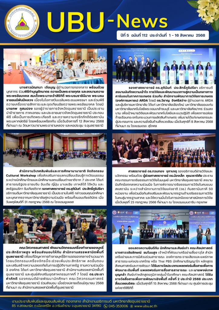 UBU NEWS ปีที่ 5 ฉบับที่ 112 ประจำวันที่ 1 - 16 สิงหาคม 2568