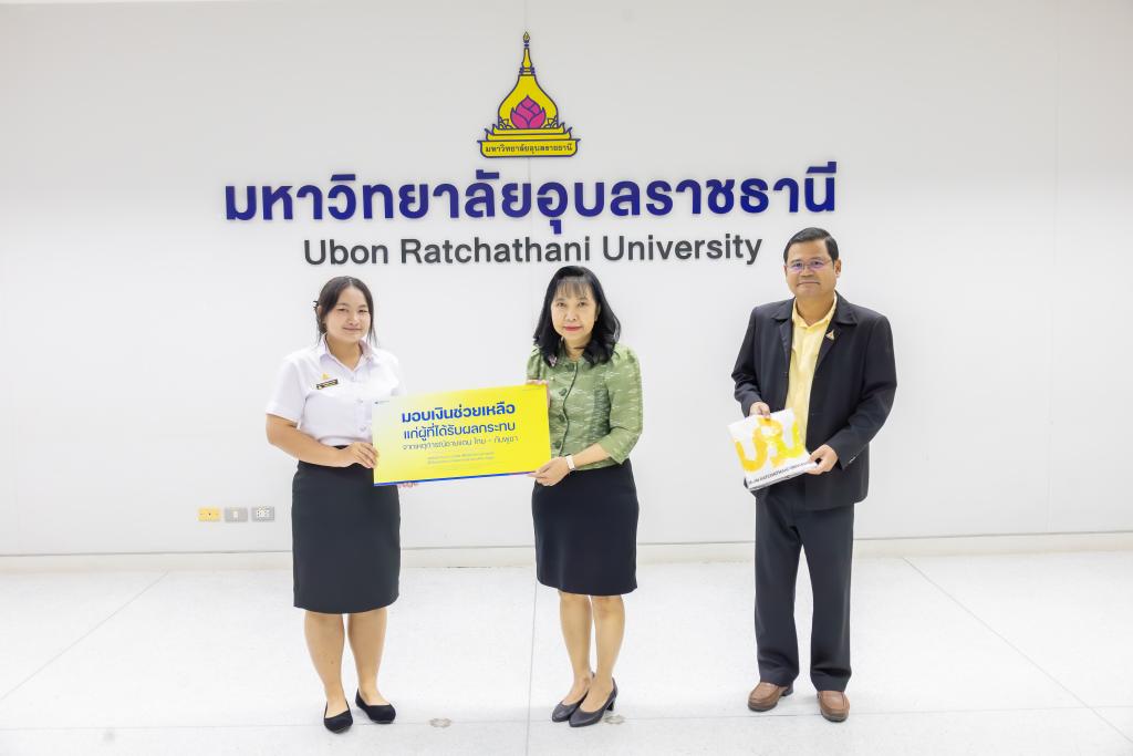 ผู้ช่วยศาสตราจารย์ ดร.ปรีชา บุญจูง รองอธิการบดีฝ่ายพัฒนานักศึกษาและศิษย์เก่าสัมพันธ์ กล่าวว่า ตามที่มหาวิทยาลัยอุบลราชธานี ได้จัดตั้งศูนย์ประสานงาน ม.อุบลฯ เพื่อส่งต่อความช่วยเหลือผู้ได้รับผลกระทบจากเหตุการณ์ชายแดนไทย-กัมพูชา (UBU Coordination Center : UBU COC)พร้อมเปิดรับบริจาคปัจจัย และสิ่งของ เพื่อส่งต่อความช่วยเหลือผู้ได้รับผลกระทบให้กับศูนย์อพยพในพื้นที่จังหวัดอุบลราชธานี และจังหวัดศรีสะเกษ พร้อมทั้งสำรวจให้ความช่วยเหลือ นักศึกษา บุคลากร และศิษย์เก่า ที่ได้รับผลกระทบจากสถานการณ์ดังกล่าว พร้อมพิจารณาดำเนินการมอบเงิน ช่วยเหลือนักศึกษาและศิษย์เก่า ที่ได้รับผลกระทบจำนวน 12 ราย รายละ 10,000 บาท