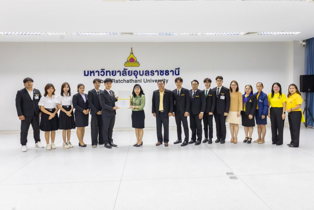 มหาวิทยาลัยอุบลราชธานี โดย สำนักงานพัฒนานักศึกษา จัดกิจกรรมมอบเงินช่วยเหลือ สำหรับนักศึกษาและศิษย์เก่า มหาวิทยาลัยอุบลราชธานี ที่ได้รับผลกระทบจากเหตุการณ์ชายแดนไทย-กัมพูชา และมอบเกียรติบัตร แก่องค์กรนักศึกษา ในการจิตอาสาช่วยเหลือศูนย์ประสานงาน ม.อุบลฯ เพื่อส่งต่อความช่วยเหลือผู้ได้รับผลกระทบจากเหตุการณ์ชายแดนไทย-กัมพูชา รับเกียรติจาก รองศาสตราจารย์ ดร.ชุตินันท์ ประสิทธิ์ภูริปรีชา อธิการบดีเป็นประธาน ซึ่งมี ผู้ช่วยศาสตราจารย์ ดร.ปรีชา บุญจูง รองอธิการบดีฝ่ายพัฒนานักศึกษาและศิษย์เก่าสัมพันธ์ นำนักศึกษาและบุคลากรเข้าร่วมกิจกรรม โดยมี นายธนชิต บำรุงผล นายธนากร ลมลาศรี รองประธานสภานักศึกษา และ นายพุทธิภัสส์ คณากรณ์ นายกองค์การนักศึกษา รายงานสรุปผลการดำเนินงานของศูนย์ประสานงาน โอกาสนี้ อธิการบดี ได้กล่าวชื่นชมตัวแทนนักศึกษาจิตอาสาในการช่วยเหลือสังคมและประเทศชาติ พร้อมกล่าวแสดงความห่วงใย และเป็นกำลังใจแก่นักศึกษาที่ได้รับผลกระทบในครั้งนี้ ณ ห้องประชุมพิบูลมังสาหาร สำนักงานอธิการบดี 2 วันที่ 25 สิงหาคม 2568