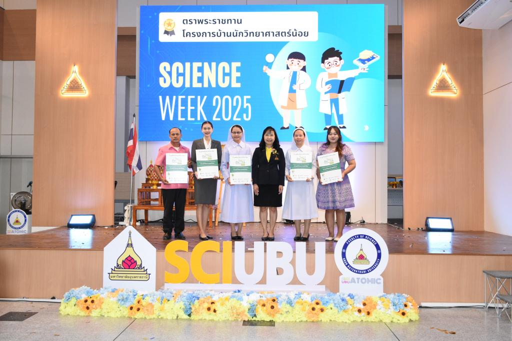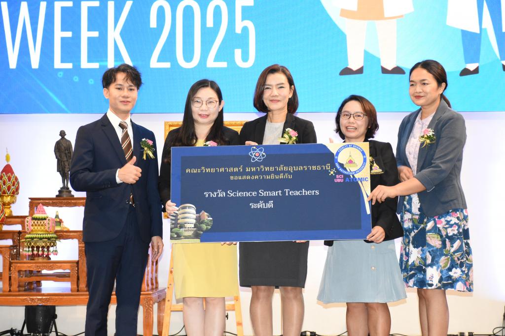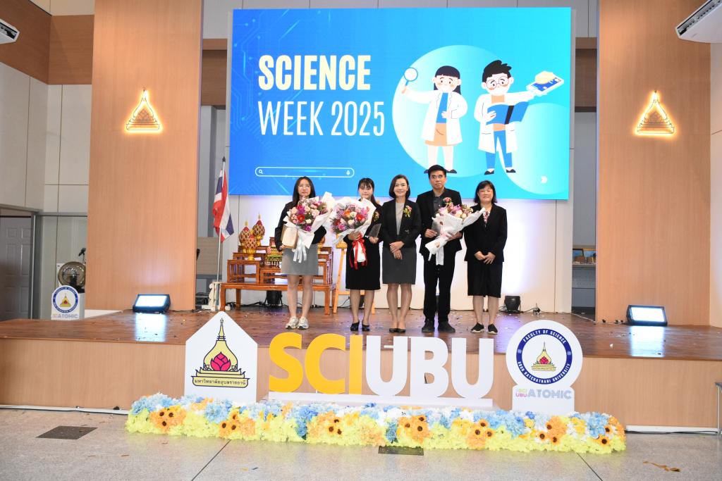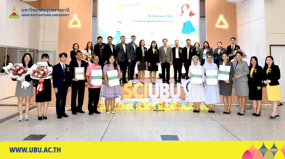 โดยการจัดงานสัปดาห์วิทยาศาสตร์แห่งชาติ ประจำปี 2568 ยังกำหนดให้มีการประกวดการแข่งขันทักษะการใช้เครื่องมือทางวิทยาศาสตร์ ระดับมัธยมศึกษาตอนปลาย การประกวด Science Show การประกวดสื่อสร้างสรรค์ ระดับมัธยมศึกษาตอนปลาย การจัดกิจกรรมและนิทรรศการภาควิชาต่าง ๆ และการจัดการแข่งขันทางวิชาการเพื่อคัดเลือกผู้แทนภาคตะวันออกเฉียงเหนือเข้าแข่งขันในระดับประเทศ โดยได้รับการสนับสนุนจากสมาคมวิทยาศาสตร์แห่งประเทศไทย 4 กิจกรรม ได้แก่ การแข่งขันตอบปัญหาทางวิทยาศาสตร์ ระดับมัธยมศึกษาตอนต้น การแข่งขั้นวาดภาพจินตนาการทางวิทยาศาสตร์ ระดับมัธยมศึกษาตอนต้นต้น การประกวดโครงงานวิทยาศาสตร์ ระดับมัธยมศึกษาตอนต้น และการแข่งขันกระบวนการแก้ปัญหาทางวิทยาศาสตร์ ระดับมัธยมศึกษาตอนต้น ซึ่งในโอกาสนี้ ยังกำหนดให้มีพิธีมอบโล่รางวัล และช่อดอกไม้แสดงความยินดีกันนักวิจัยดีเด่น ประจำปี 2568ได้แก่ ศาสตราจารย์ ดร.ศิริพร จึงสุทธิวงษ์ ได้รับรางวัลนักวิจัยที่มีผลงานตีพิมพ์ในวารสารนานาชาติดีเด่น ดร.พงศ์ธร แสงชูติ ได้รับรางวัลนักวิจัยรุ่นใหม่ดีเด่น รองศาสตราจารย์ชัยวุฒิ วัดจัง ได้รับรางวัลนวัตกรดีเด่น และ ดร.พรวฤณ วิลามาศ ได้รับรางวัลผลงานบริการวิชาการ เพื่อการพัฒนาพื้นที่ดีเด่น จากผลงานบริการวิชาการเรื่อง “โครงการธนาคารขยะ” พิธีมอบรางวัลผลงานวิจัยดีเด่นระดับบัณฑิตศึกษา พิธีมอบตราพระราชทานฯ โครงการบ้านนักวิทยาศาสตร์น้อย เครือข่ายท้องถิ่นมหาวิทยาลัยอุบลราชธานี ได้แก่ โรงเรียนอาเวมารีอา และโรงเรียนบ้านโนนหนองบัว รับตราพระพระราชทานโครงการบ้านนักวิทยาศาสตร์น้อยประเทศไทย รอบที่ 3 โรงเรียนเซนต์ราฟาแอลอุบลราชธานี โรงเรียนอัสสัมชัญอุบลราชธานี และศูนย์พัฒนาเด็กเล็กเทศบาลตำบลคำขวาง รับตราพระราชทานโครงการบ้านนักวิทยาศาสตร์น้อยประเทศไทย รอบที่ 1 พิธีมอบรางวัล Science Smart Teacher 2025แบ่งเป็นรางวัลระดับดี 5 รางวัล เงินรางวัล 2,000 บาท ได้แก่ ผู้ช่วยศาสตราจารย์ ดร.สุภาพ ตาเมือง อาจารย์ประจำภาควิชาเคมี ผู้ช่วยศาสตราจารย์รตี โบจรัส อาจารย์ประจำภาควิชาคณิตศาสตร์ สถิติและคอมพิวเตอร์ อาจารย์วิชาญ บุญค้ำ อาจารย์ประจำภาควิชาวิทยาศาสตร์ชีวภาพ ผู้ช่วยศาสตราจารย์ ดร.สมจินตนา ทวีพานิชย์ อาจารย์ประจำภาควิชาเคมี และผู้ช่วยศาสตราจารย์ ดร.อ้อฤทัย ใจบุญ อาจารย์ประจำภาควิชาฟิสิกส์ และรางวัลดีเด่น 1 รางวัล เงินรางวัล 3,000 บาท ได้แก่ ผู้ช่วยศาสตราจารย์ ดร.ปราณี นุ้ยหนู อาจารย์ประจำภาควิชาเคมี พิธีมอบโล่รางวัล รางวัลประกาศเกียรติคุณ และช่อดอกไม้ รางวัลบัณฑิตศึก