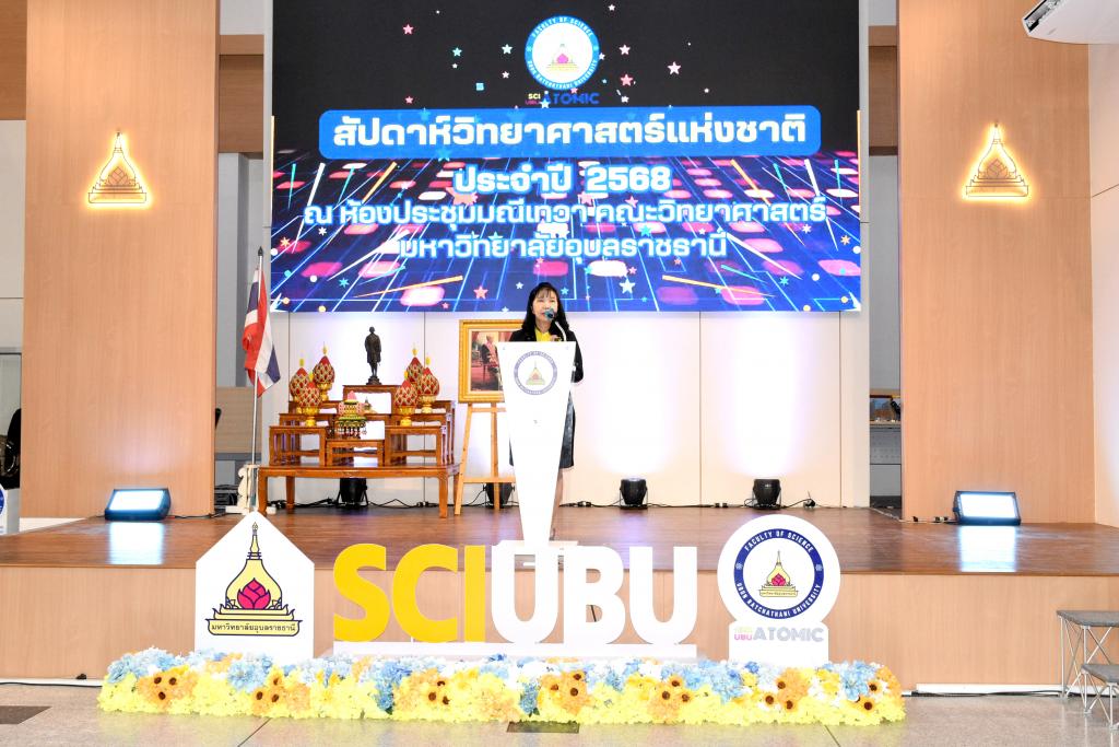 ศาสตราจารย์ ดร.ศิริพร จึงสุทธิวงษ์ คณบดีคณะวิทยาศาสตร์ มหาวิทยาลัยอุบลราชธานี กล่าวว่า คณะวิทยาศาสตร์ ได้กำหนดจัดงานสัปดาห์วิทยาศาสตร์แห่งชาติต่อเนื่องเป็นประจำทุกปีสำหรับในปีนี้ได้เลื่อนการจัดงานและกิจกรรมสัปดาห์วิทยาศาสตร์เป็นวันอังคารที่ 26 สิงหาคม 2568 ที่ผ่านมา ณ คณะวิทยาศาสตร์ มหาวิทยาลัยอุบลราชธานี สืบเนื่องจากเหตุการณ์ความไม่สงบชายแดน ทั้งนี้เพื่อสดุดีเทิดพระเกียรติพระบาทสมเด็จพระจอมเกล้าเจ้าอยู่หัว พระบิดาแห่งวิทยาศาสตร์ไทย ในหลวงรัชกาลที่ 4 ภายในงานกำหนดให้มีการจัดนิทรรศการเทิดพระเกียรติพระบิดาแห่งเทคโนโลยีของไทย ในหลวงรัชกาลที่ 9 รัชกาลที่ 10 และมีการจัดบูธนิทรรศการความรู้ของคณะและภาควิชาต่าง ๆ เพื่อเสริมทักษะ ความรู้ ความเข้าใจ และเพื่อเผยแพร่ประชาสัมพันธ์ผลงานความก้าวหน้าด้านวิทยาศาสตร์ให้เป็นที่ประจักษ์ โดยได้รับความร่วมมือจากภาคีเครือข่ายโรงเรียนในเขตพื้นที่จังหวัดอุบลราชธานีและจังหวัดใกล้เคียงนำนักเรียนเข้าร่วมกิจกรรมจำนวนมาก พร้อมทั้งเข้าร่วมการประกวดโครงงานวิทยาศาสตร์ การแข่งขันทักษะ การตอบปัญหา และการแข่งขันกระบวนการแก้ปัญหาทางวิทยาศาสตร์ เป็นต้น