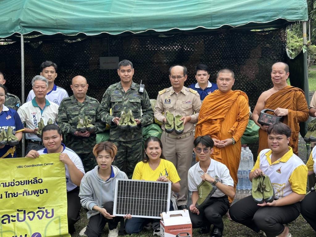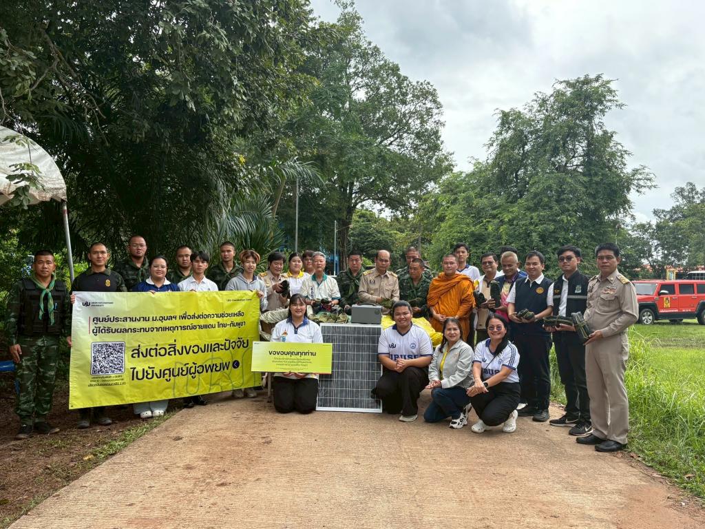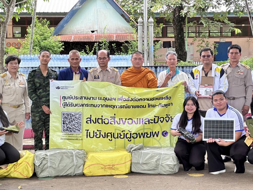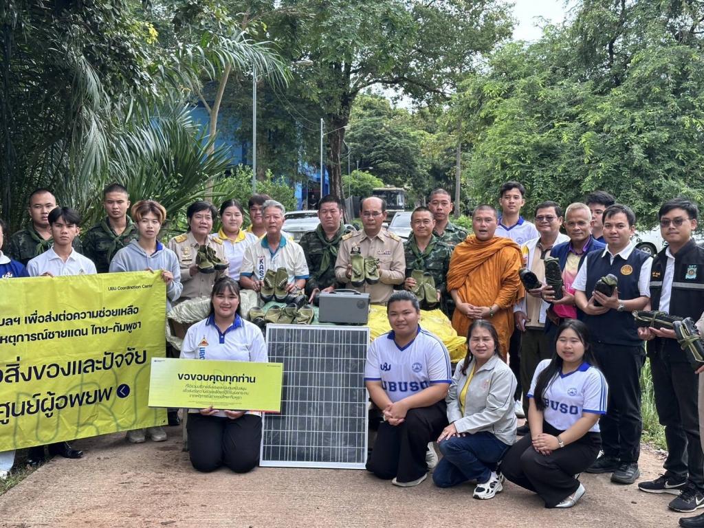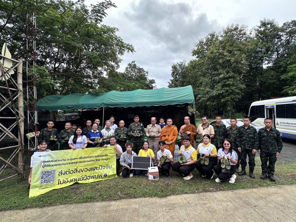 ศูนย์ประสานงาน ม.อุบลฯ เพื่อส่งต่อความช่วยเหลือผู้ได้รับผลกระทบจากเหตุการณ์ชายแดนไทย-กัมพูชา (UBU Coordination Center : UBU COC) โดย ผู้ช่วยศาสตราจารย์ ดร.ปรีชา บุญจูง รองอธิการบดีฝ่ายพัฒนานักศึกษาและศิษย์เก่าสัมพันธ์ ประธานศูนย์ฯ พร้อมด้วย ดร.นรินทร บุญพราหมณ์ คณบดีคณะเกษตรศาสตร์ บุคลากร และ นักศึกษาจิตอาสา ลงพื้นที่อำเภอน้ำยืน จังหวัดอุบลราชธานี เพื่อส่งต่อความช่วยเหลือแก่กำลังพลทหารที่ปฏิบัติหน้าที่ดูแลความสงบเรียบร้อยบริเวณชายแดนไทย–กัมพูชา โดยมี นายภพ ภูสมปอง รองผู้ว่าราชการจังหวัดอุบลราชธานี รักษาราชการแทนผู้ว่าราชการจังหวัดอุบลราชธานี ร่วมส่งมอบในครั้งนี้ด้วย เมื่อวันที่ 30 สิงหาคม 2568ที่ผ่านมา