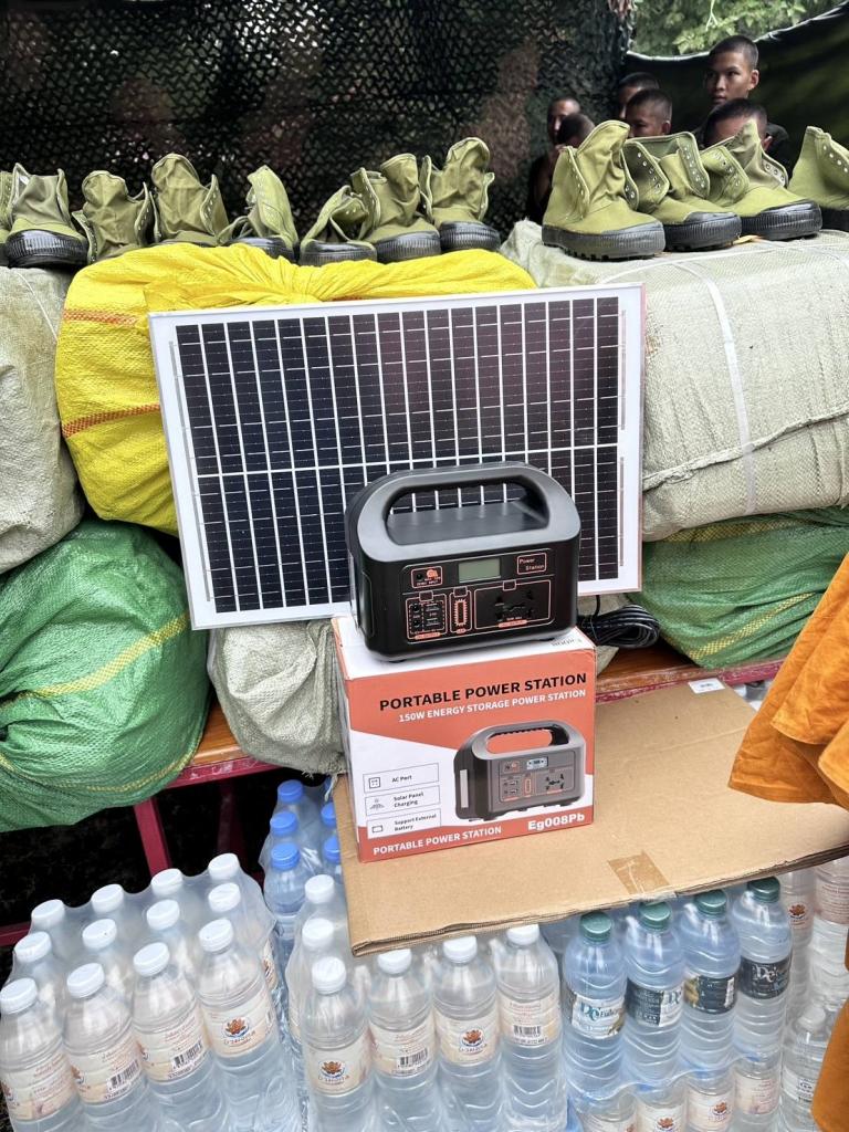 ในส่วนของสิ่งของบริจาคช่วยเหลือกำลังพลครั้งนี้ ประกอบด้วย สิ่งของอุปโภคบริโภค และของใช้ที่จำเป็น อาทิ น้ำดื่ม 500 แพ็ค ชุด Power box แบตเตอรี่พร้อมอินเวอร์เตอร์ จำนวน 5 ชุด รองเท้าเดินป่า เครื่องดื่มกาแฟ เป็นต้น เพื่อเป็นขวัญและกำลังใจในการปฏิบัติภารกิจดูแลพื้นที่ชายแดน