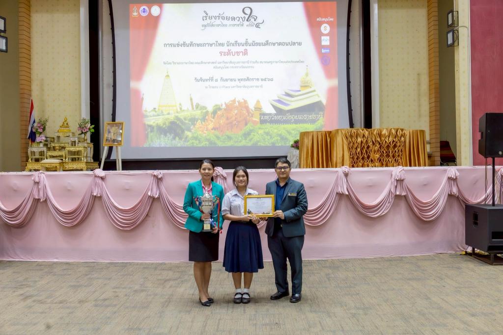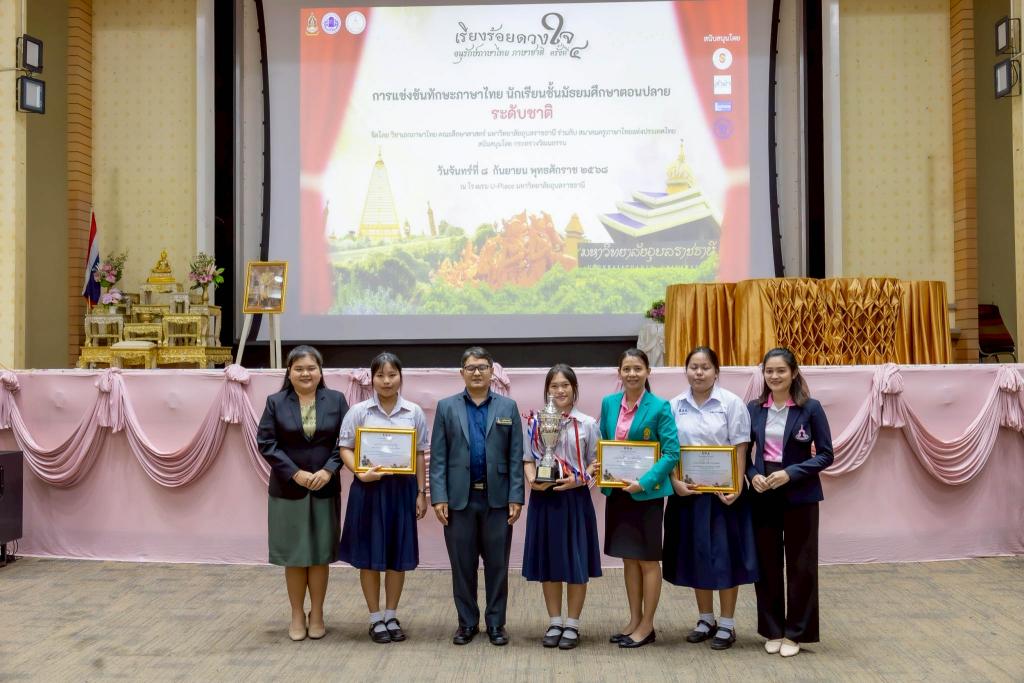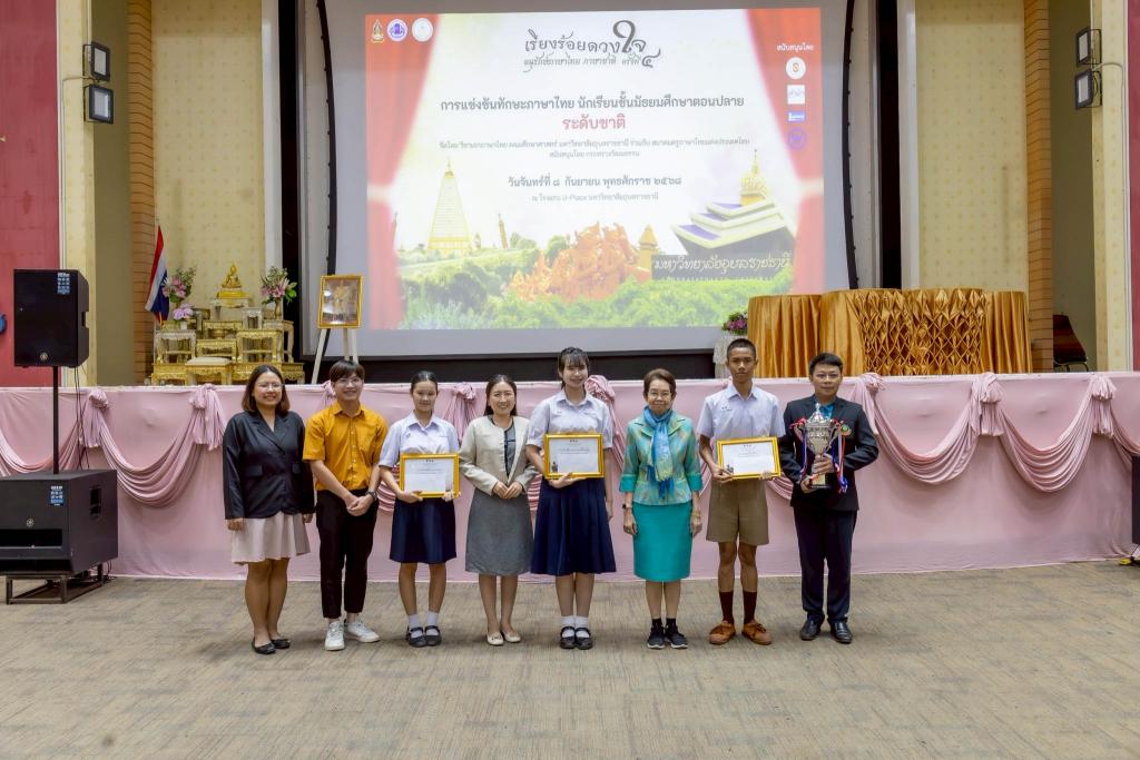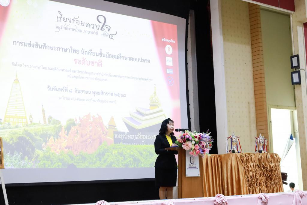 มหาวิทยาลัยอุบลราชธานี โดย คณะศึกษาศาสตร์ วิชาเอกภาษาไทย ร่วมกับ สมาคมครูภาษาไทยแห่งประเทศไทย จัดการแข่งขันทักษะภาษาไทย ระดับมัธยมศึกษาตอนปลาย ระดับชาติ ภายใต้ชื่องาน “เรียงร้อยดวงใจ อนุรักษ์ภาษาไทย ภาษาชาติ ครั้งที่ 4” โดยมี รองศาสตราจารย์ ดร.ชุตินันท์ ประสิทธิ์ภูริปรีชา อธิการบดี เป็นประธาน และ ผู้ช่วยศาสตราจารย์ณัชวินนท์ แสงศรีจันทร์ รองคณบดีฝ่ายวิชาการ คณะศึกษาศาสตร์ กล่าวรายงาน จัดให้มีกิจกรรมการแข่งขันประกอบด้วย การประกวดกล่าวสุนทรพจน์, การเขียนคำตามคำบอก, การอ่านฉันท์, และการแต่งคำประพันธ์ โดยมีนักเรียนระดับมัธยมศึกษาตอนปลายจาก 28 จังหวัดทั่วประเทศ รวม 130 สถาบันเข้าร่วมการแข่งขันเข้าร่วมกิจกรรม นอกจากนี้ยังได้รับเกียรติจาก ศาสตราจารย์กิตติคุณ ดร.กาญจนา นาคสกุล (ราชบัณฑิต) นายกสมาคมครูภาษาไทยแห่งประเทศไทย ให้เกียรติปาฐกถาพิเศษในหัวข้อ “ภาษาไทยสำคัญต่อความเป็นชาติไทย”ณ โรงแรมยูเพลส มหาวิทยาลัยอุบลราชธานี เมื่อวันที่ 8 กันยายน 2568 ที่ผ่านมา
