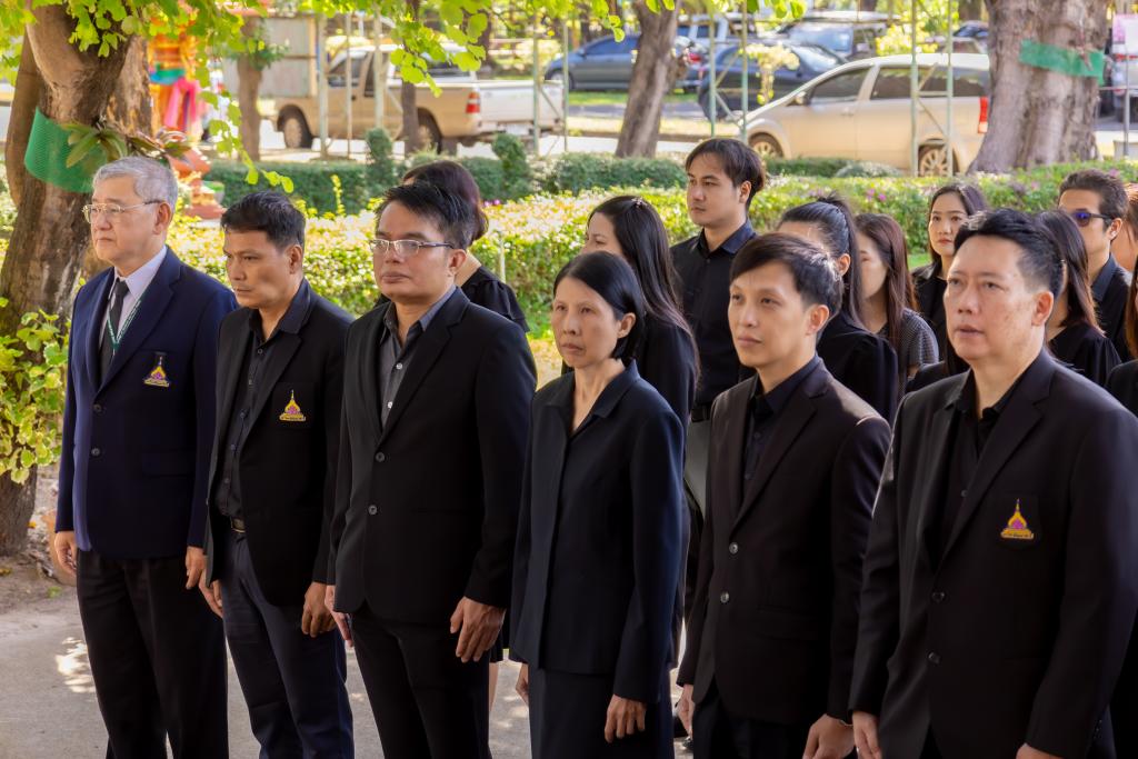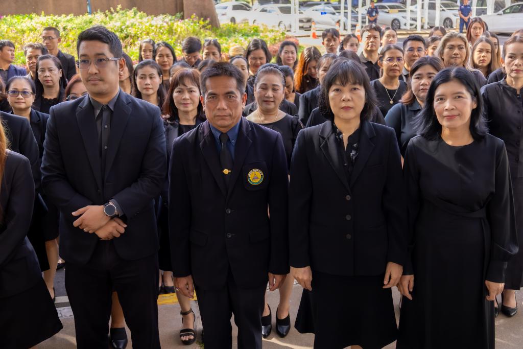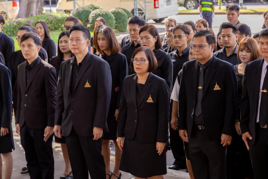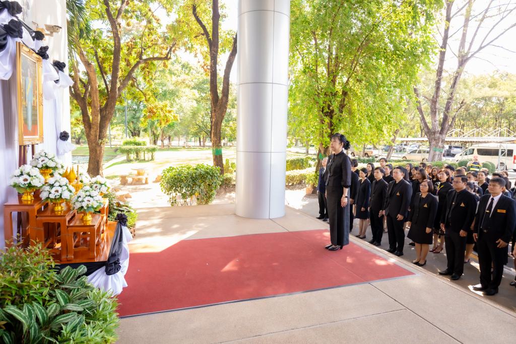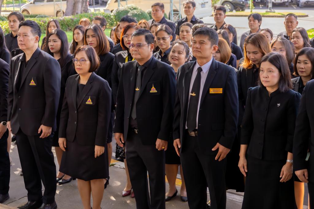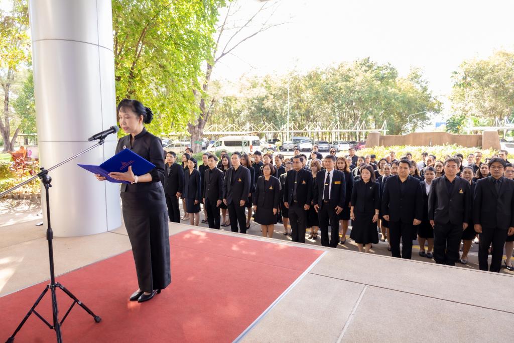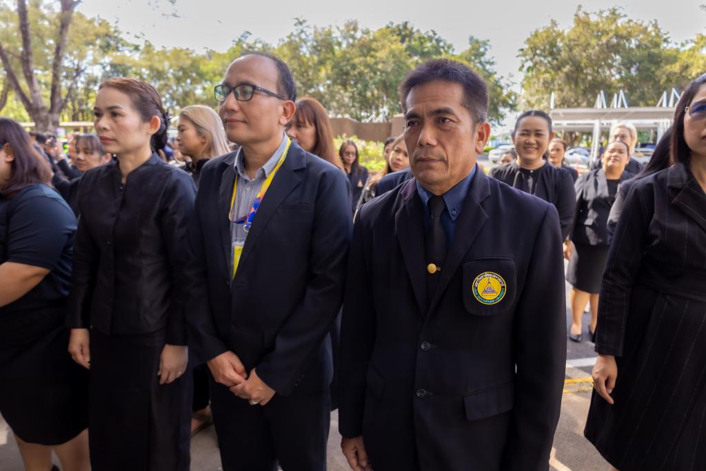 รองศาสตราจารย์ ดร.ชุตินันท์ ประสิทธิภูริปรีชา อธิการบดี กล่าวถวายความอาลัย น้อมรำลึกถึงพระมหากรุณาธิคุณ ของ สมเด็จพระนางเจ้าสิริกิติ์ พระบรมราชินีนาถ พระบรมราชชนนีพันปีหลวง ที่พระองค์ทรงปฏิบัติพระราชกรณียกิจนานัปการเพื่อประโยชน์สุขของประชาชนและความเจริญมั่นคงของประเทศชาติ พระองค์ท่านเป็นดั่งแม่แห่งแผ่นดิน ผู้ทรงเปี่ยมด้วยพระเมตตาและพระปรีชาสามารถ ทรงอุทิศพระวรกาย พระสติปัญญา และพระราชหฤทัยในการบำเพ็ญพระราชกรณียกิจนานัปการ เคียงคู่พระบาทสมเด็จพระบรมชนกาธิเบศร มหาภูมิพลอดุลยเดชมหาราช บรมนาถบพิตร เพื่อธำรงไว้ซึ่งความผาสุกและความมั่นคงแห่งชาติไทย