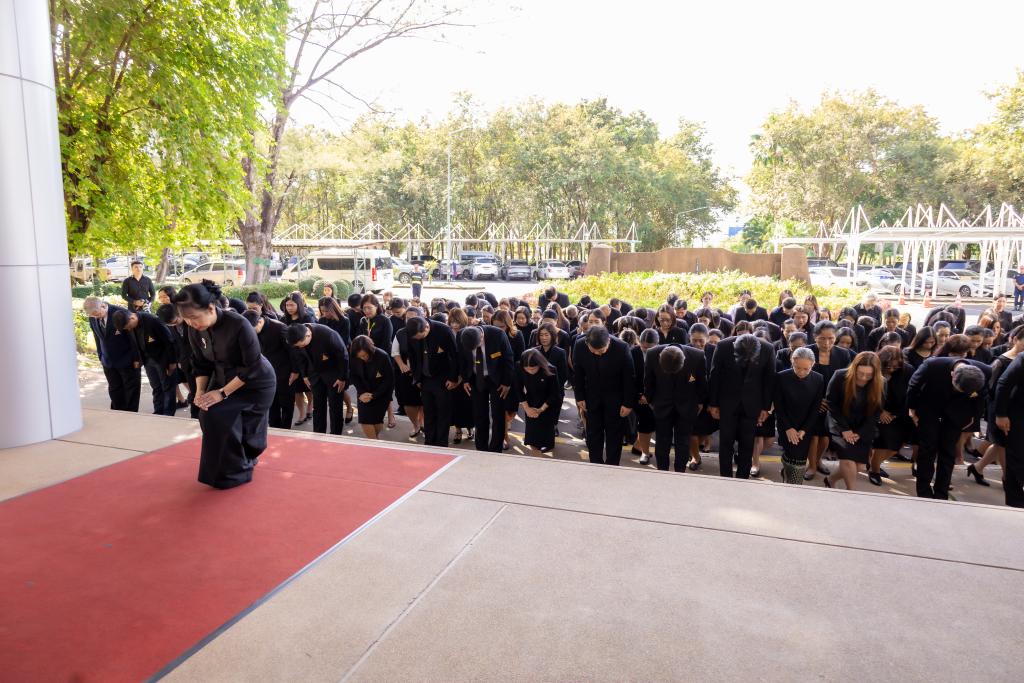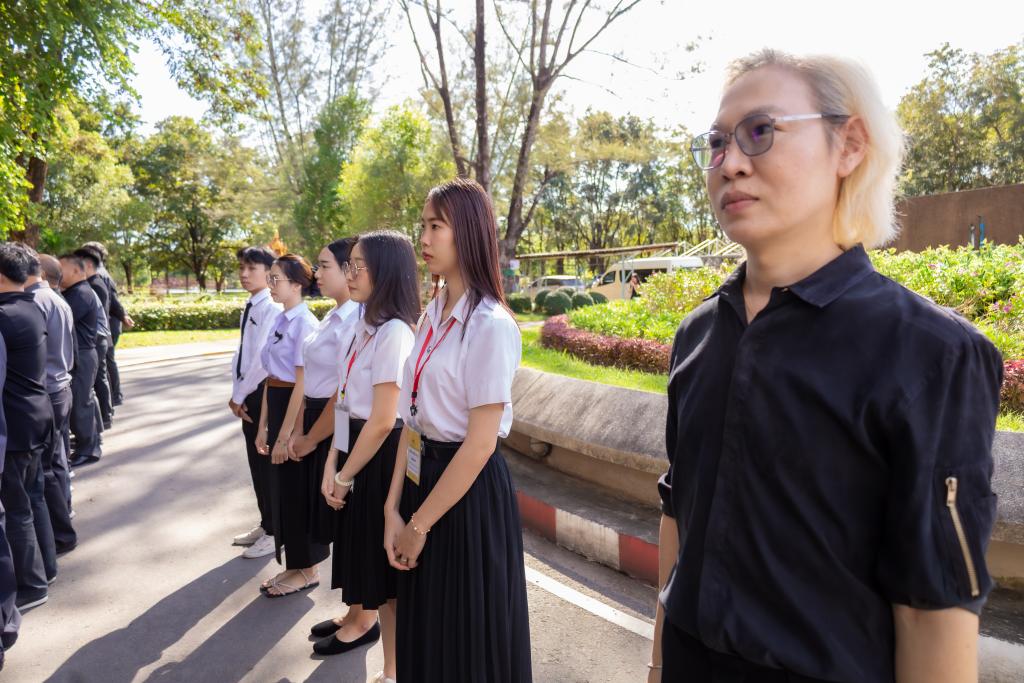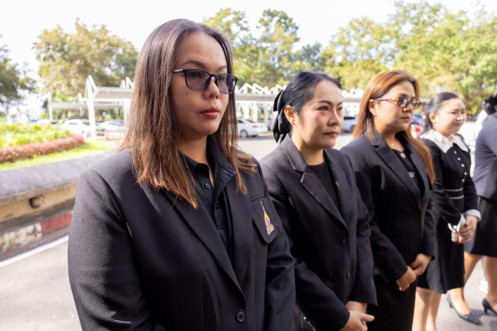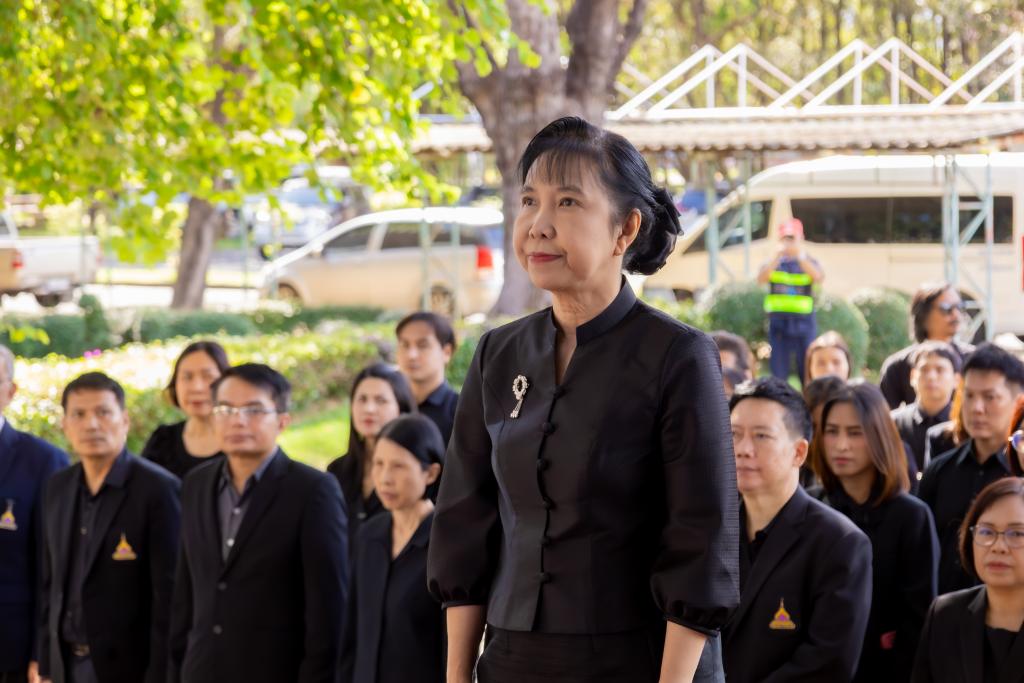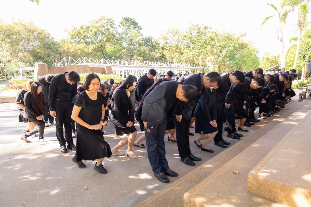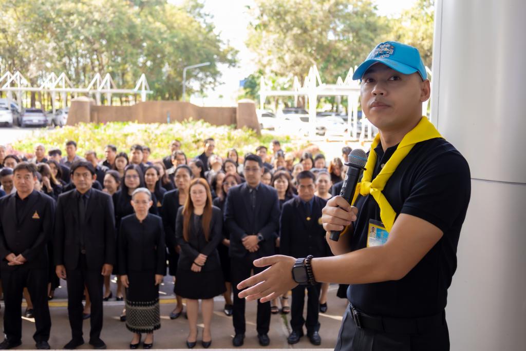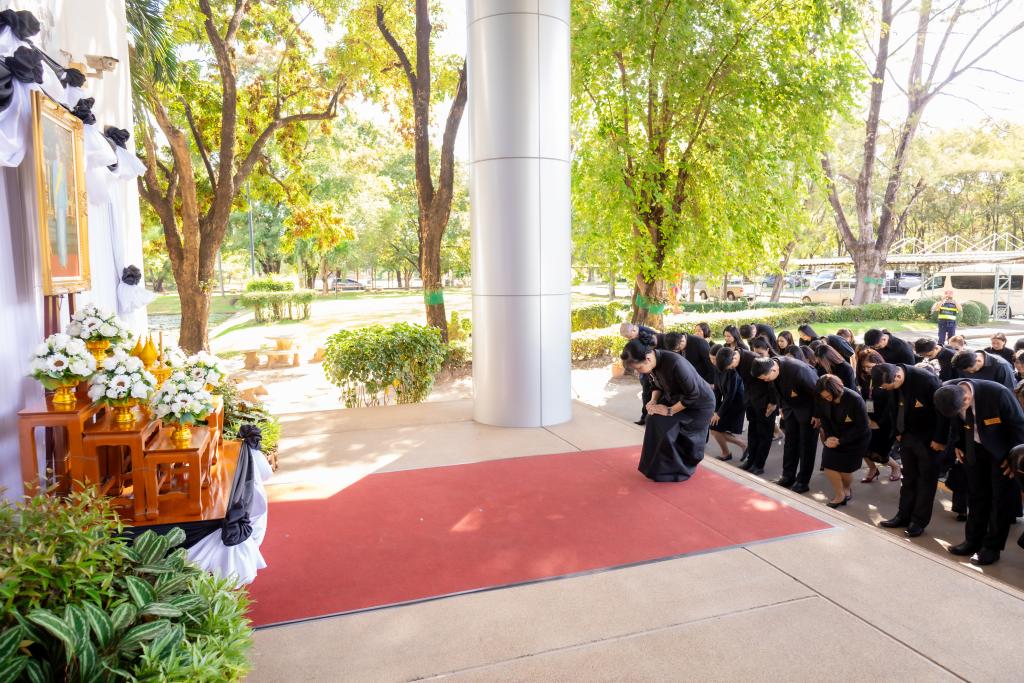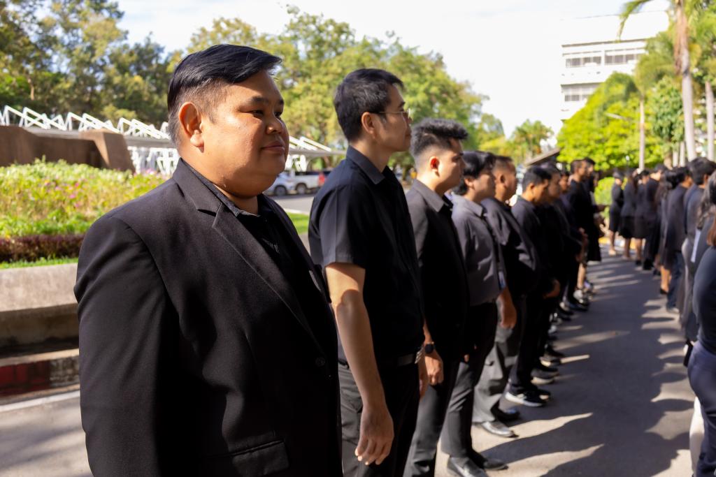 รองศาสตราจารย์ ดร.ชุตินันท์ ประสิทธิภูริปรีชา อธิการบดี กล่าวถวายความอาลัย น้อมรำลึกถึงพระมหากรุณาธิคุณ ของ สมเด็จพระนางเจ้าสิริกิติ์ พระบรมราชินีนาถ พระบรมราชชนนีพันปีหลวง ที่พระองค์ทรงปฏิบัติพระราชกรณียกิจนานัปการเพื่อประโยชน์สุขของประชาชนและความเจริญมั่นคงของประเทศชาติ พระองค์ท่านเป็นดั่งแม่แห่งแผ่นดิน ผู้ทรงเปี่ยมด้วยพระเมตตาและพระปรีชาสามารถ ทรงอุทิศพระวรกาย พระสติปัญญา และพระราชหฤทัยในการบำเพ็ญพระราชกรณียกิจนานัปการ เคียงคู่พระบาทสมเด็จพระบรมชนกาธิเบศร มหาภูมิพลอดุลยเดชมหาราช บรมนาถบพิตร เพื่อธำรงไว้ซึ่งความผาสุกและความมั่นคงแห่งชาติไทย