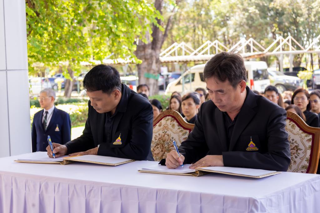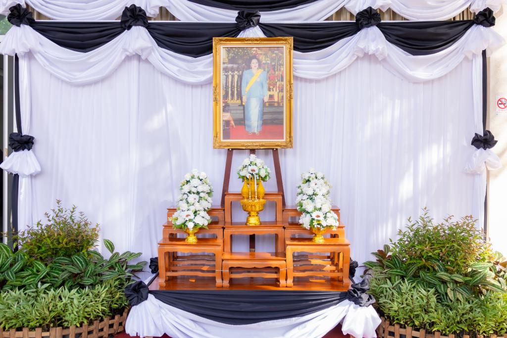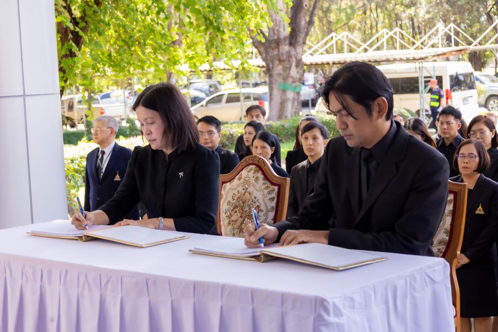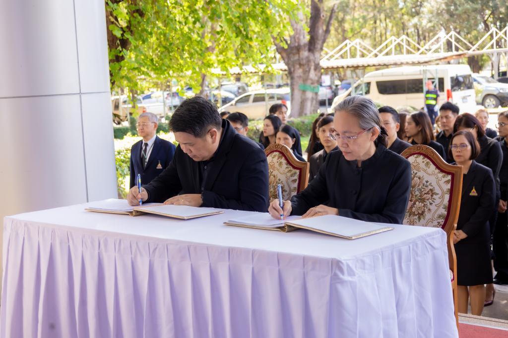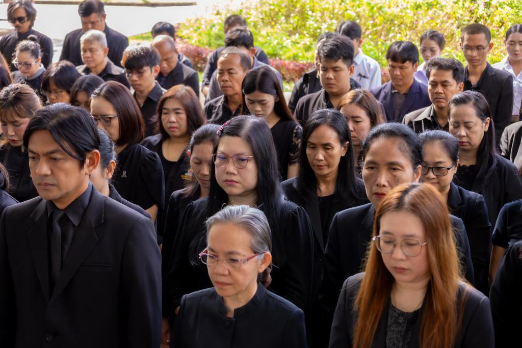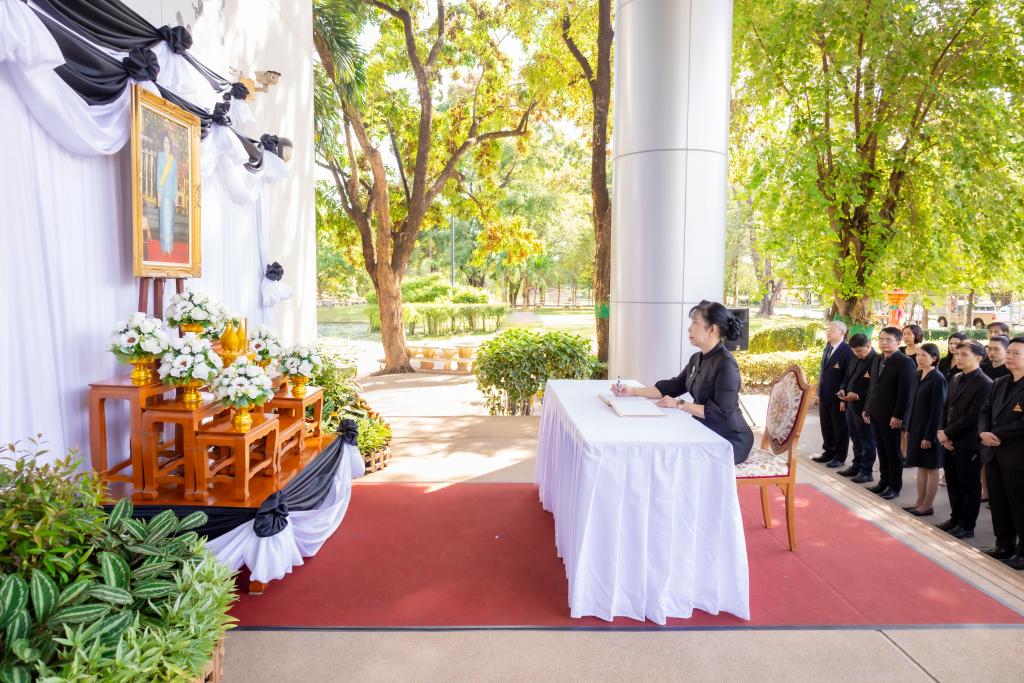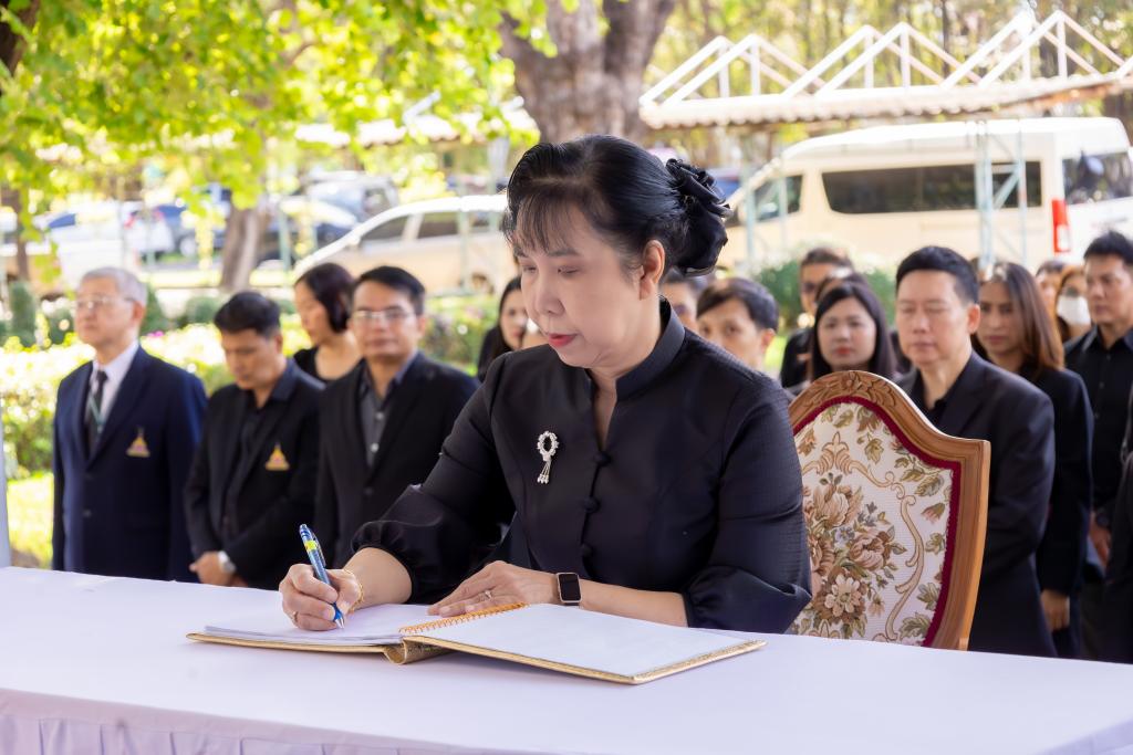 รองศาสตราจารย์ ดร.ชุตินันท์ ประสิทธิภูริปรีชา อธิการบดี กล่าวถวายความอาลัย น้อมรำลึกถึงพระมหากรุณาธิคุณ ของ สมเด็จพระนางเจ้าสิริกิติ์ พระบรมราชินีนาถ พระบรมราชชนนีพันปีหลวง ที่พระองค์ทรงปฏิบัติพระราชกรณียกิจนานัปการเพื่อประโยชน์สุขของประชาชนและความเจริญมั่นคงของประเทศชาติ พระองค์ท่านเป็นดั่งแม่แห่งแผ่นดิน ผู้ทรงเปี่ยมด้วยพระเมตตาและพระปรีชาสามารถ ทรงอุทิศพระวรกาย พระสติปัญญา และพระราชหฤทัยในการบำเพ็ญพระราชกรณียกิจนานัปการ เคียงคู่พระบาทสมเด็จพระบรมชนกาธิเบศร มหาภูมิพลอดุลยเดชมหาราช บรมนาถบพิตร เพื่อธำรงไว้ซึ่งความผาสุกและความมั่นคงแห่งชาติไทย