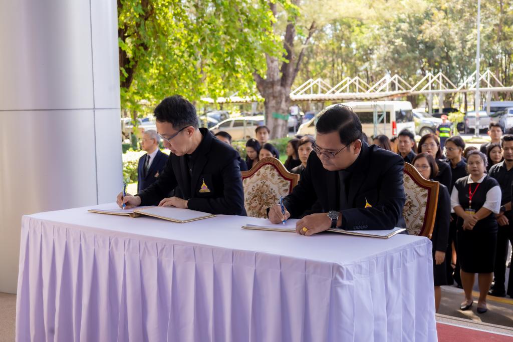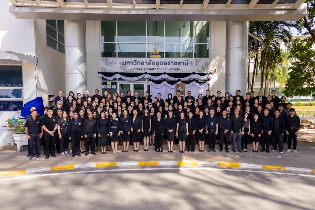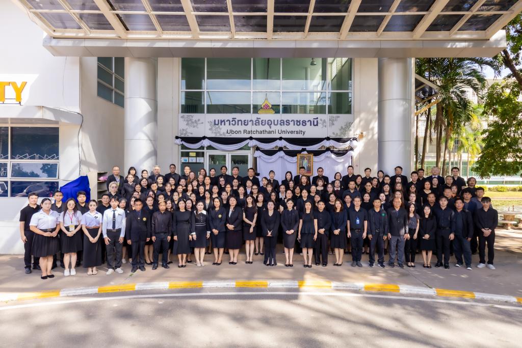 มหาวิทยาลัยอุบลราชธานี โดย รองศาสตราจารย์ ดร.ชุตินันท์ ประสิทธิภูริปรีชา อธิการบดี เป็นประธาน ประกอบพิธีถวายความอาลัย น้อมรำลึกถึงพระมหากรุณาธิคุณ สมเด็จพระนางเจ้าสิริกิติ์ พระบรมราชินีนาถ พระบรมราชชนนีพันปีหลวง พร้อมกล่าวคำถวายความอาลัย และลงนามถวายความอาลัย ณ เบื้องหน้าพระฉายาลักษณ์ สมเด็จพระนางเจ้าสิริกิติ์ พระบรมราชินีนาถ พระบรมราชชนนีพันปีหลวง ซึ่งมีคณะผู้บริหาร คณาจารย์ บุคลากร และนักศึกษา จำนวน 93 คน เข้าร่วม ณ อาคารสำนักงานอธิการบดี 2 มหาวิทยาลัยอุบลราชธานี วันพุธที่ 5 พฤศจิกายน 2568