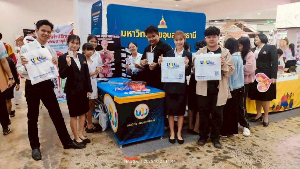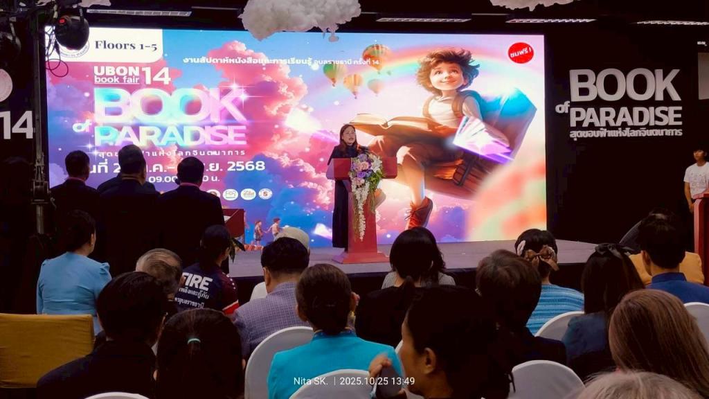 มหาวิทยาลัยอุบลราชธานี โดย ศูนย์นวัตกรรมบริการวิชาการ สื่อสารการตลาด ร่วมกับ กองบริการการศึกษา และ คณะศึกษาศาสตร์ นำผลงานและร่วมจัดกิจกรรมใน งานสัปดาห์หนังสือและการเรียนรู้อุบลราชธานี ครั้งที่ 14ภายใต้แนวคิด “Book of Paradise: สุดขอบฟ้าแห่งโลกจินตนาการ”จัดขึ้นเพื่อส่งเสริมให้เด็ก เยาวชน และประชาชนชาวอุบลราชธานีมีนิสัยรักการอ่านและการเรียนรู้ อันจะนำไปสู่การสร้าง “สังคมแห่งการเรียนรู้อย่างยั่งยืน” รับเกียรติจาก ร้อยตรีสรมงคล มงคละสิริ รองผู้ว่าราชการจังหวัดอุบลราชธานี เป็นประธาน โอกาสนี้ ผู้ช่วยศาสตราจารย์ ดร.ปิยณัฐ สร้อยคำ ผู้ช่วยอธิการบดีฝ่ายการตลาด มหาวิทยาลัยอุบลราชธานี เข้าร่วมเป็นเกียรติในพิธีเปิดงานครั้งนี้ด้วย ณ ห้างสุนีย์ทาวเวอร์ จังหวัดอุบลราชธานี ระหว่างวันที่ 25 ตุลาคม – 2 พฤศจิกายน 2568 ที่ผ่านมา