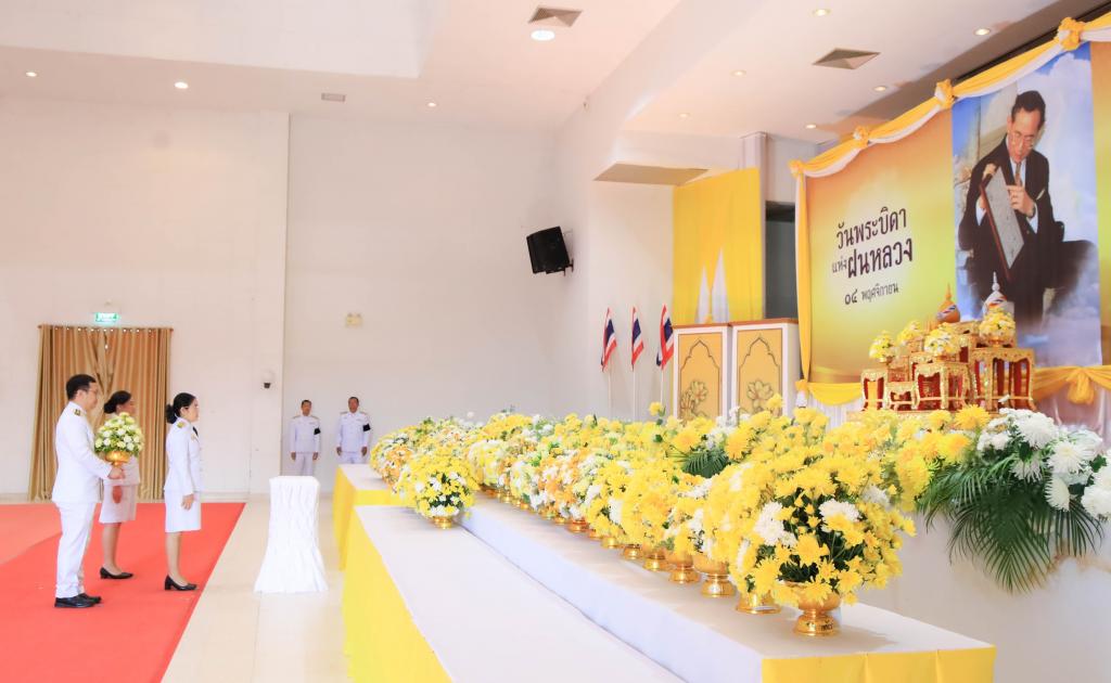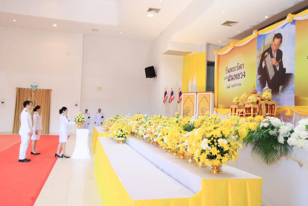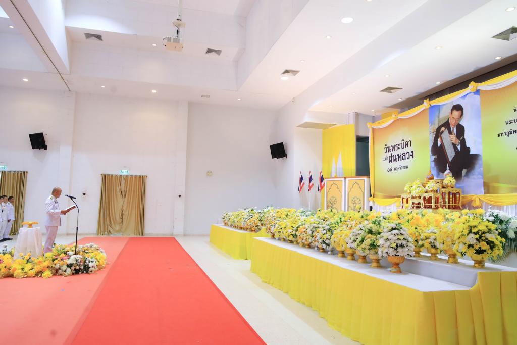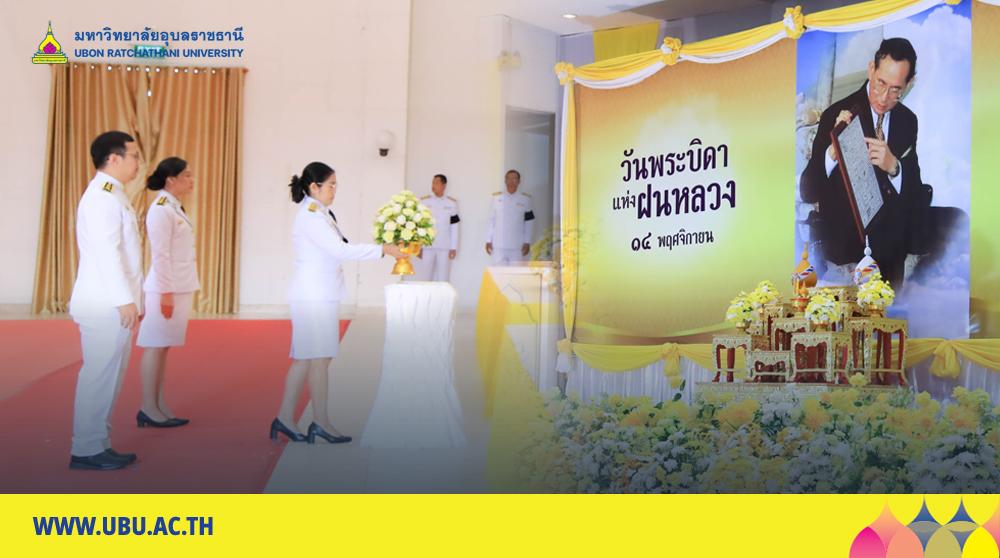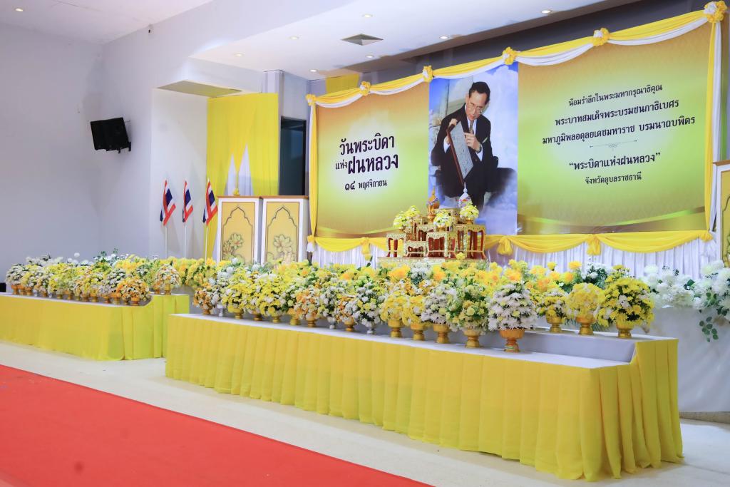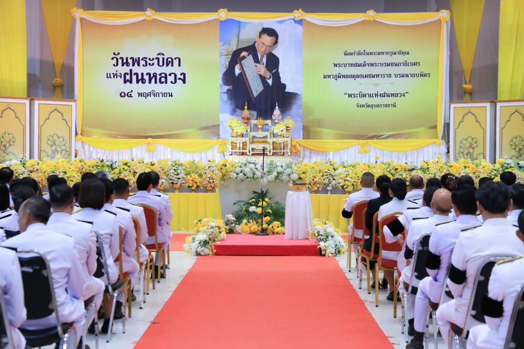 มหาวิทยาลัยอุบลราชธานี โดย นางสาวมัณฑนา เจือบุญ ผู้อำนวยการกองกลาง สำนักงานอธิการบดี นำบุคลากรร่วม พิธีถวายราชสักการะวางพานพุ่มดอกไม้สด เนื่องในวันพระบิดาแห่งฝนหลวง ประจำปี 2568เพื่อรำลึกในพระมหากรุณาธิคุณอันยิ่งใหญ่ของ พระบาทสมเด็จพระบรมชนกาธิเบศร มหาภูมิพลอดุลยเดชมหาราช บรมนาถบพิตร โดยมี ว่าที่ร้อยตรีกรกฎ ประเสริฐวงษ์ รองผู้ว่าราชการจังหวัดอุบลราชธานี เป็นประธานนำหัวหน้าส่วนราชการ หน่วยงานภาครัฐ รัฐวิสาหกิจ และองค์กรต่าง ๆ ร่วมประกอบพิธีด้วยความสำนึกในพระมหากรุณาธิคุณ ณ หอประชุมจังหวัดอุบลราชธานี ศาลากลางจังหวัดอุบลราชธานี วันที่ 14 พฤศจิกายน 2568