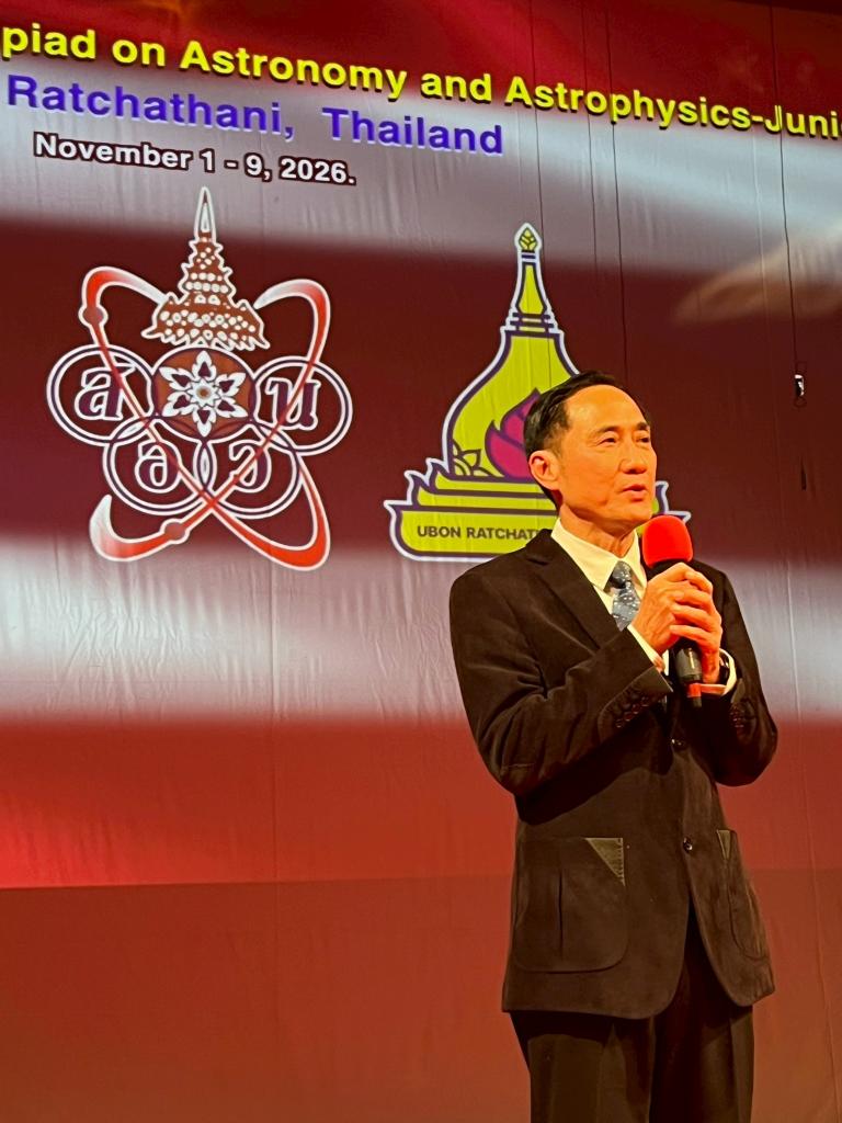 รองศาสตราจารย์ ดร.พินิติ รตะนานุกูล เลขาธิการมูลนิธิ สอวน. และรองศาสตราจารย์บุญรักษา สุนทรธรรม ประธานสาขาดาราศาสตร์ ได้กล่าวถึงจัดการแข่งขันดาราศาสตร์และฟิสิกส์ดาราศาสตร์โอลิมปิกระหว่างประเทศ ระดับมัธยมศึกษาตอนต้น ครั้งที่ 5เพื่อเฉลิมพระเกียรติ สมเด็จพระกนิษฐาธิราชเจ้า กรมสมเด็จพระเทพรัตนราชสุดาฯ สยามบรมราชกุมารี องค์ประธานมูลนิธิ สอวน. เนื่องในวโรกาสที่จะทรงเจริญพระชนมายุครบ 72 พรรษา ทั้งนี้ คณะกรรมการมูลนิธิ สอวน. ได้เดินทางไปรับมอบธงเจ้าภาพจัดการแข่งขัน IOAA-jr2026 ต่อจากประเทศโรมาเนีย เมื่อวันที่ 24 ตุลาคม 2568 พร้อมด้วยคณะดำเนินงานจากคณะวิทยาศาตร์ มหาวิทยาลัยอุบลราชธานี ได้เข้าร่วมเป็นรองหัวหน้าทีมและผู้สังเกตการณ์ ในการจัดการแข่งขันฯ ครั้งที่ 4ณ เมืองเปียตราเนียมต์ ประเทศโรมาเนีย โดยนักเรียนผู้แทนประเทศไทย ได้รับเหรียญรางวัลจากการแข่งขันทุกคน รางวัลเหรียญทอง 2 เหรียญ รางวัลเหรียญเงิน3 เหรียญถือเป็นความสำเร็จของประเทศไทยในวงการโอลิมปิกวิชาการนานาชาติ อีกด้วย
