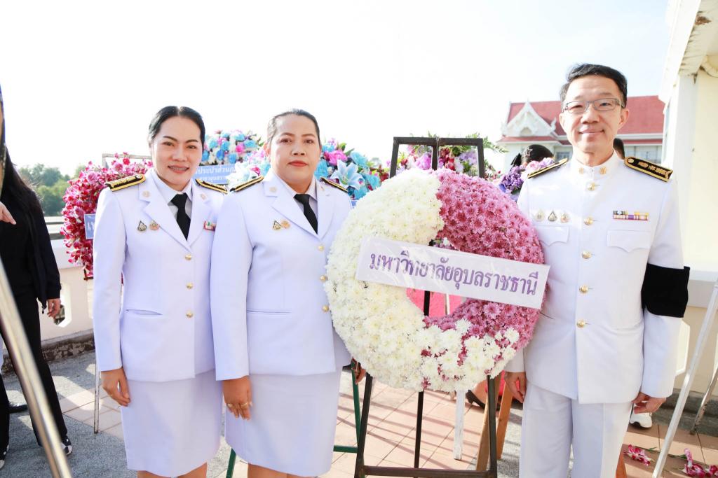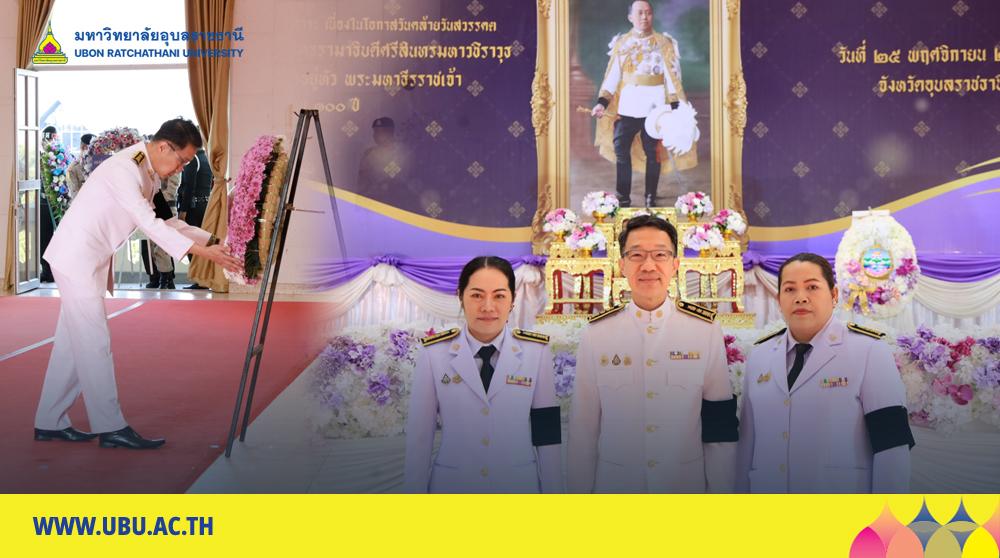 มหาวิทยาลัยอุบลราชธานี โดย นายนภดล พัฒนะศิษอุบล ผู้ช่วยอธิการบดีฝ่ายคลังและทรัพย์สิน นำบุคลากรเข้าร่วมพิธีวางพวงมาลาถวายราชสักการะ แด่พระบาทสมเด็จพระมงกุฎเกล้าเจ้าอยู่หัว เนื่องในวันคล้ายวันสวรรคตครบ 100 ปี เพื่อน้อมรำลึกถึงพระมหากรุณาธิคุณอันยิ่งใหญ่ โดยมี ว่าที่ร้อยตรีกรกฎ ประเสริฐวงษ์ รองผู้ว่าราชการจังหวัดอุบลราชธานี เป็นประธานนำประกอบพิธี ซึ่งมีหัวหน้าส่วนราชการ ข้าราชการ ทหาร ตำรวจ และประชาชนทุกหมู่เหล่าร่วมกันถวายราชสักการะด้วยความสำนึกในพระมหากรุณาธิคุณ ณ หอประชุม ศาลากลางจังหวัดอุบลราชธานี วันที่ 25 พฤศจิกายน 2568