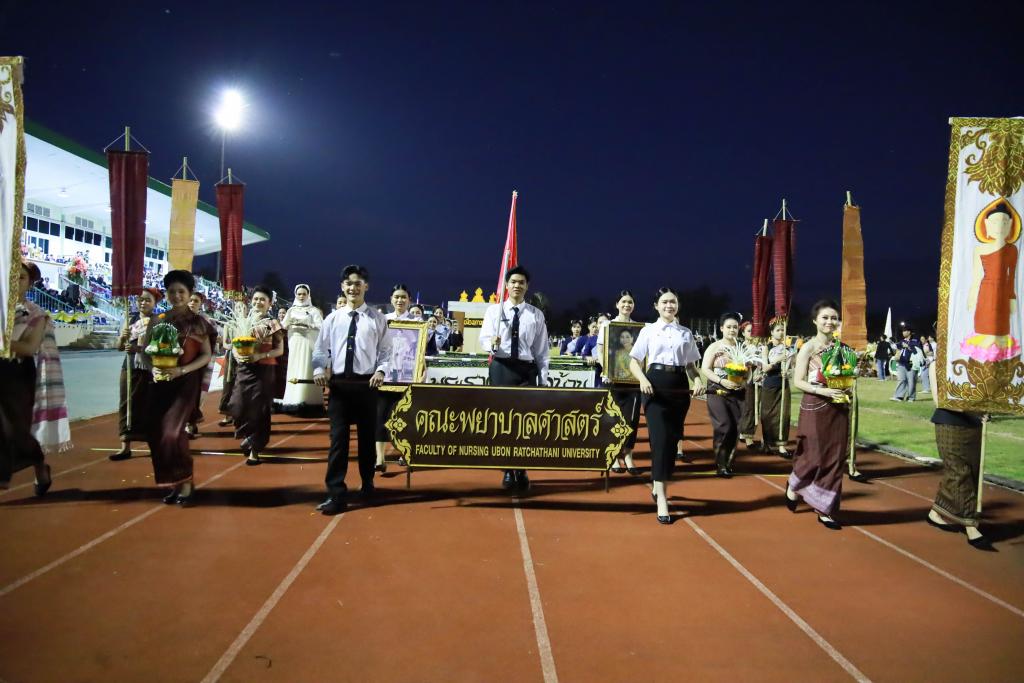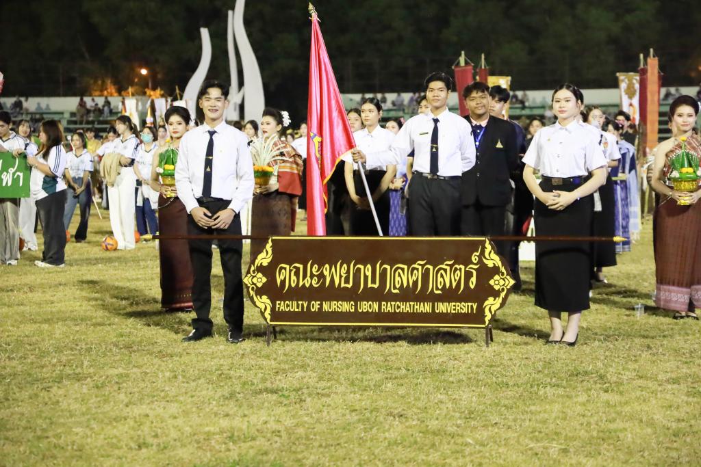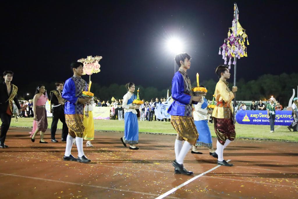 กิจกรรมในพิธีเปิดการแข่งขันประกอบด้วย ความงดงามของขบวนพาเหรดจากองค์การนักศึกษา สโมสรนักศึกษาทั้ง 11 คณะ และ 1 วิทยาลัย ถ่ายทอดอัตลักษณ์และวัฒนธรรมจากทุกภูมิภาค ภายใต้ธีม Amazing Thailand สร้างสีสันและความประทับใจผู้เข้าร่วมงาน การแสดงบทเพลงมาร์ชมหาวิทยาลัยอุบลราชธานี และบทเพลง “หัวใจเดียวกัน” จากชมรม Cheer Leader และเชียร์ลีดเดอร์ทุกคณะ ร่วมสร้างบรรยากาศที่อบอุ่นและสามัคคี ซึ่งมีนักกีฬาและนักศึกษาเข้าร่วมกิจกรรมมากกว่า 4,000 คน
